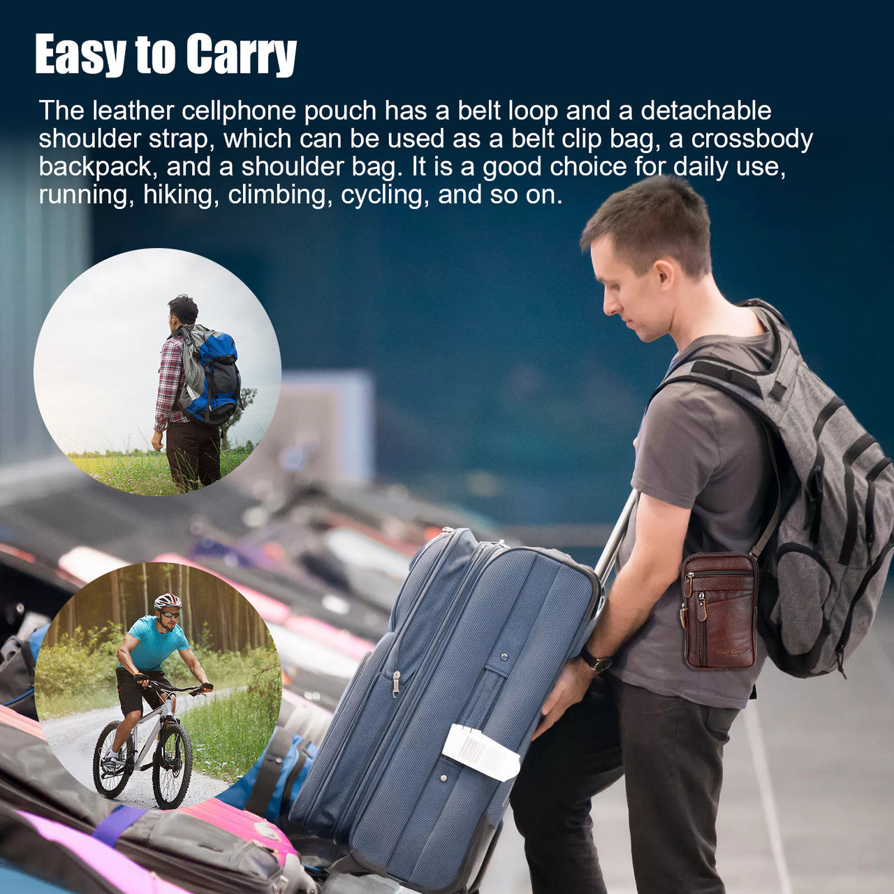 Men Leather Fashion Crossbody Pouch Belt Bag for Travel and Everyday Life