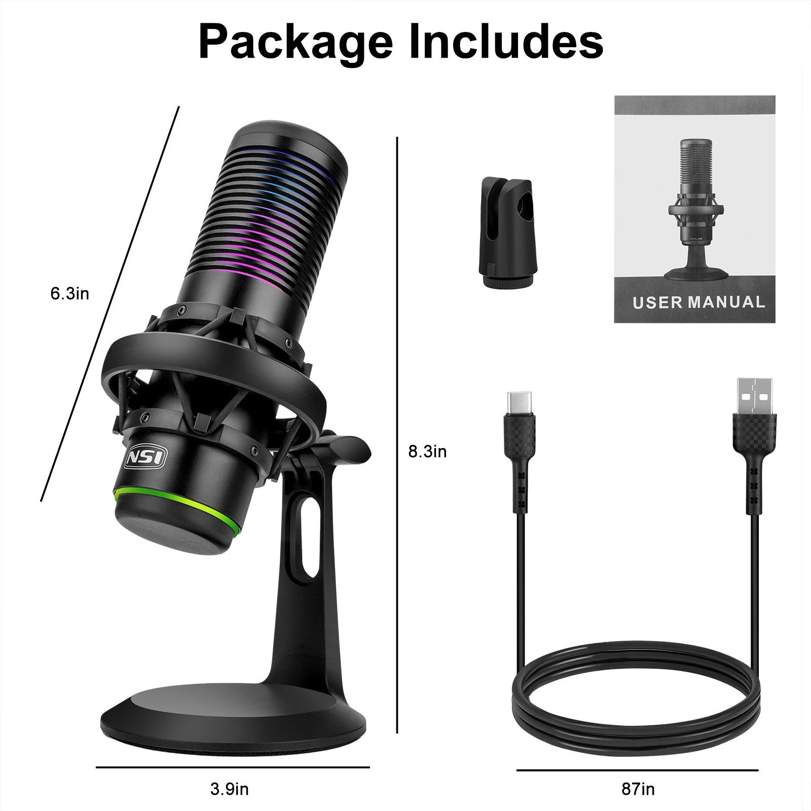 Professional RGB USB Condenser Gaming Microphone - High-quality condenser microphone W/Touch-sensitive light switch with various lighting modes