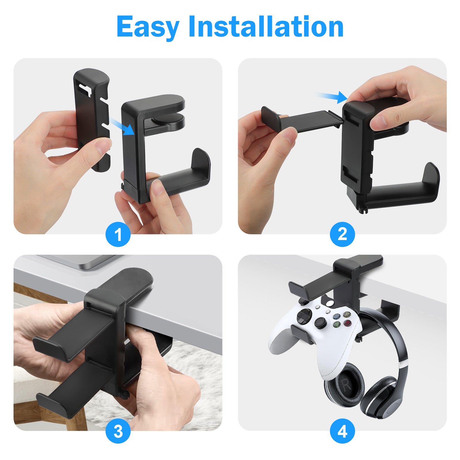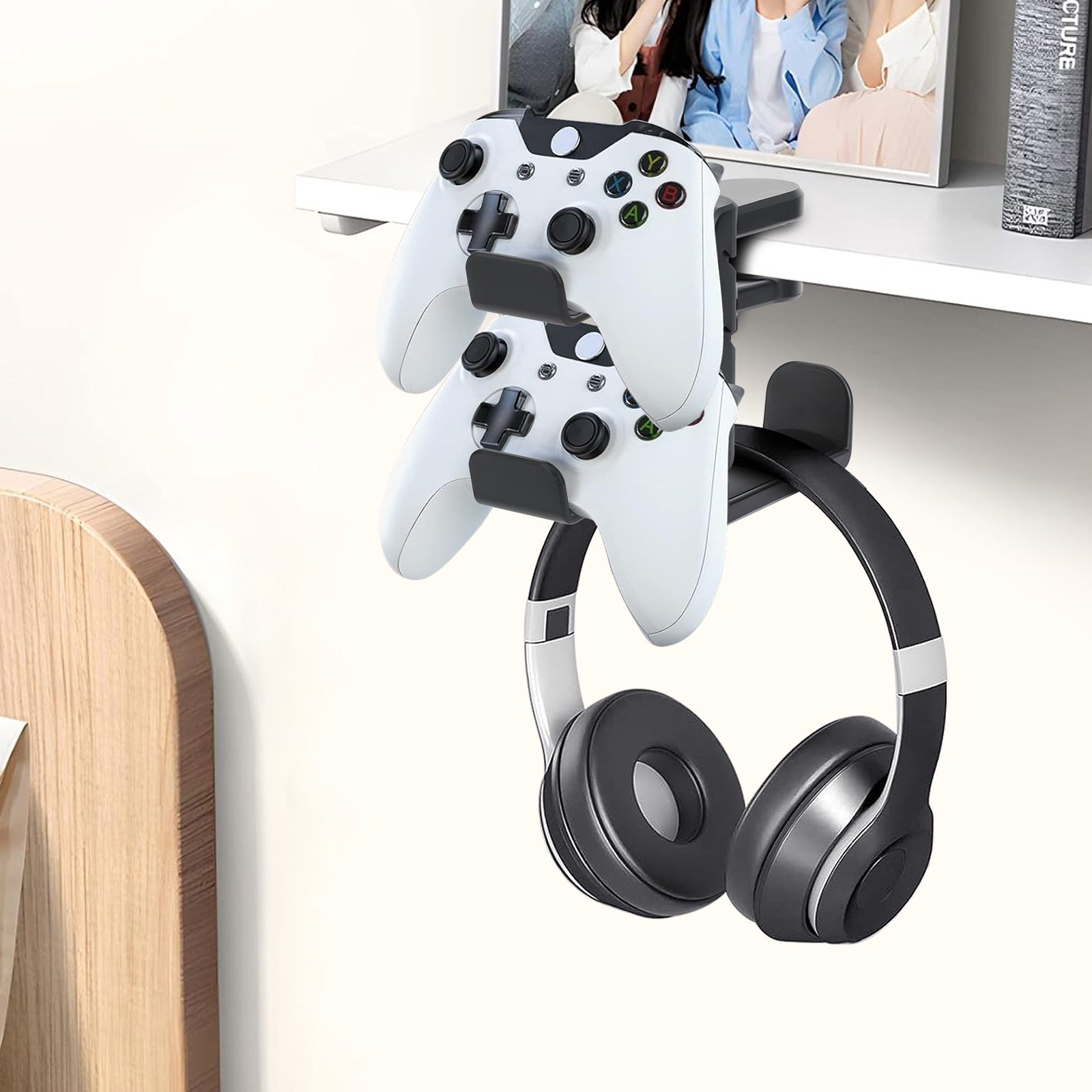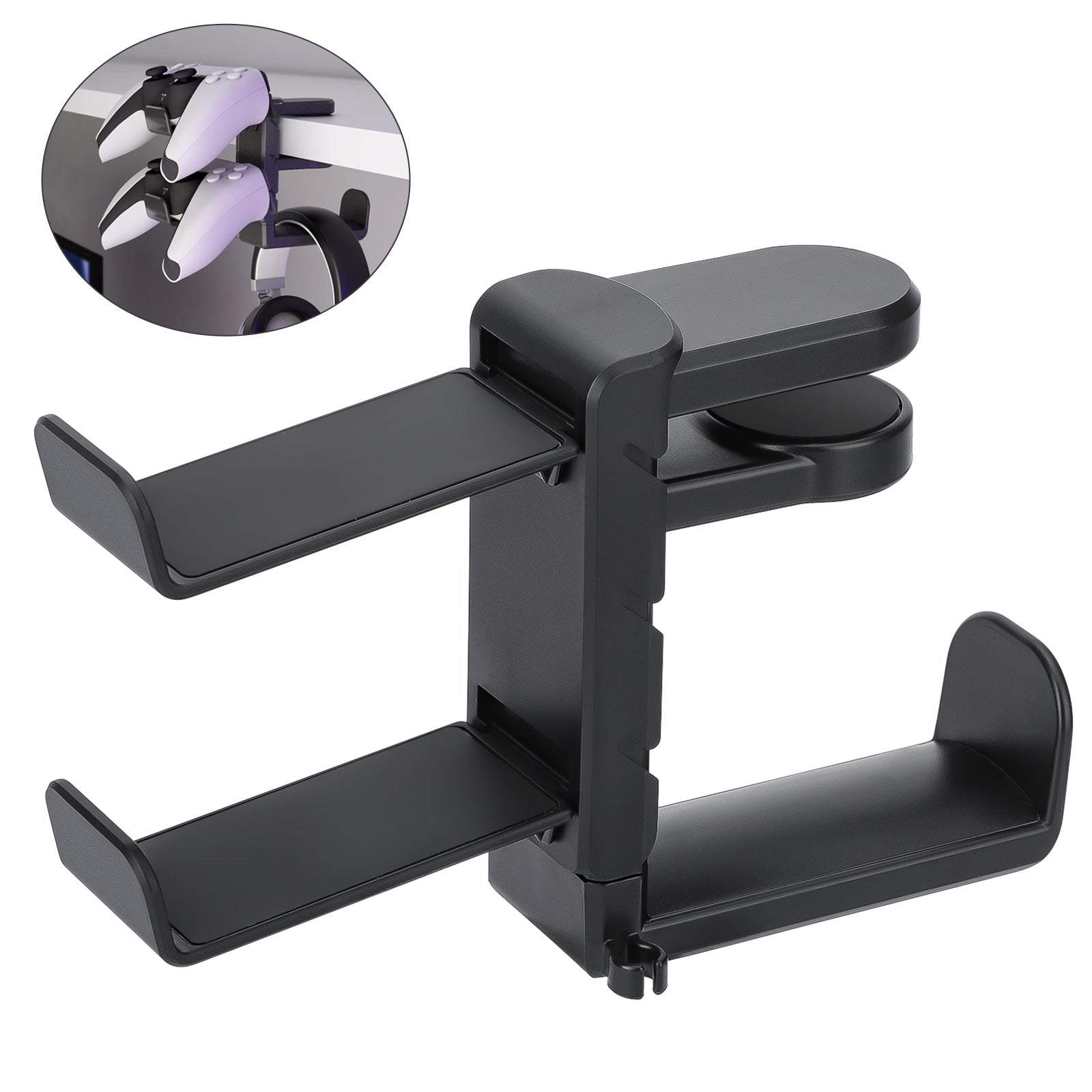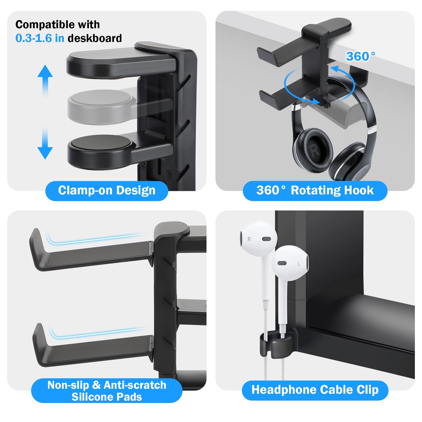 3-In-1 360° Rotating Headphone & Controller Stand Holder - Headphones Hanger Adjustable & Rotating Arm Clamp,Headphone Stand Under Desk, Universal Headset Controllers Hook With Cable Organizer (Black)
