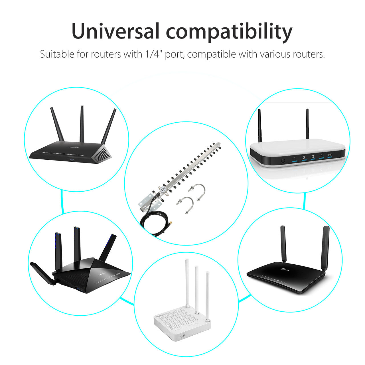 ✅Compatible with modems, wireless net card and routers with a 1/4 inch external antenna port