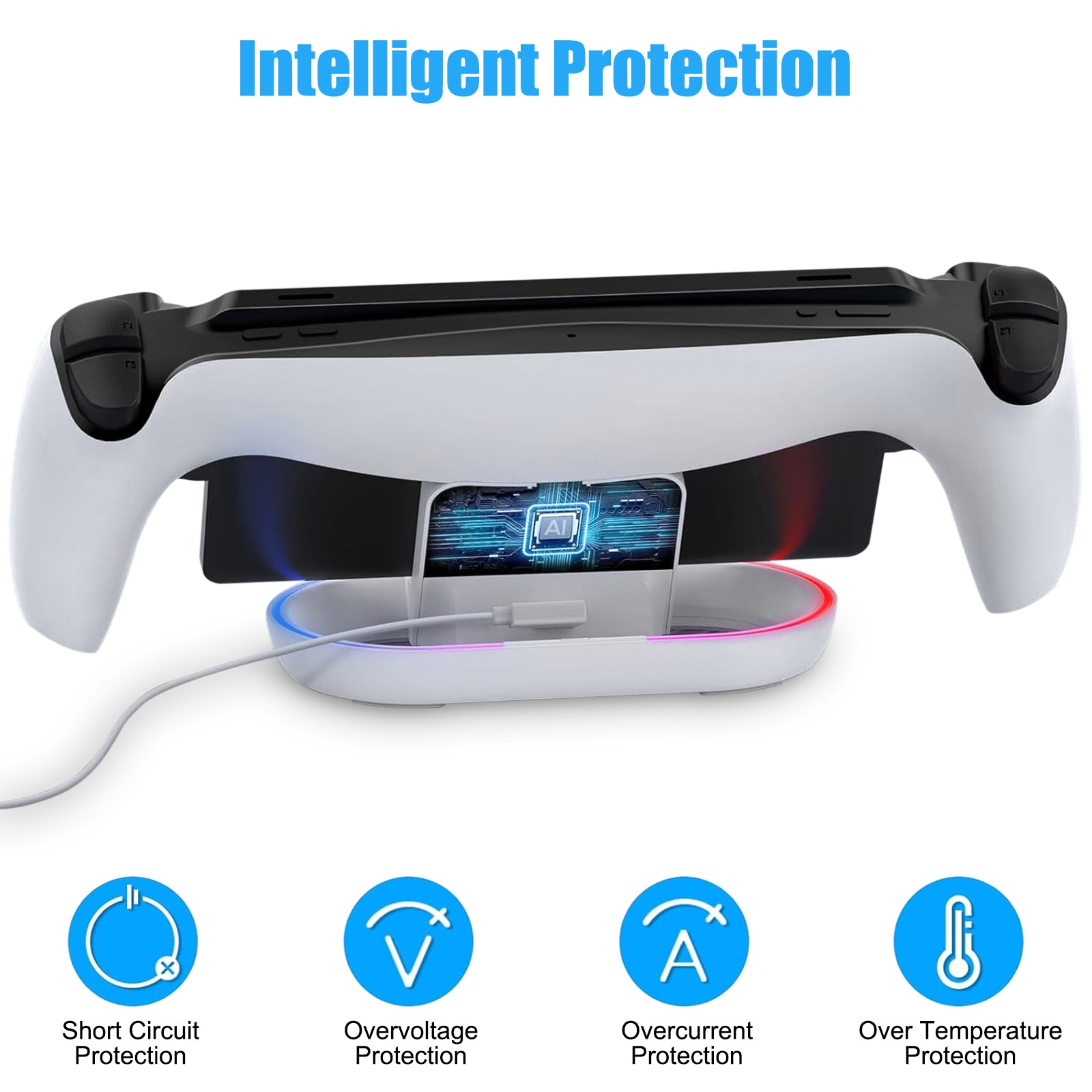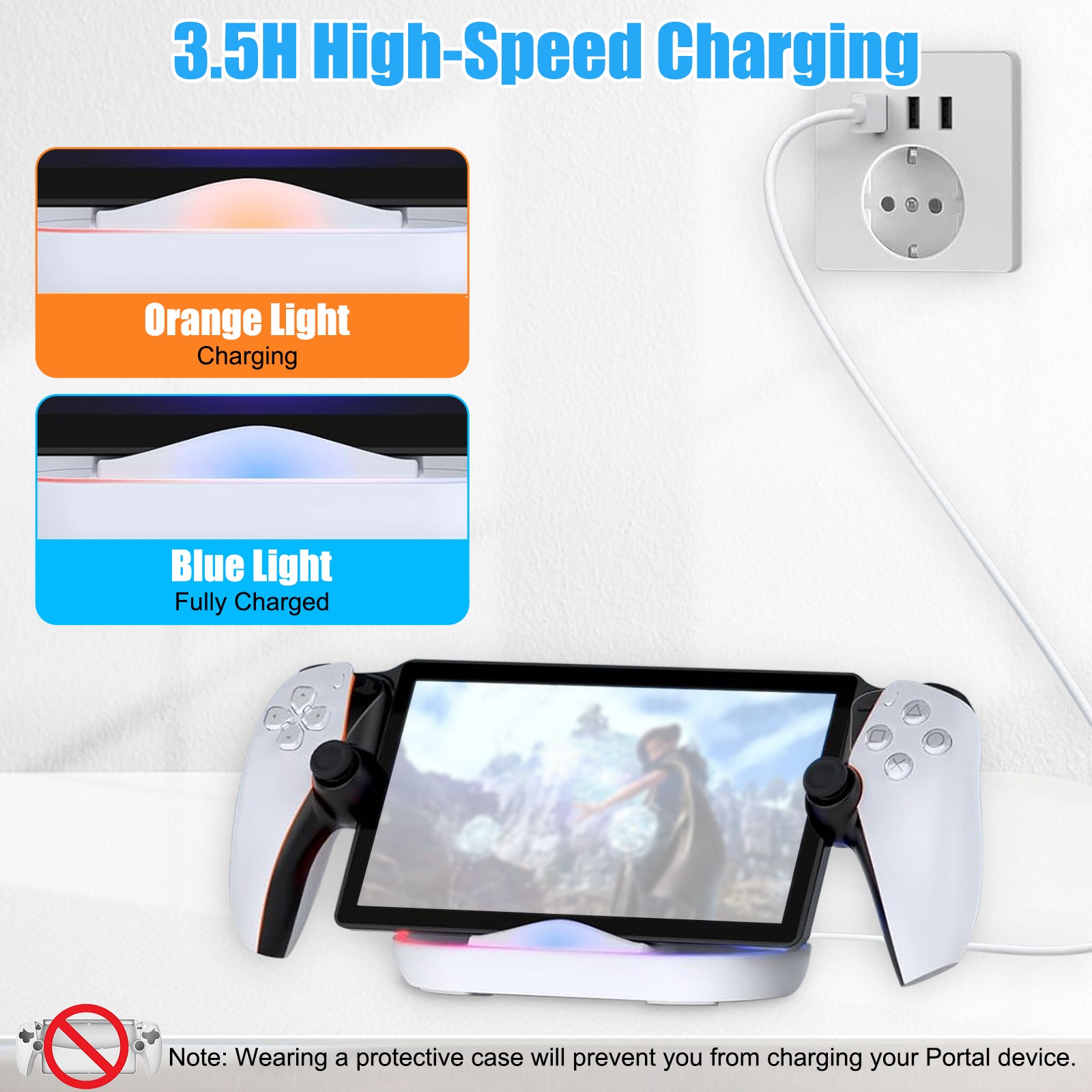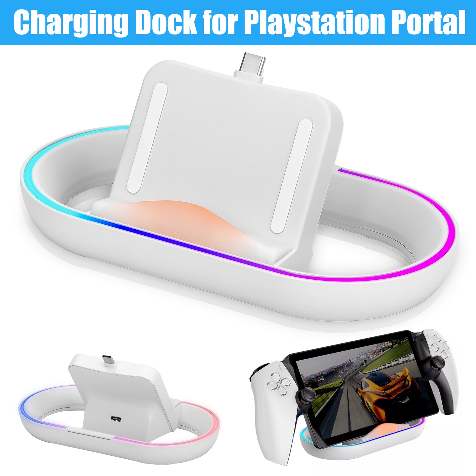 Charging Dock Station for Playstation Portal - 14 RGB Light Modes,Safe Charging with Overcharge Protection, Handheld Stand Holder for Playstation Portal