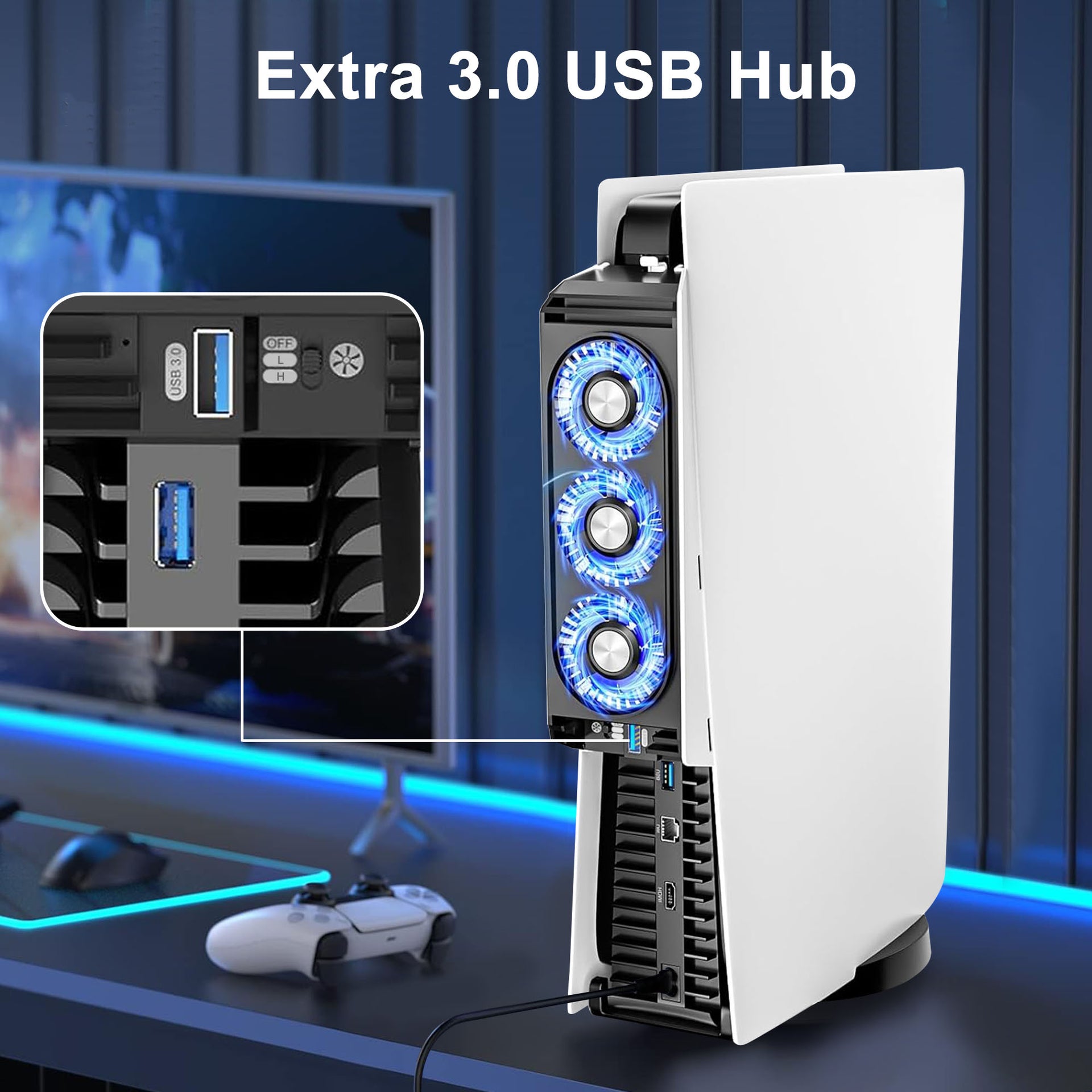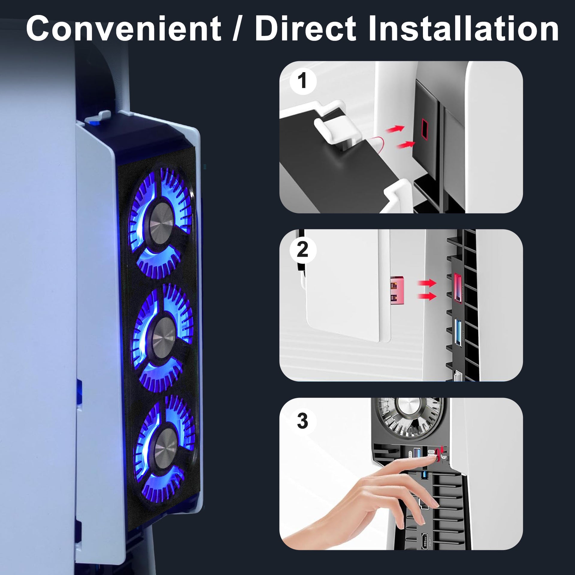 Enhance your gaming setup with our Portable PS5 Cooling Fan, offering not only efficient cooling but also a visually appealing addition to your console. Enjoy quiet and immersive gaming sessions with this stylish and functional cooling solution.