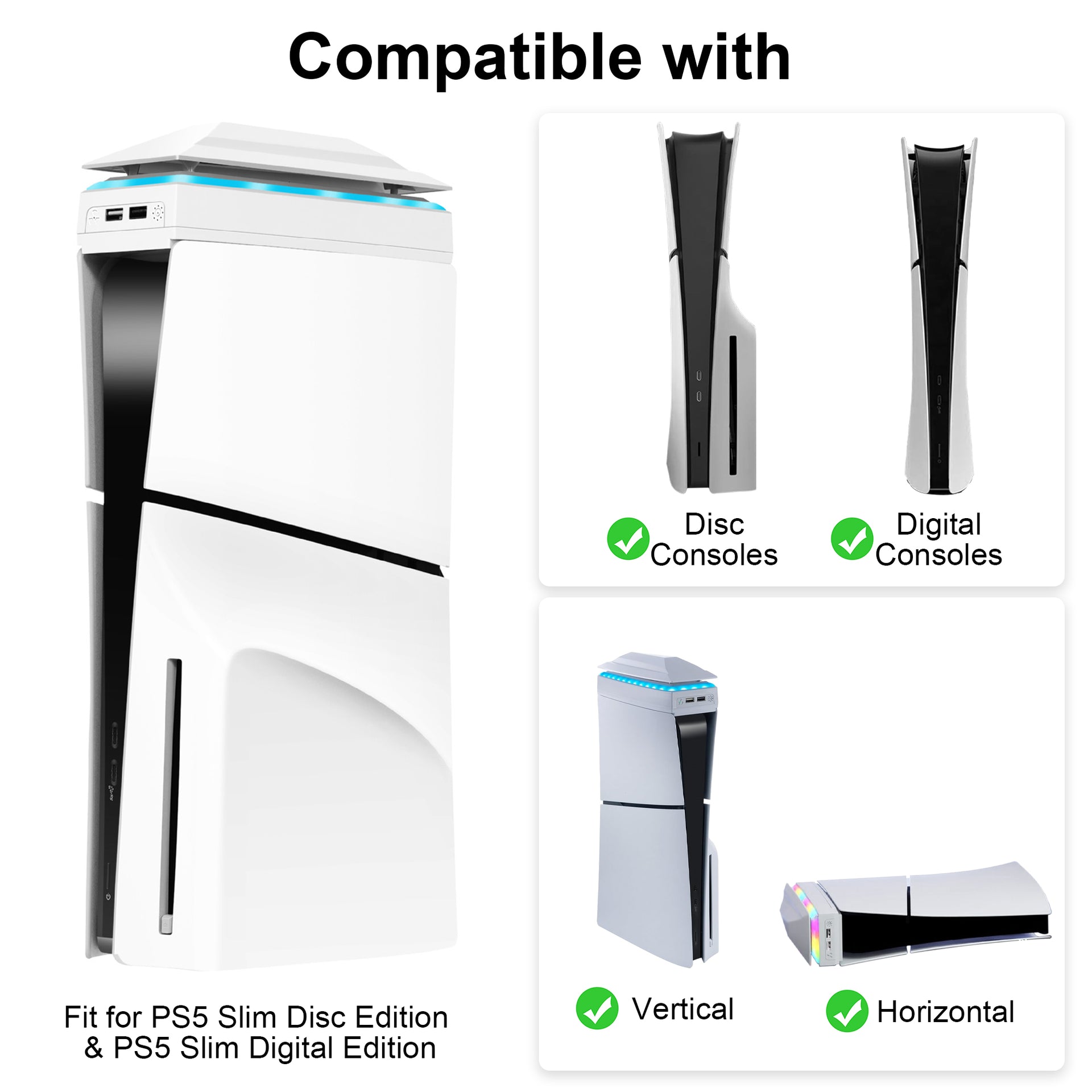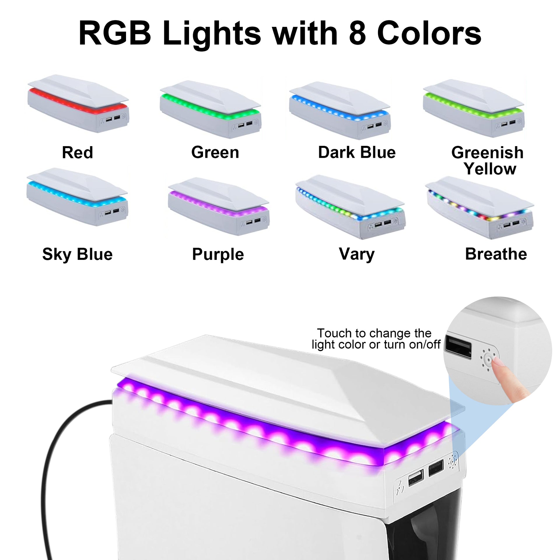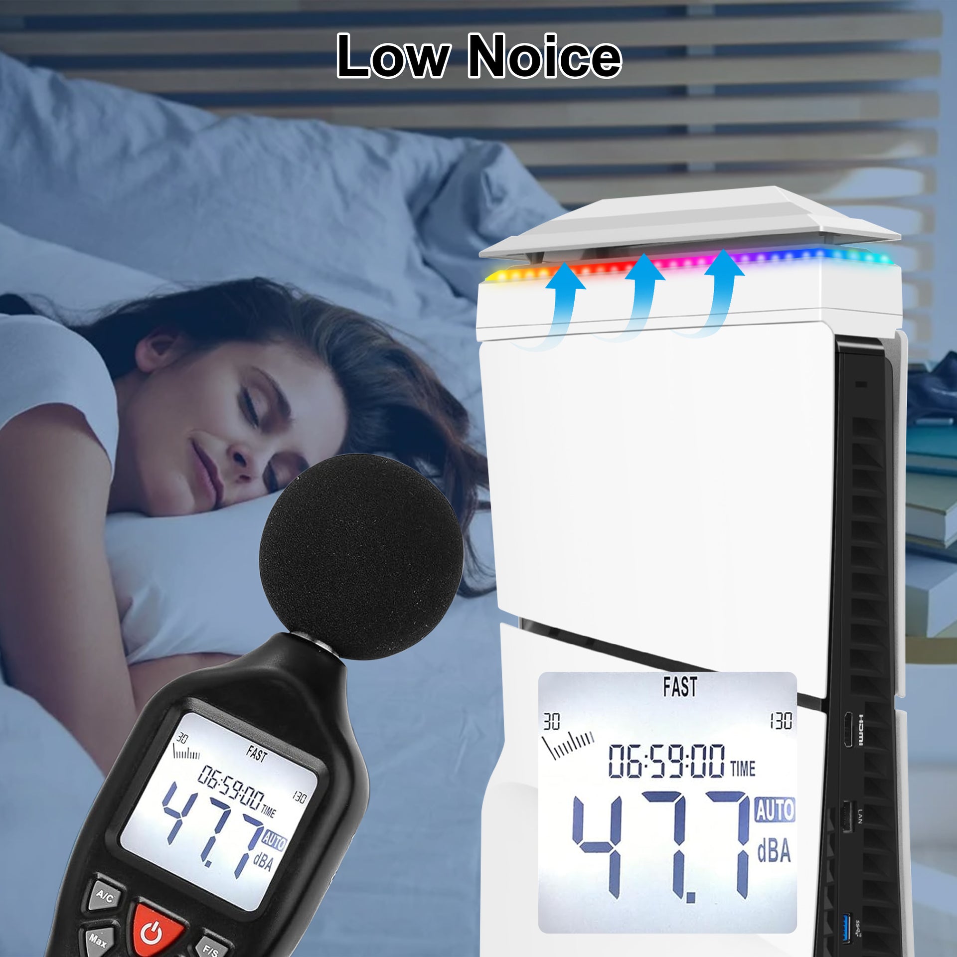 RGB Cooling Fan System with Dust Cover for PS5 Slim - 3 Adjustable Speeds, Dual Fans, 6 Lighting Modes, and 2 USB Ports (White)