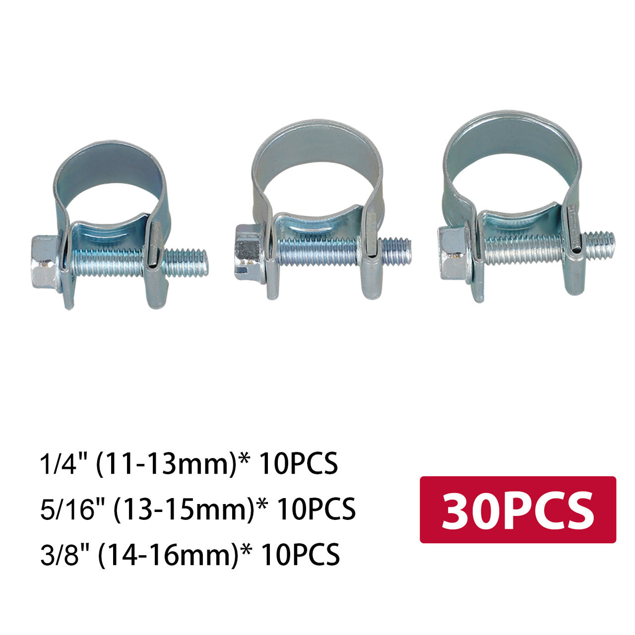1/4" 5/16" 3/8" Fuel Injection Gas Line Hose Clamps Clip Pipe Clamp, 30 Pcs
