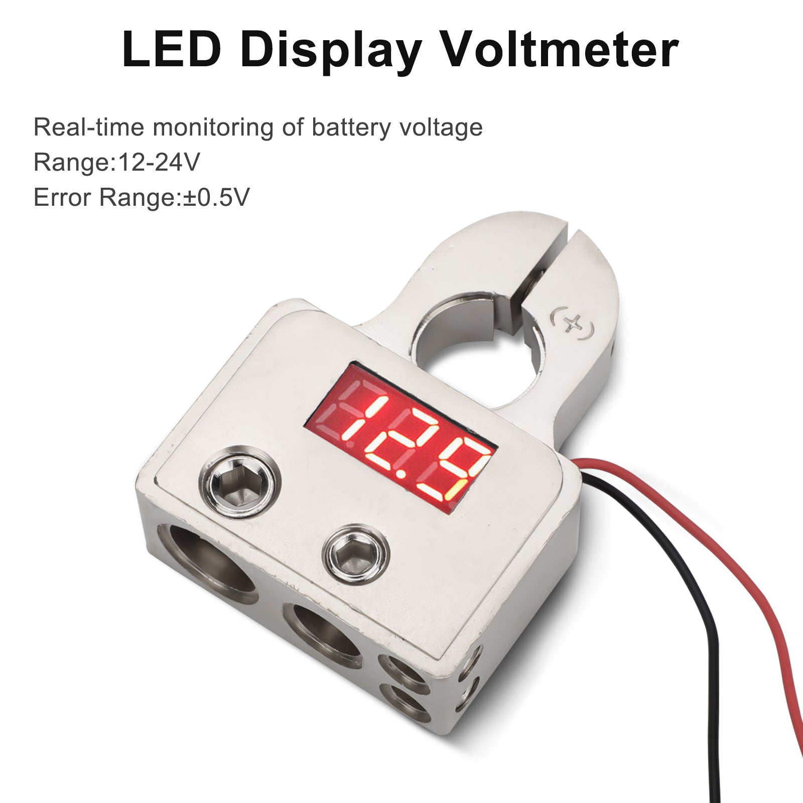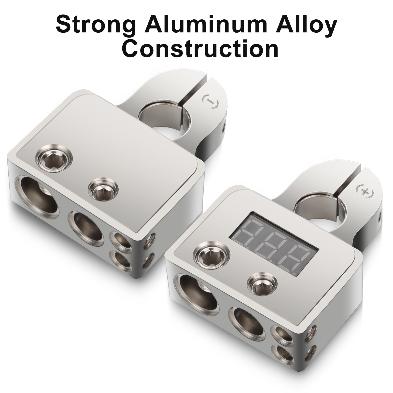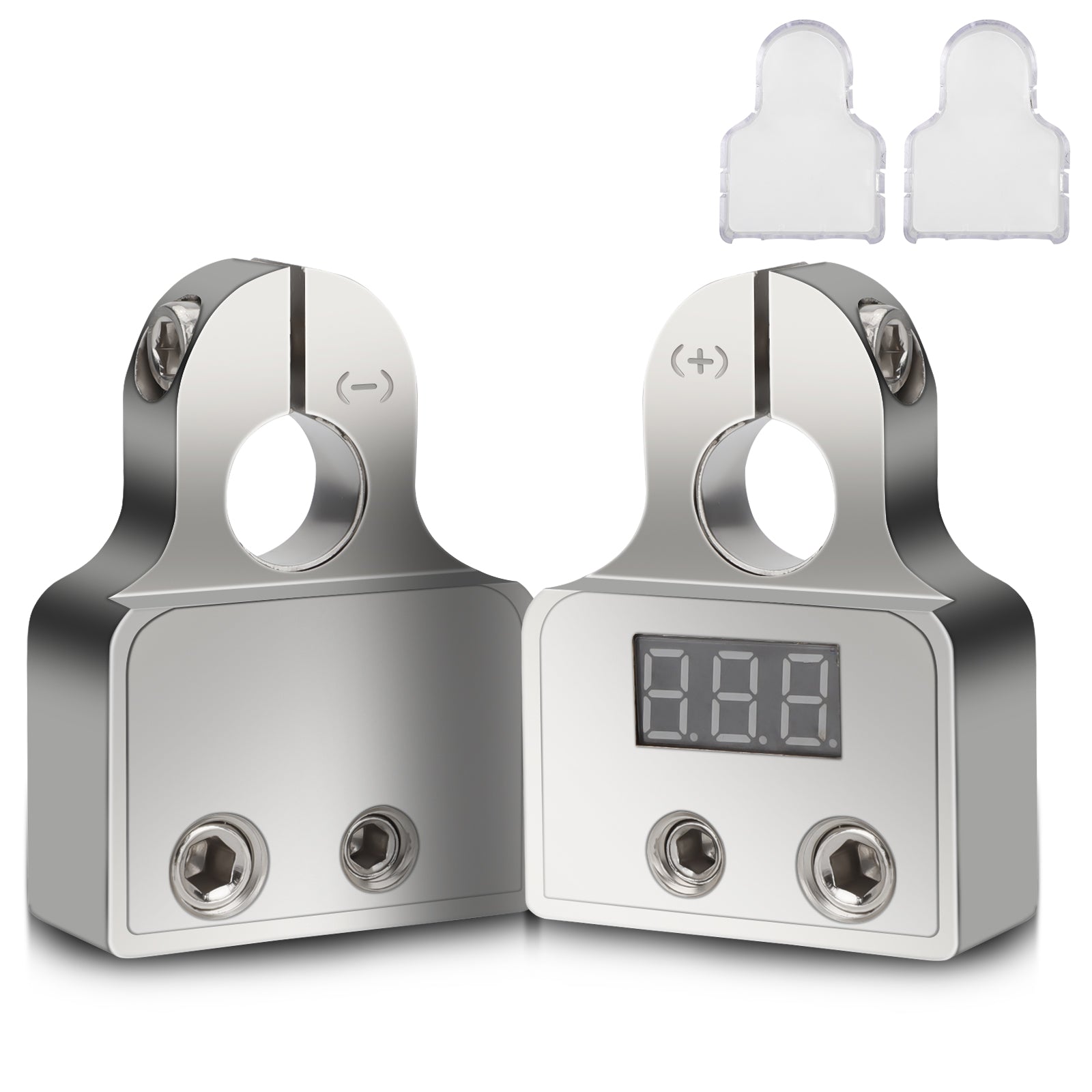 2 Pcs Car Battery Terminal Connectors Kit comes equipped with a precision 12-24V voltmeter with an error margin of less than 0.5V, allowing you to accurately monitor your car's real-time battery voltage with ease. Crafted from high-quality aluminum alloy and bolstered by pure copper fastening rings, these connectors guarantee superior electrical conductivity and protection against corrosion, extending the lifespan of your car battery.