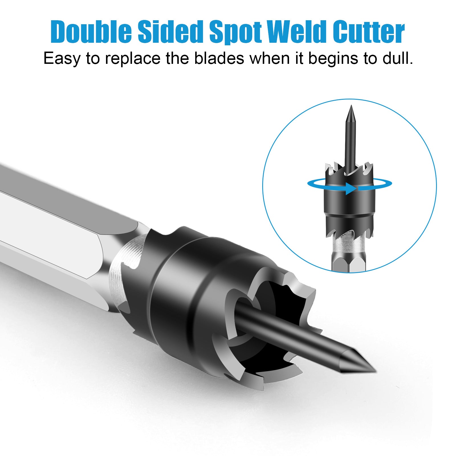 Enhance your toolkit with our 20 Pcs Double Sided Rotary Spot Weld Cutter Drill Bit Kit. Crafted from high-speed steel, these double-sided 3/8" rotary spot weld cutter drill bits offer outstanding hardness and wear resistance. They are designed to fit most power drills and provide dual-sided efficiency, allowing you to flip the bit when one side becomes dull.