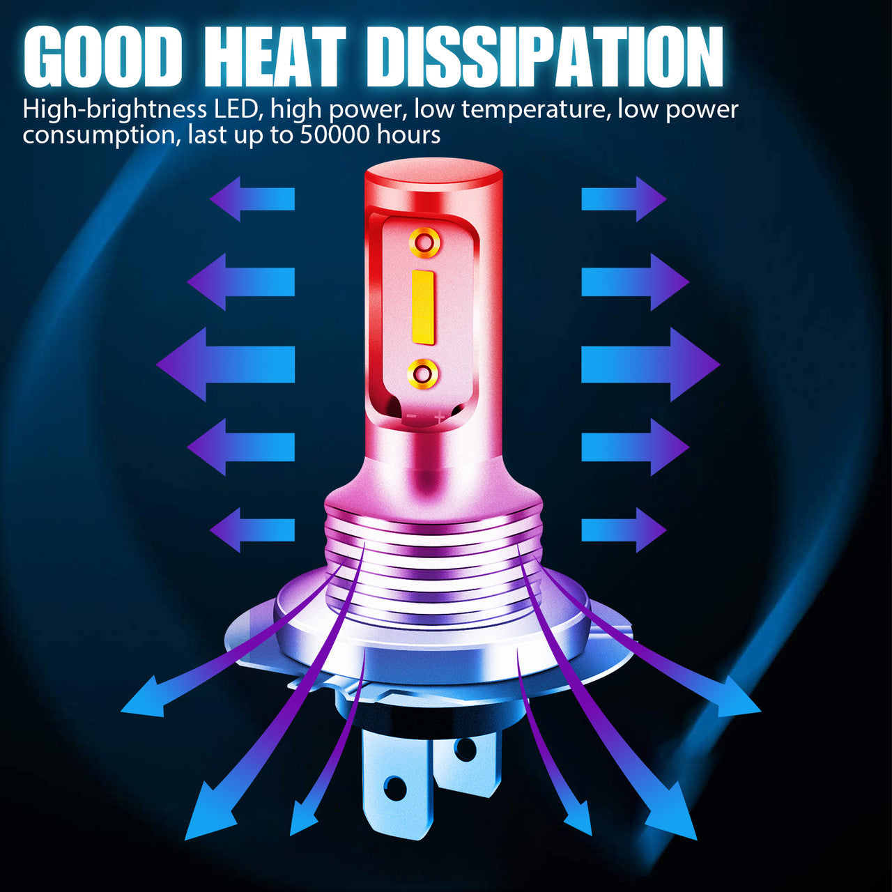 High-brightness LED, high power, low temperature, low power consumption, last up to 50000 hours. Light Color: 6000K White.