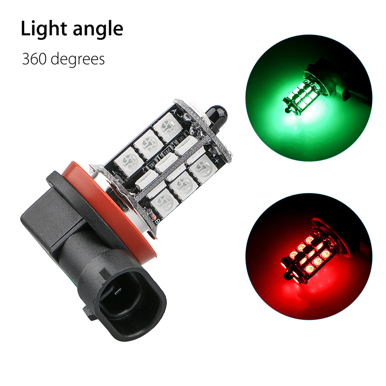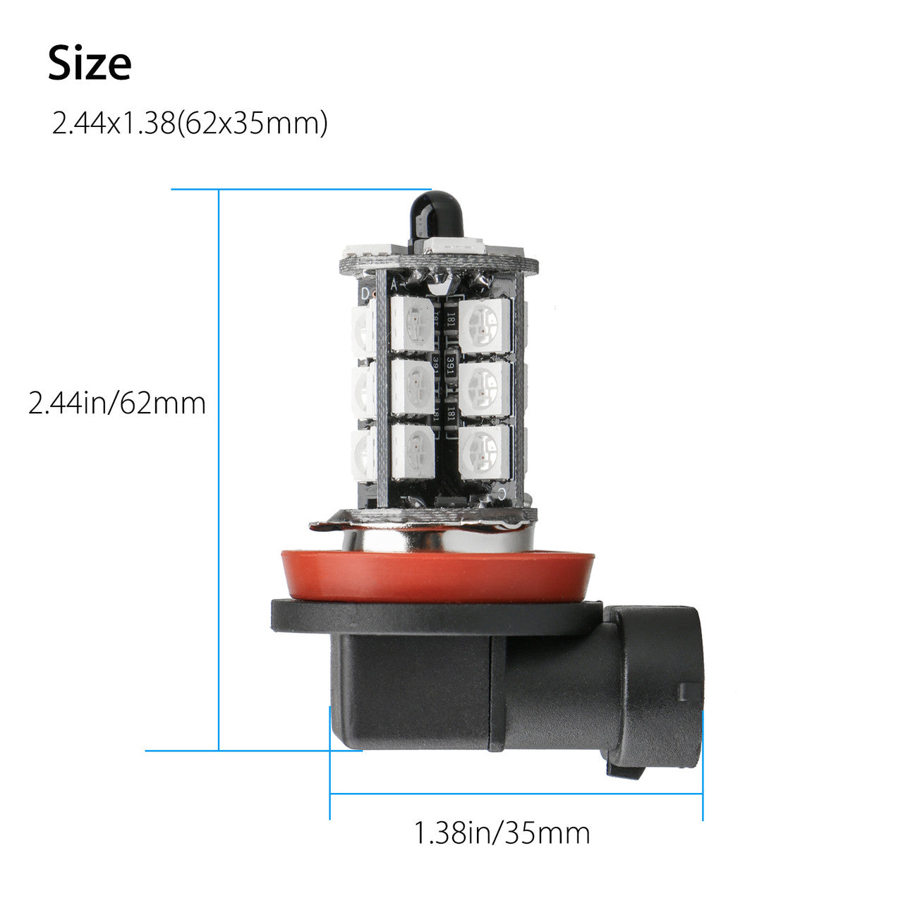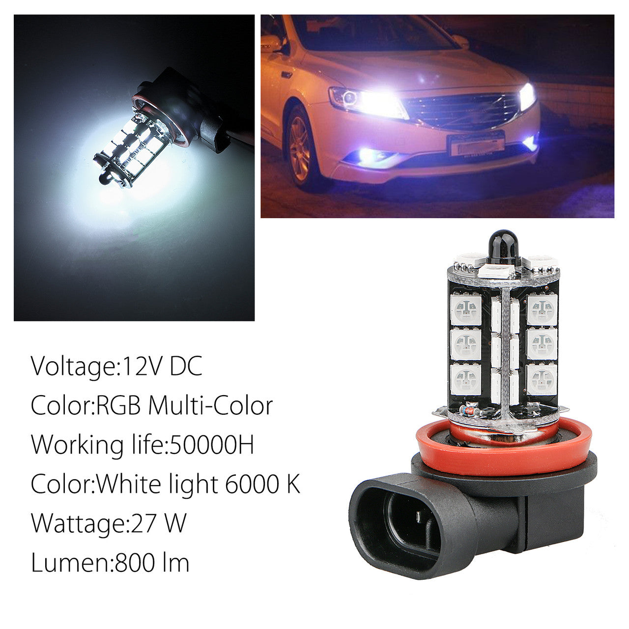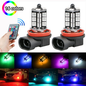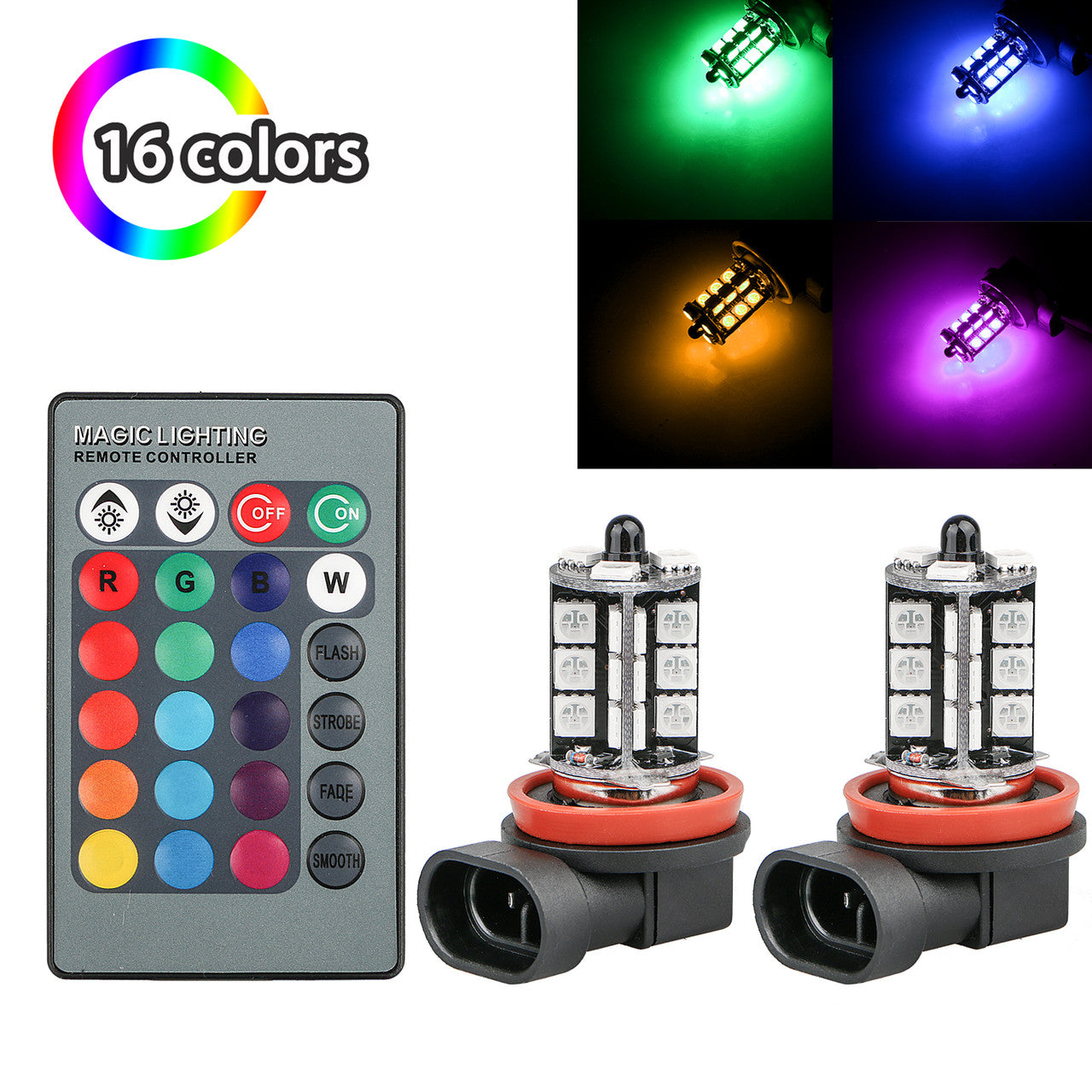 2-In-1 design: 2PCS RGB Car LED Fog Light Bulbs + Remote Control. Every LED light bulb comes with 27 LEDs, low power consumption, durable for long time use.