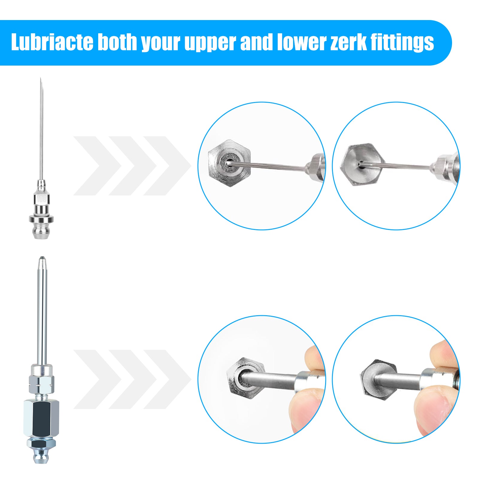 Navigate tight spaces and lubricate hard-to-reach fittings with our versatile 3-Piece Grease Gun Accessory Kit. Engineered for precision and durability, this set includes a 90-degree grease fitting nozzle, needle dispenser, and injector needle, all crafted from high-quality carbon steel with a protective galvanized finish. Whether you're maintaining industrial machinery, automotive components, or intricate metal parts, this kit ensures efficient lubrication and long-term metal protection. Ideal for professionals and DIY enthusiasts alike, get the reach and performance you need for seamless equipment maintenance.