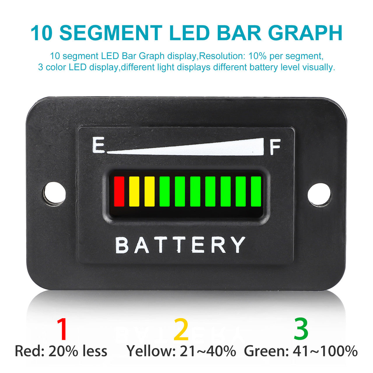 ✅10 segment LED Bar Graph display,Resolution: 10% per segment:3 color LED display,different light displays different battery level visually;