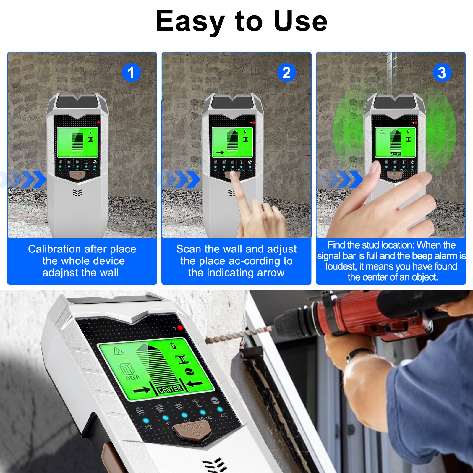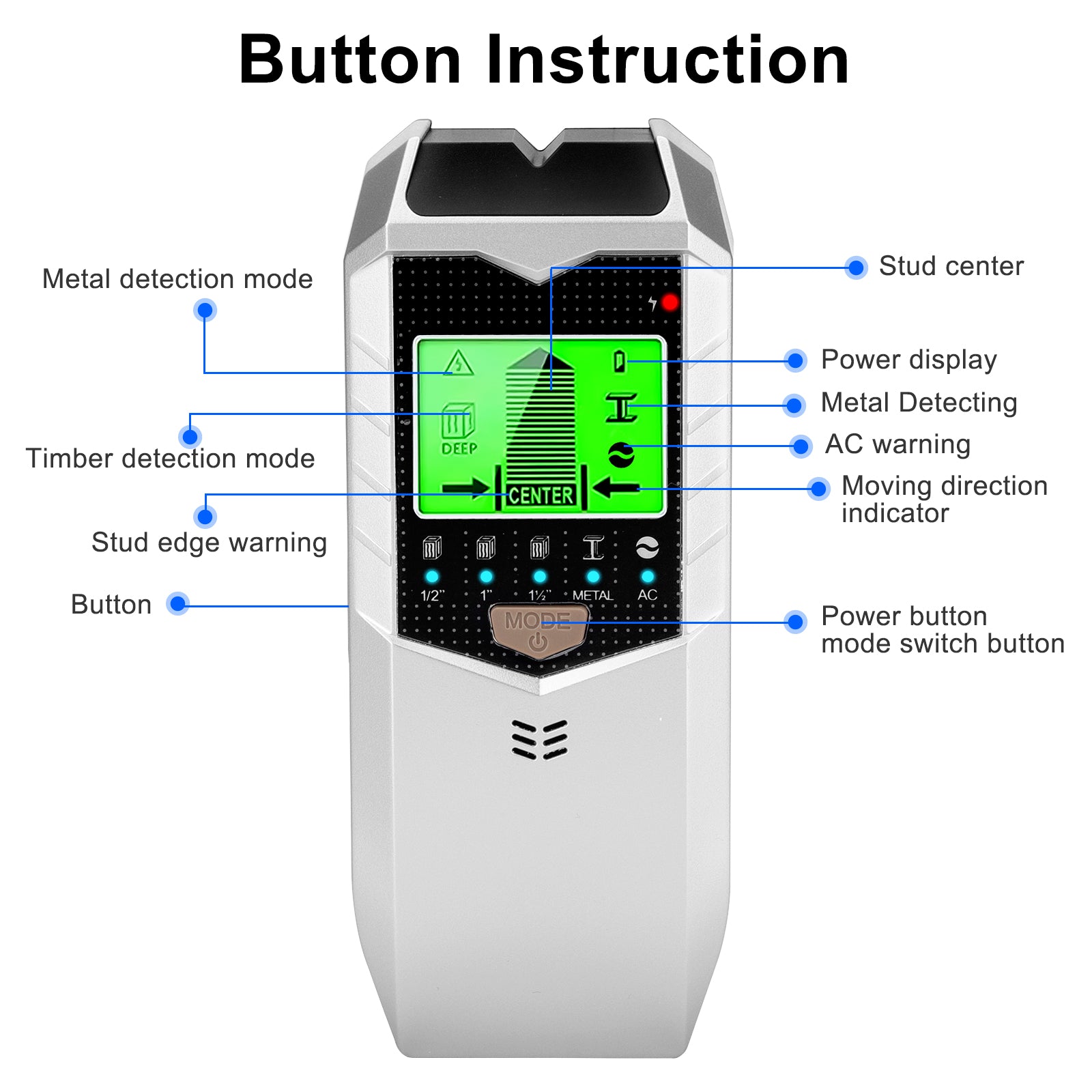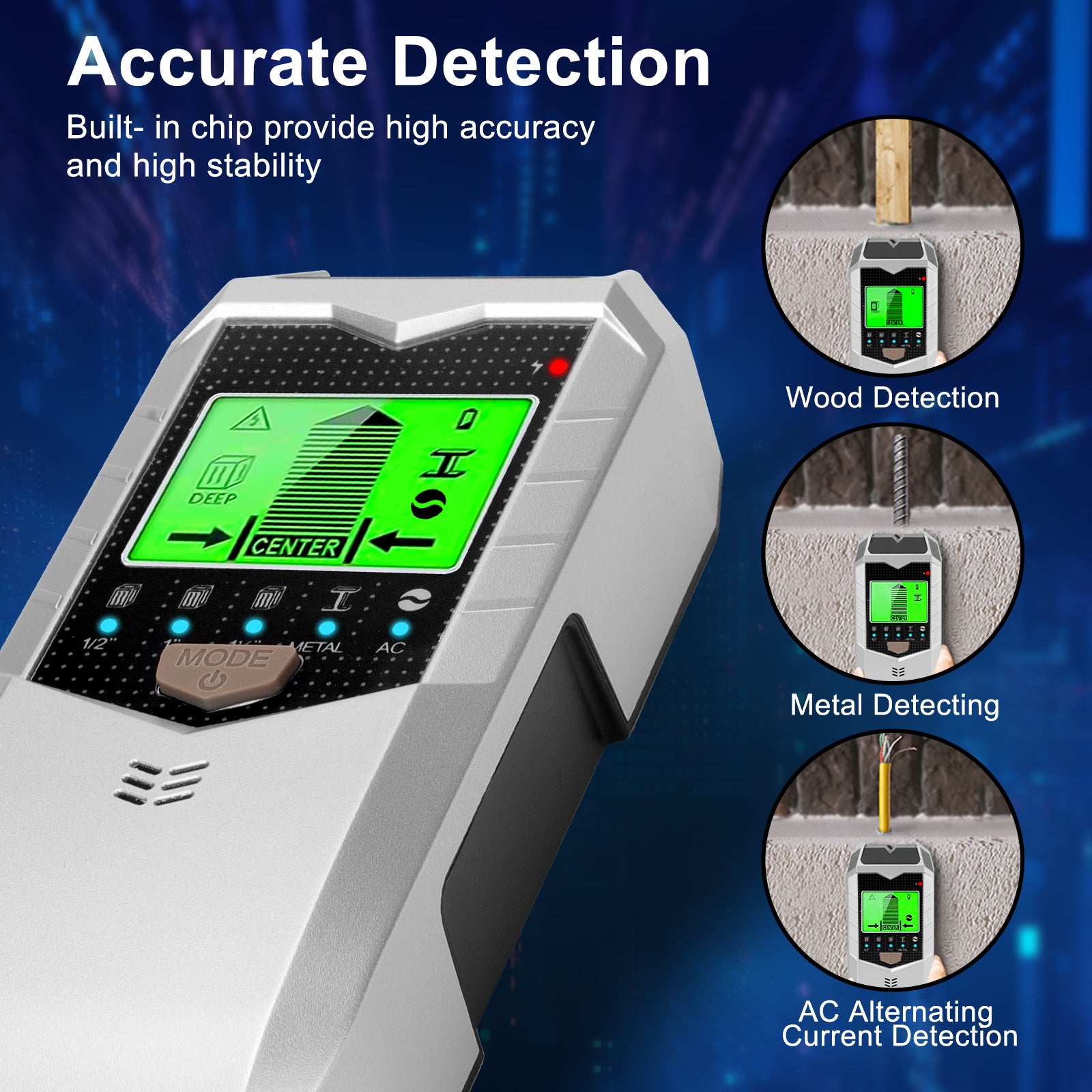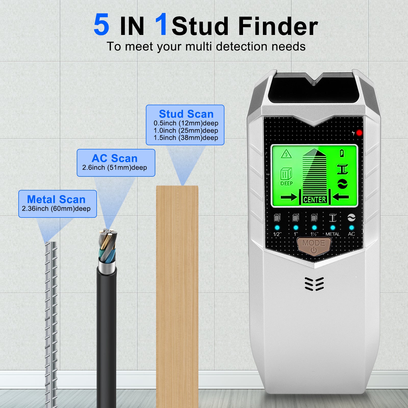 Unleash the power of precision with our SH402 Stud Finder, a versatile tool designed to make your construction and DIY projects safer and more efficient. Utilizing the latest sensor technology, this 5-in-1 detector effortlessly locates studs, metal pipes, and live AC wires behind walls, ceilings, and floors. The intuitive LCD display and audio alarm system guide you to the exact location, while the robust construction ensures durability. Whether you're hanging decor or redoing electrical wiring, this stud finder is the reliable companion you need for any job.