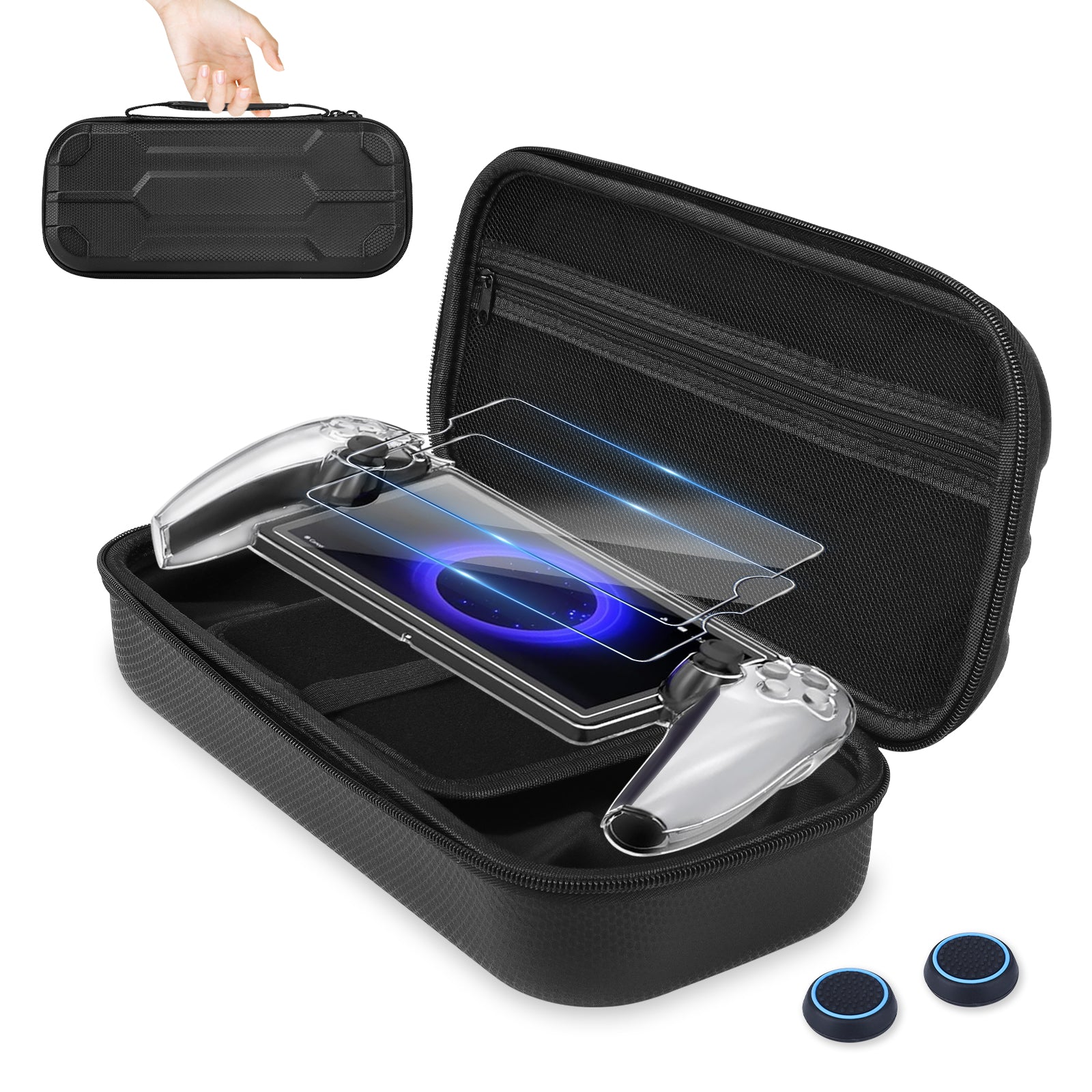 Elevate your gaming experience with our 6-in-1 Accessories Bundle designed exclusively for the PlayStation Portal remote player. This all-inclusive package provides everything you need to protect and enhance your device. Featuring a durable carrying bag with EVA shell, clear PC protective case, two 9H tempered glass screen protectors, and two thumb grips, this bundle ensures your PlayStation Portal is safeguarded and optimized for the ultimate gaming experience.