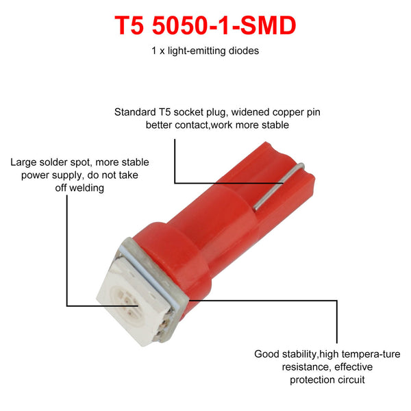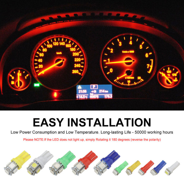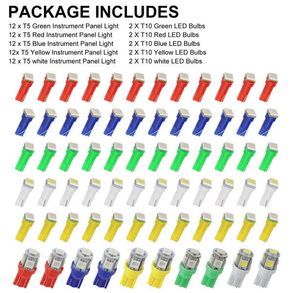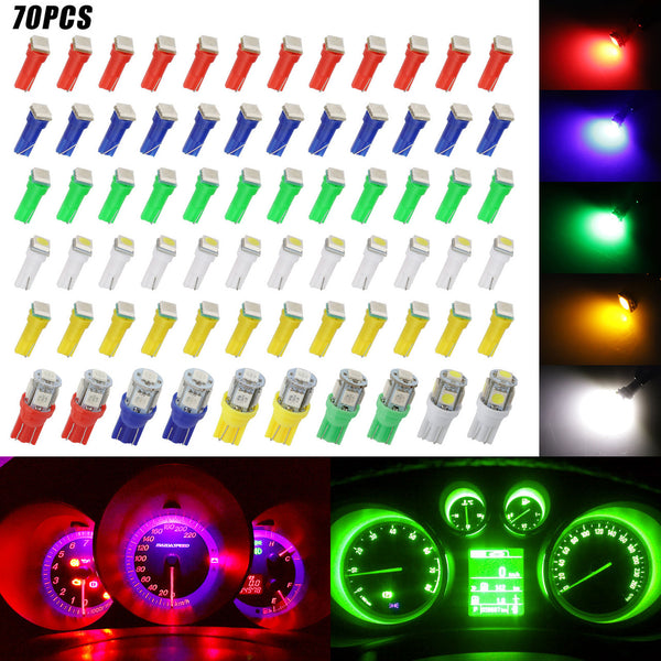 70Pcs T5 LED Instrument Dash Light Bulbs, T10 LED Dashboard Lights, T10 T5 LED Instrument Cluster Panel Gauge Dash LED Bulb Light, Fits for Corner Parking Side Marker Tail License Lights, 12V