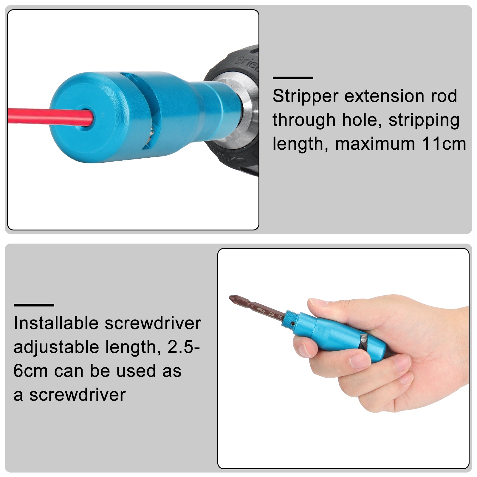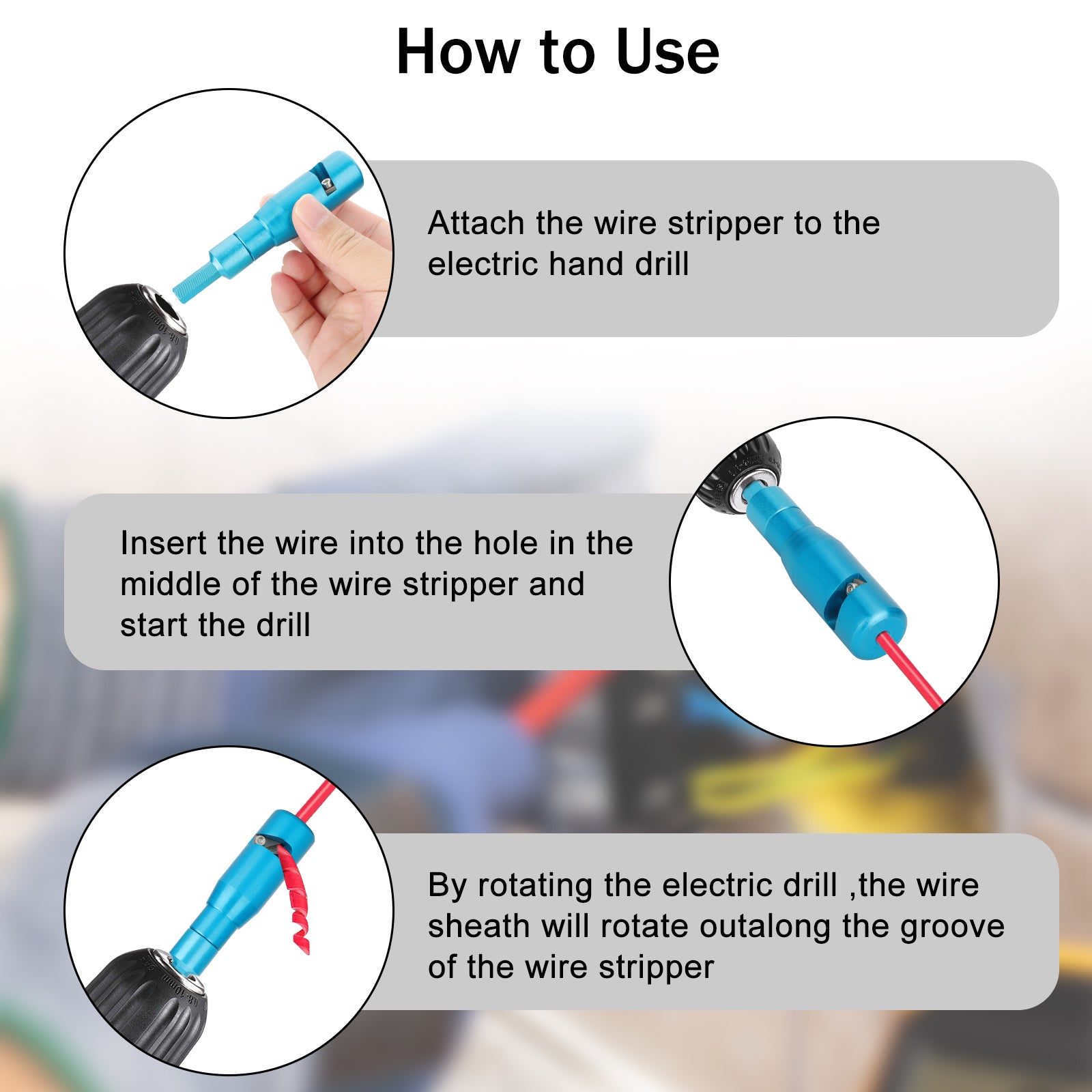 Crafted from premium aluminum alloy and equipped with an S2 alloy tool steel blade, our wire stripper tool is a powerhouse designed to elevate the efficiency of every electrician's arsenal. This compact tool, at just 112×24mm, is perfect for electricians looking to boost their productivity while saving valuable time. Experience rapid wire stripping with the use of your electric drill, as this tool's rotating groove swiftly removes wire sheaths, making it an essential upgrade from tedious manual stripping techniques.