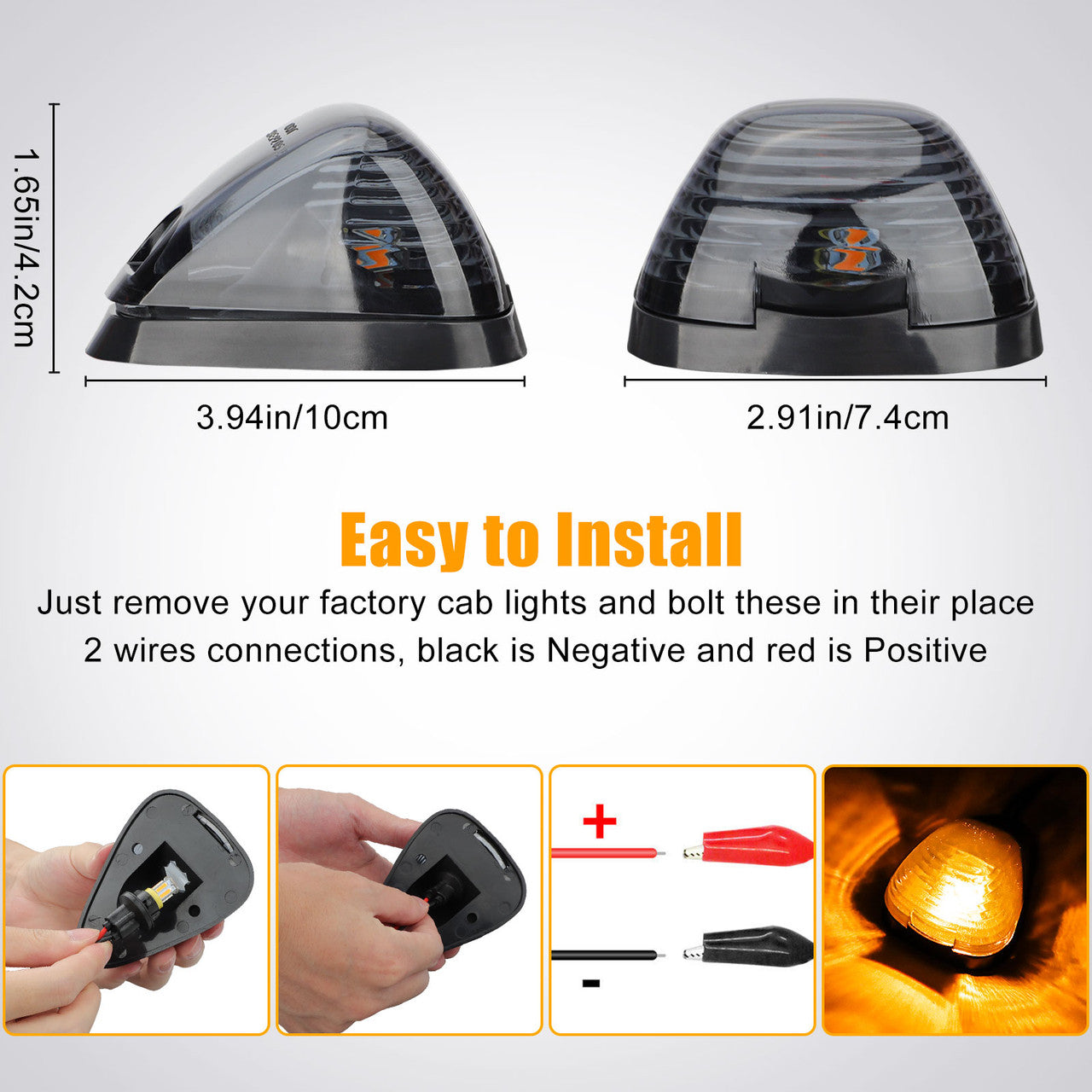 Upgrade your Ford Super Duty with this 5-piece amber LED cab roof marker lights kit. Constructed with high-quality ABS plastic lenses and ultraviolet treatment, these lights are waterproof, dustproof, and fade-resistant. Enhance visibility during night driving and adverse weather conditions. Simple installation with included soft pads and screws. Compatible with various Ford Super Duty models from 1999 to 2016.