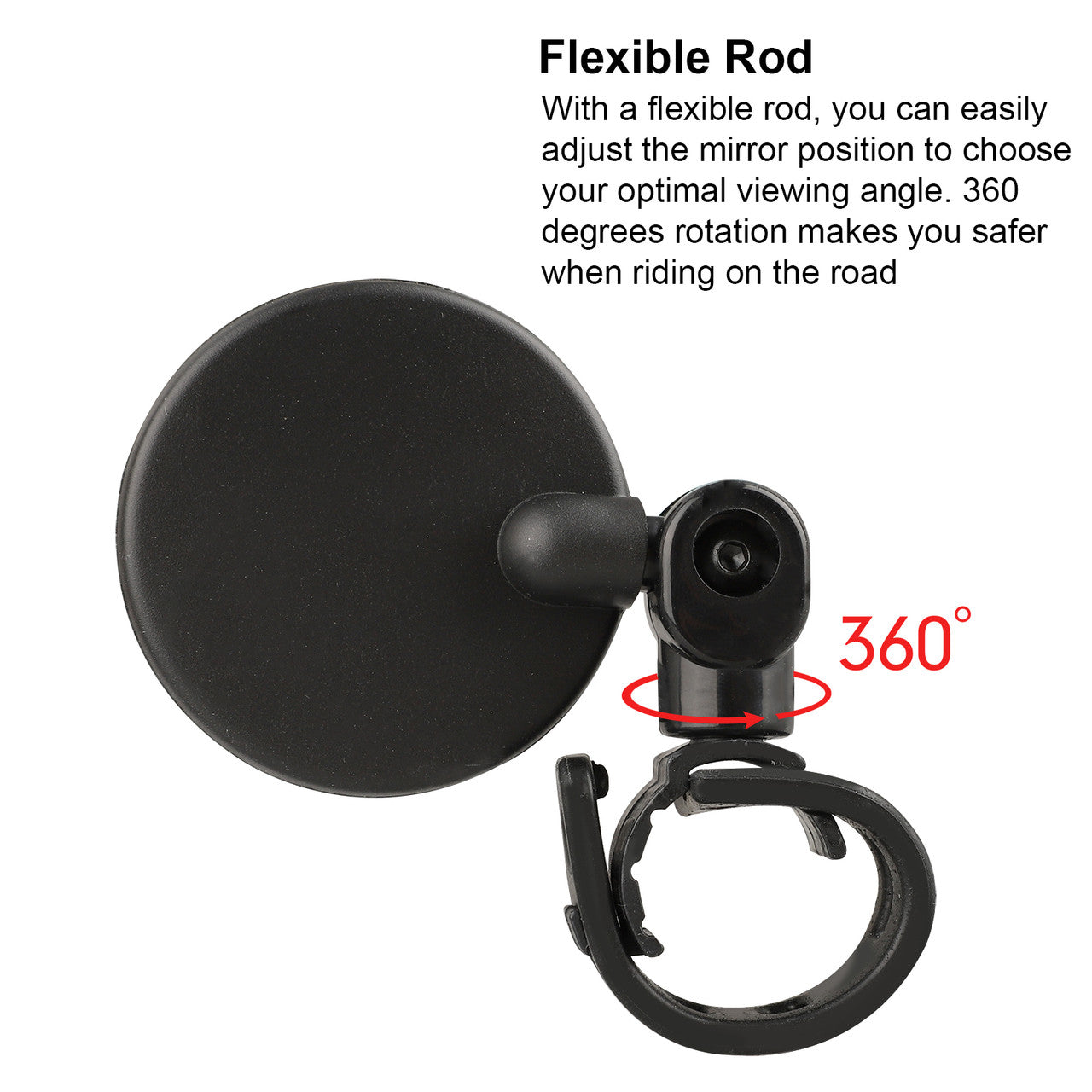 ✅Flexible Rod: With a flexible rod, you can easily adjust the mirror position to choose your optimal viewing angle. 360 degrees rotation makes you safer when riding on the road.