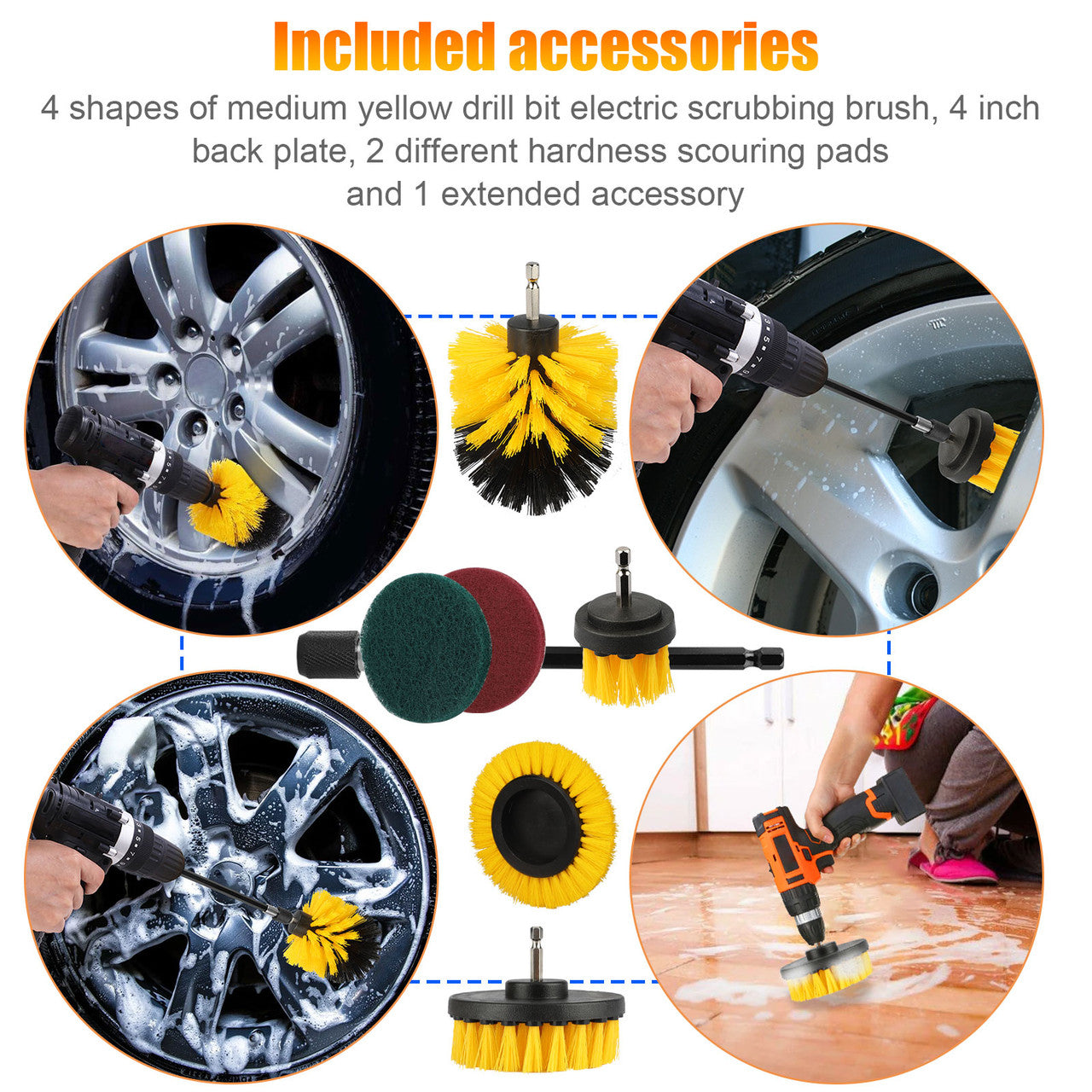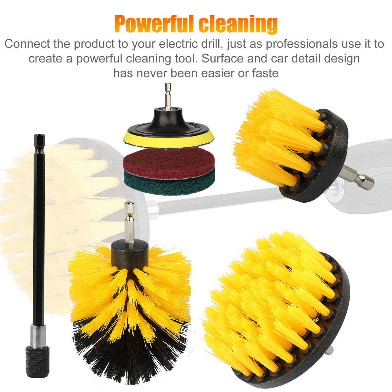 1 x frosted drill brush multi-purpose cleaning kit (7 pcs)