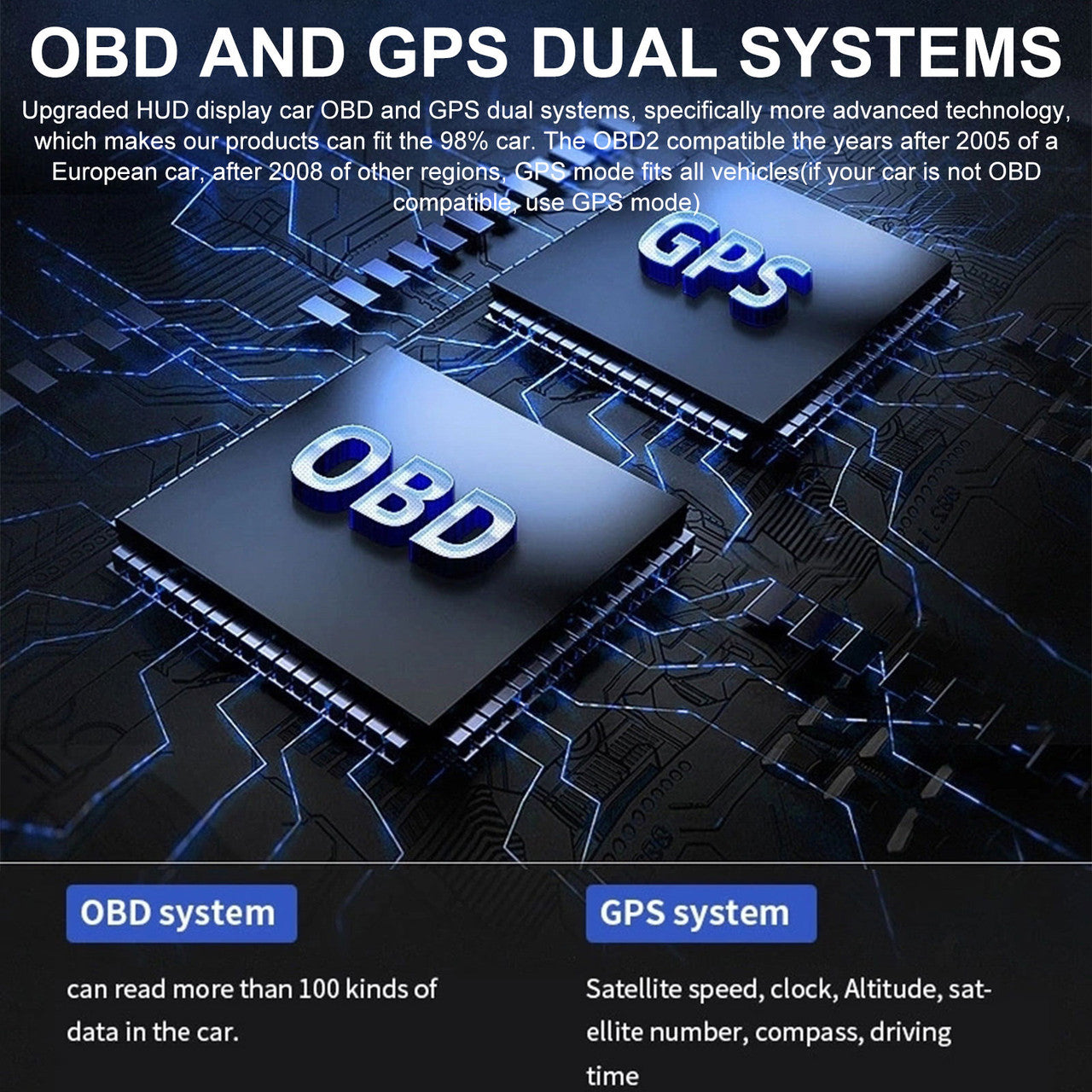 Much More Powerful than Others: Upgraded HUD display car OBD and GPS dual systems, specifically more advanced technology, which makes our products can fit the 98% car. The OBD2 compatible the years after 2005 of a European car, after 2008 of other regions, GPS mode fits all vehicles(if your car is not OBD compatible, use GPS mode).