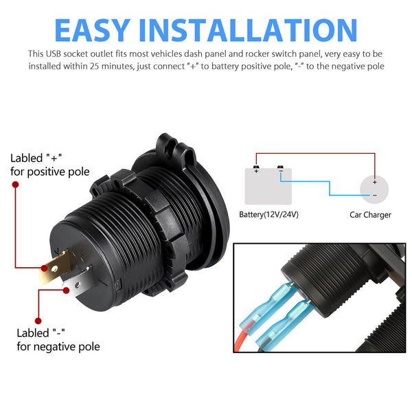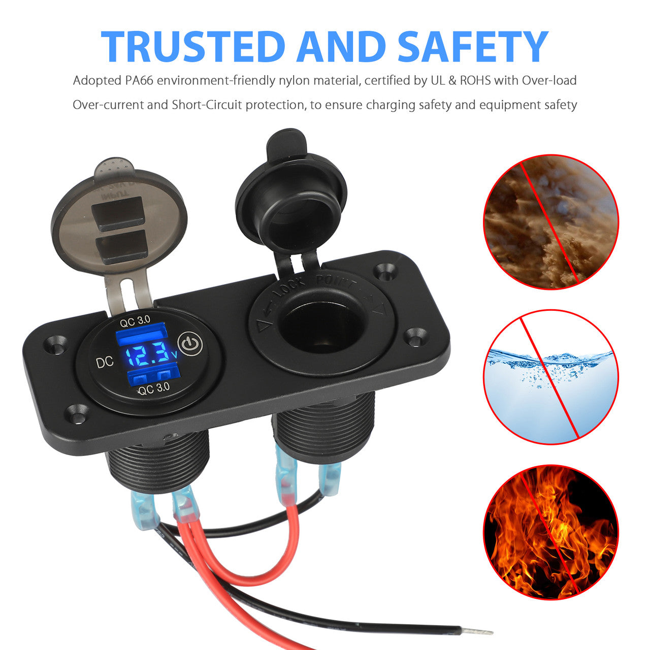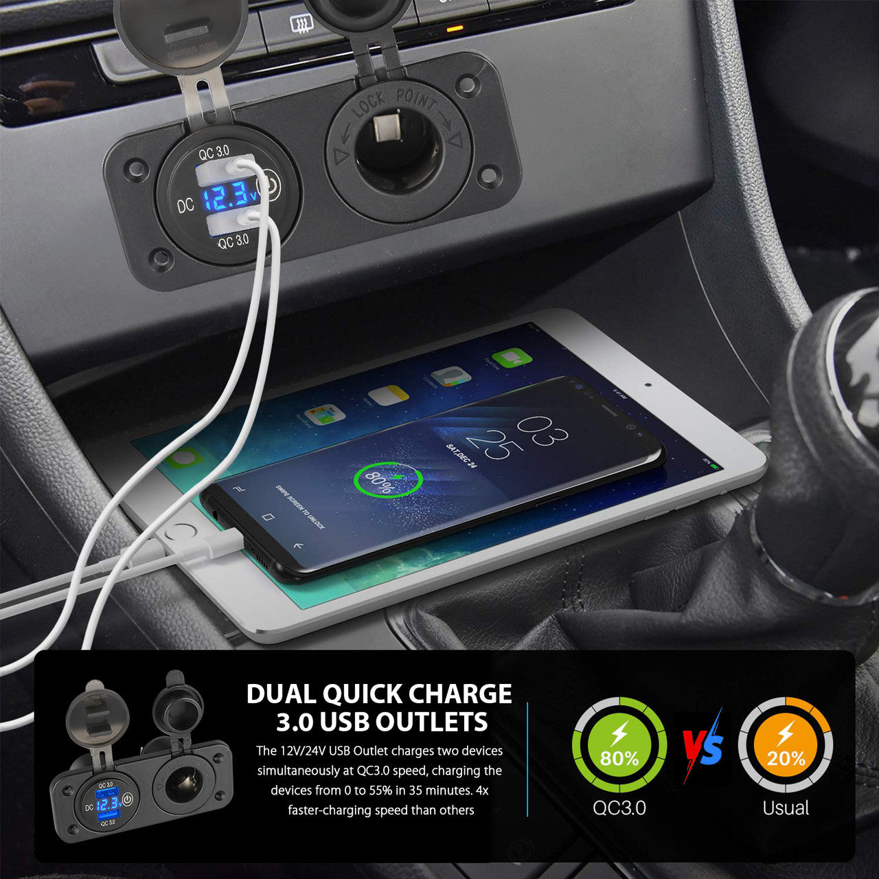 Dual Quick Charge 3.0 USB Outlets: The 12V/24V USB Outlet charges two devices simultaneously at QC3.0 speed, charging the devices from 0 to 55% in 35 minutes. 4x faster-charging speed than others.
