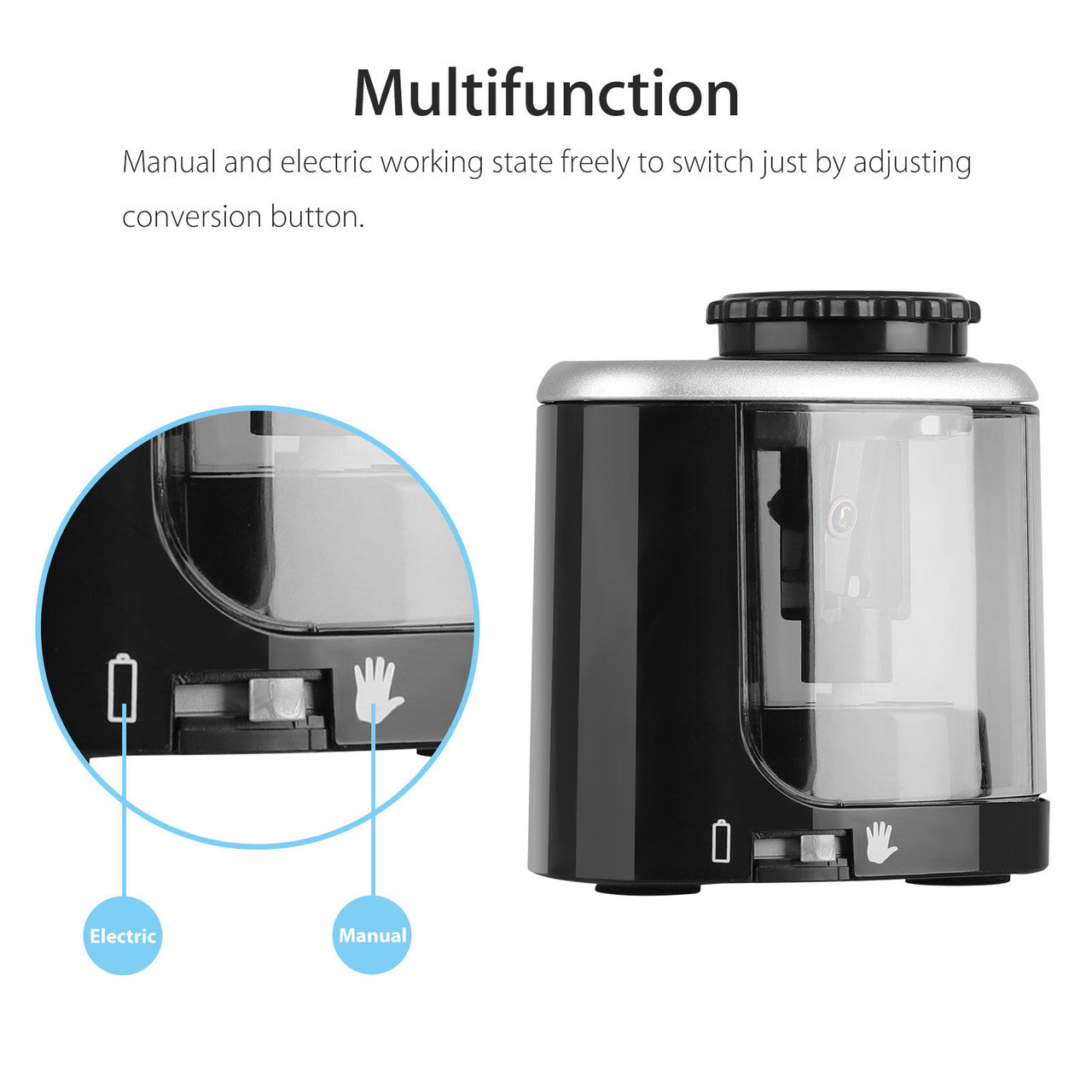 ✅【2 Operating Modes】: This Pencil sharpener with two modes: automatic and manual. If the batteries run out and you do not have any replacements on hand, simply switch the switch to manual mode, allowing you to continue to sharpen your pencil smothly.