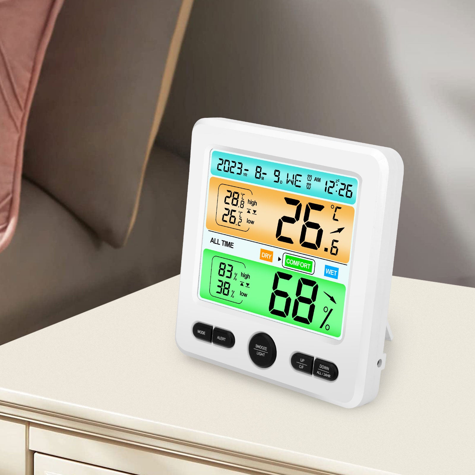 Elevate your home environment monitoring with our Indoor Temperature Humidity Clock, a multifunctional device designed for optimal comfort and well-being. Packed with advanced features, this compact instrument serves as more than just a temperature and humidity monitor.