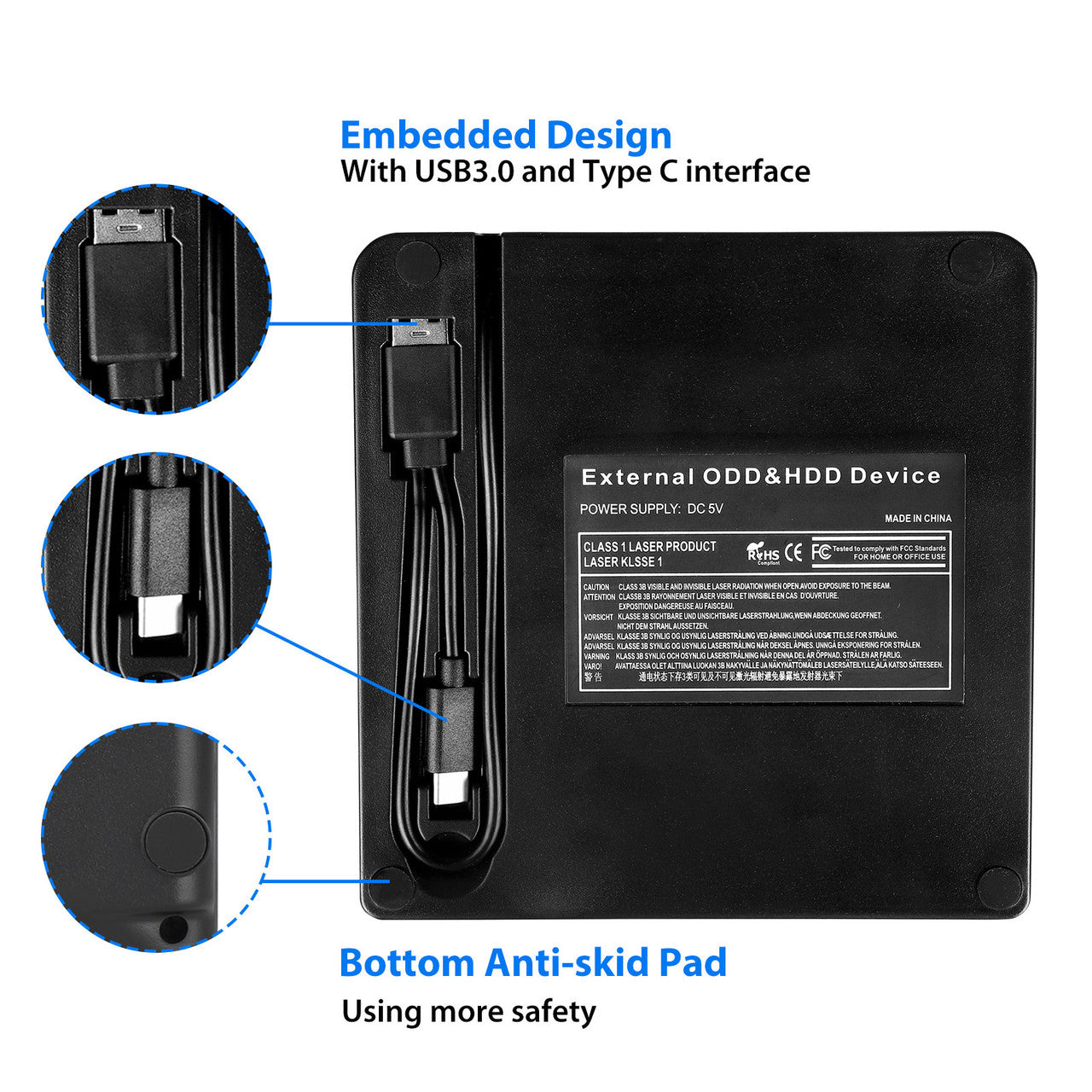 ✅High Speed USB 3.0 and Type-C: CD ROM External Drive adopted advanced burning technology, supported DVD+R, DVD, CD-ROM, DVD-ROM, CD-R, CD-RW. With USB3.0 and Type C Interface. Max DVD read speed 8x; Max CD read speed 24x and max CD burn speed 8x. bringing you faster data transmission speed (max 5Gbps), plays music and movies without lag or distortion.