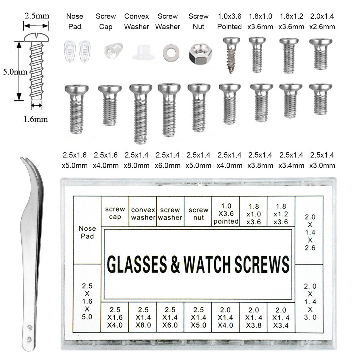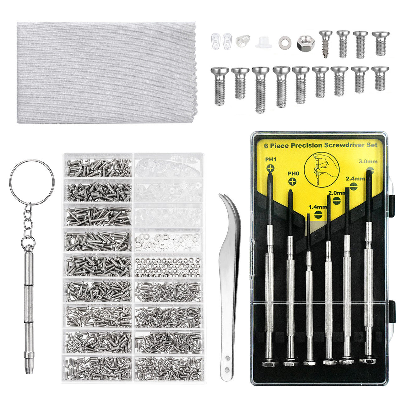 ✅Eyeglass Screwdriver Set: This repair kit include all the eyeglasses screwdrivers, PH0,PH1 Phillips screwdriver and 1.4mm 2.0mm 2.4mm 3.0mm flat head screwdrivers.