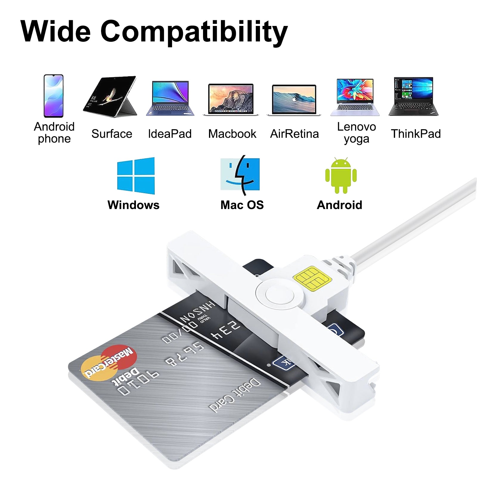 Elevate your security with our compact and foldable USB-C Smart Card Reader, tailored for military-grade data protection. This plug-and-play device offers driverless operation on Windows 7 and Mac OS 10.11.1 or later, with necessary software or Java integration for Mac and Android OTG. It's ideal for high-stakes government, banking, and network applications, designed for secure and efficient user authentication.