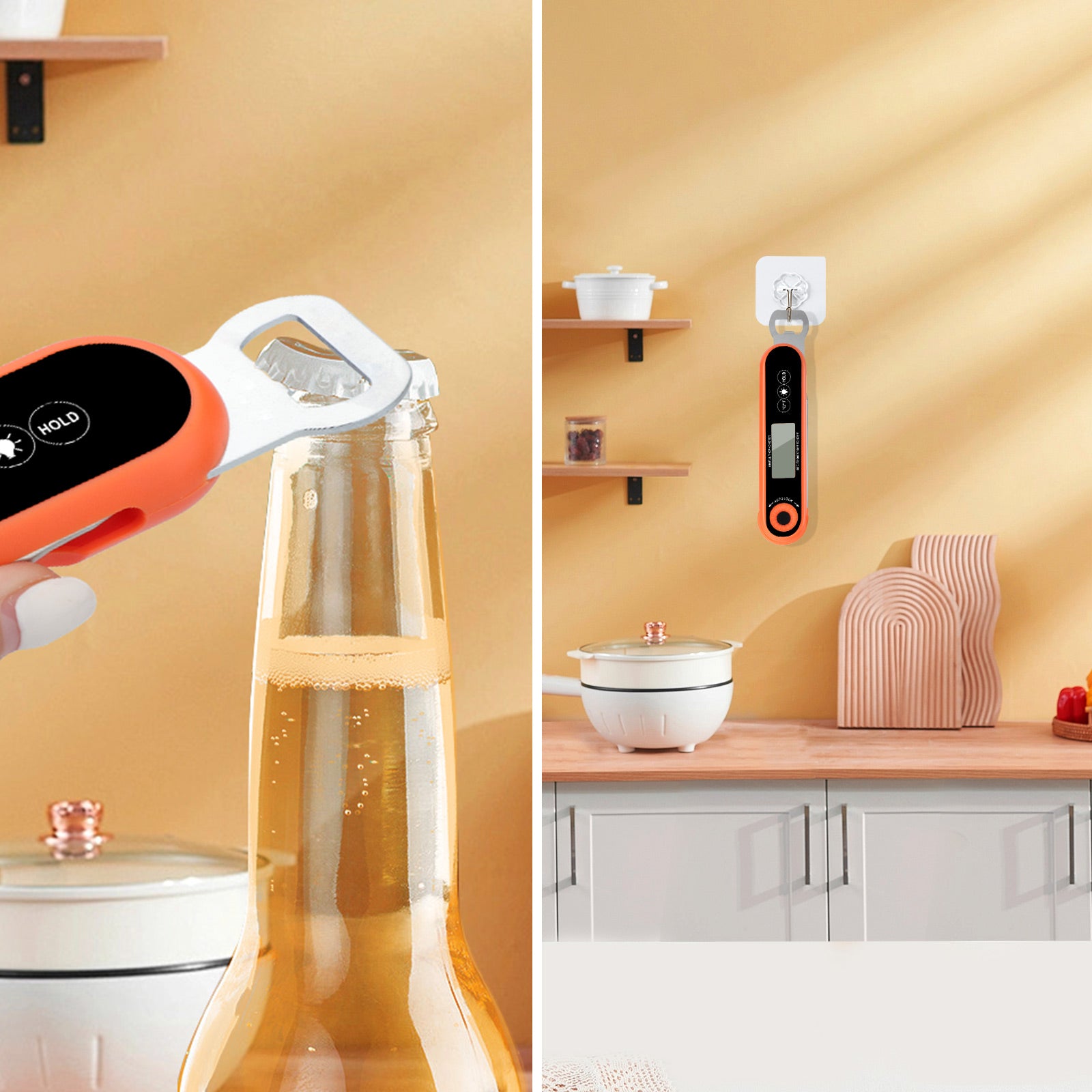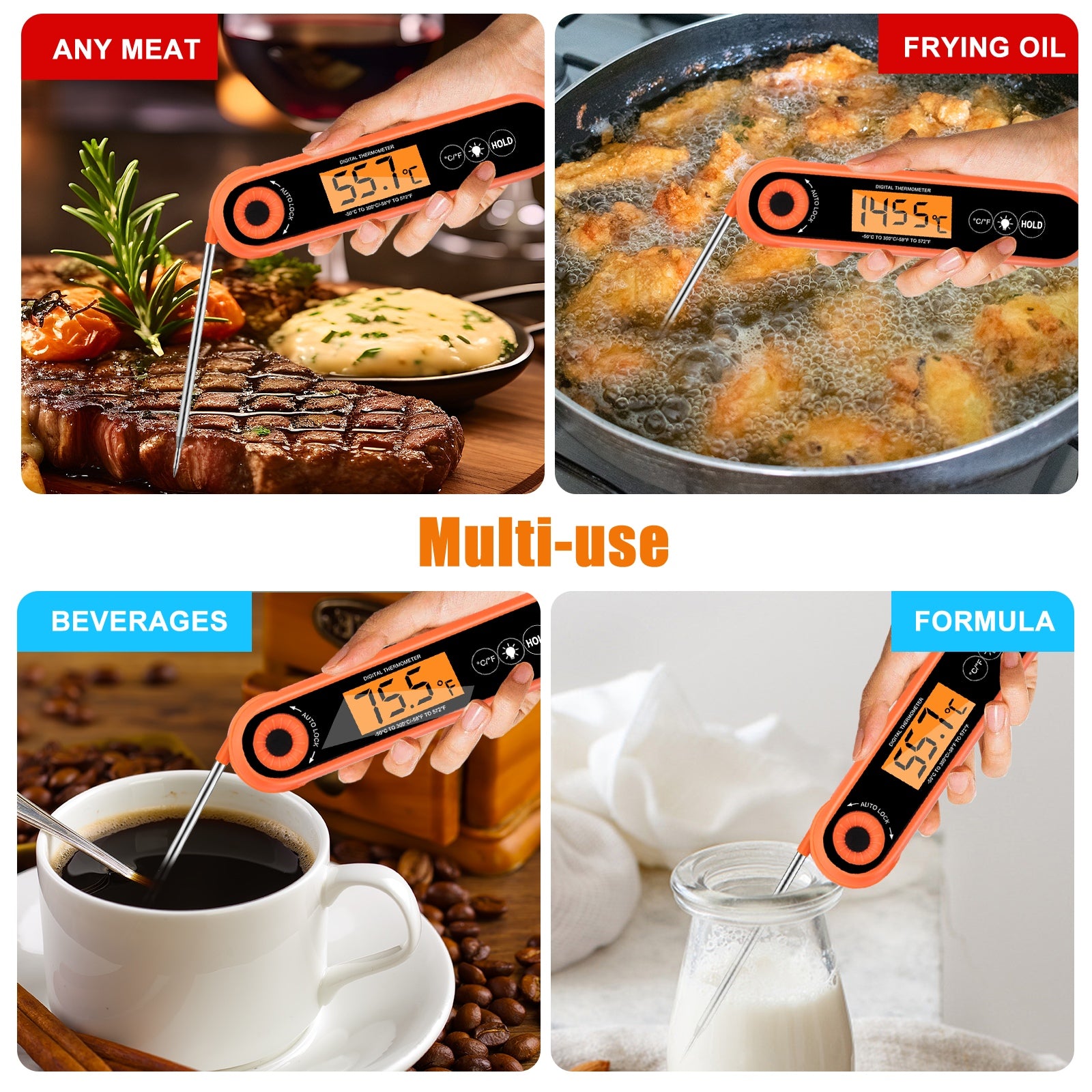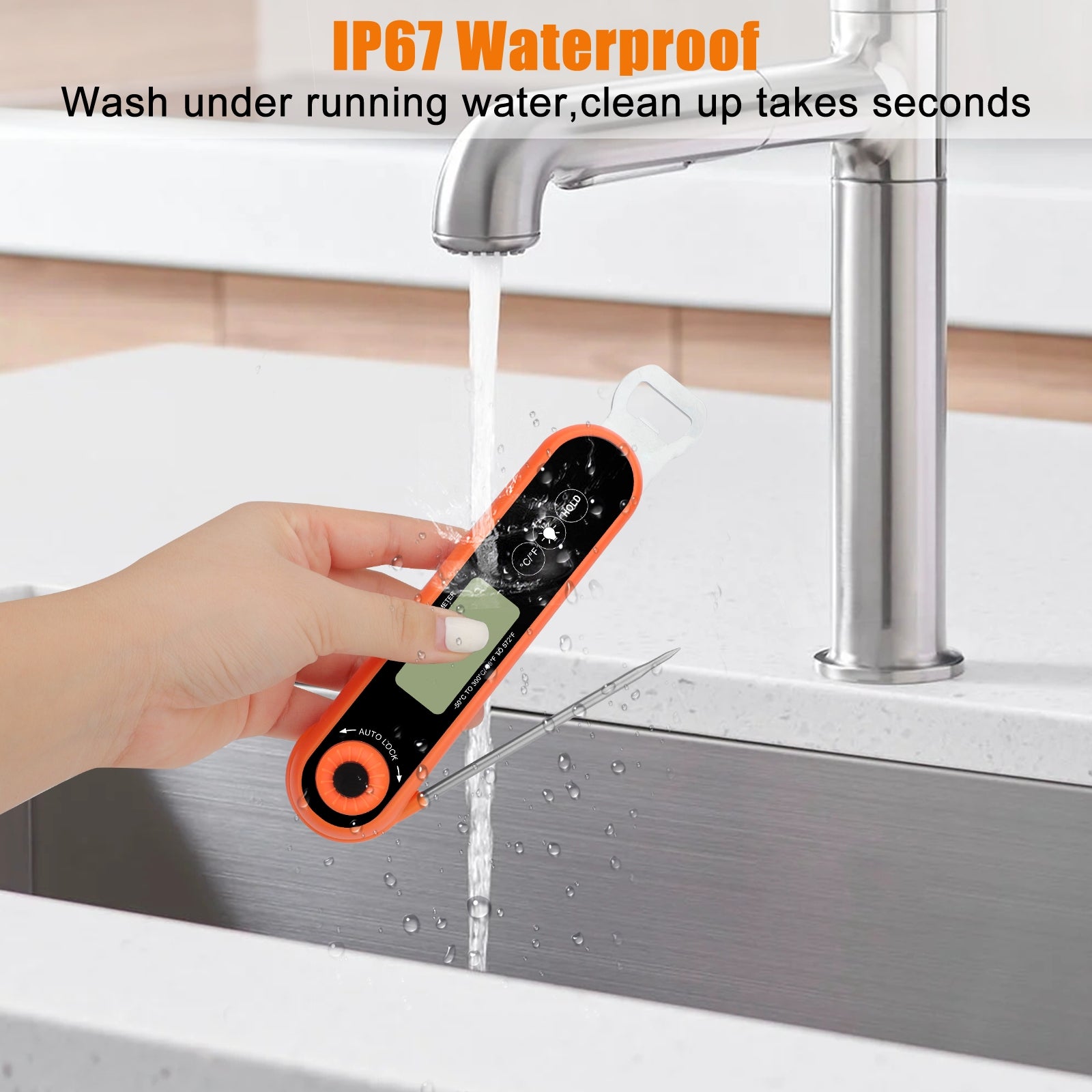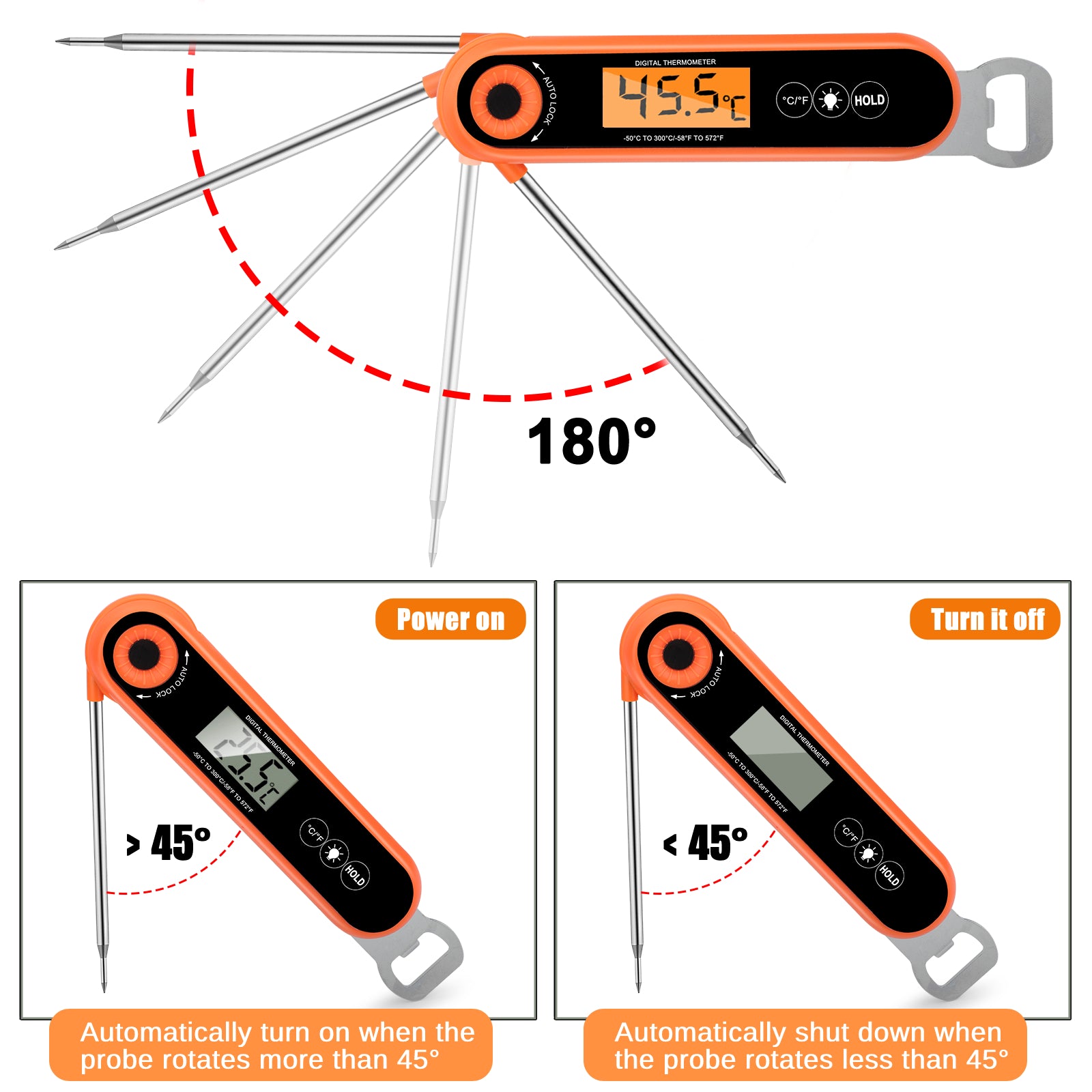 Instant Read Digital Food Thermometer - Foldable Food-Grade Stainless Steel Probe with Bottle Opener for Kitchen, BBQ, Grill (Orange /Black)