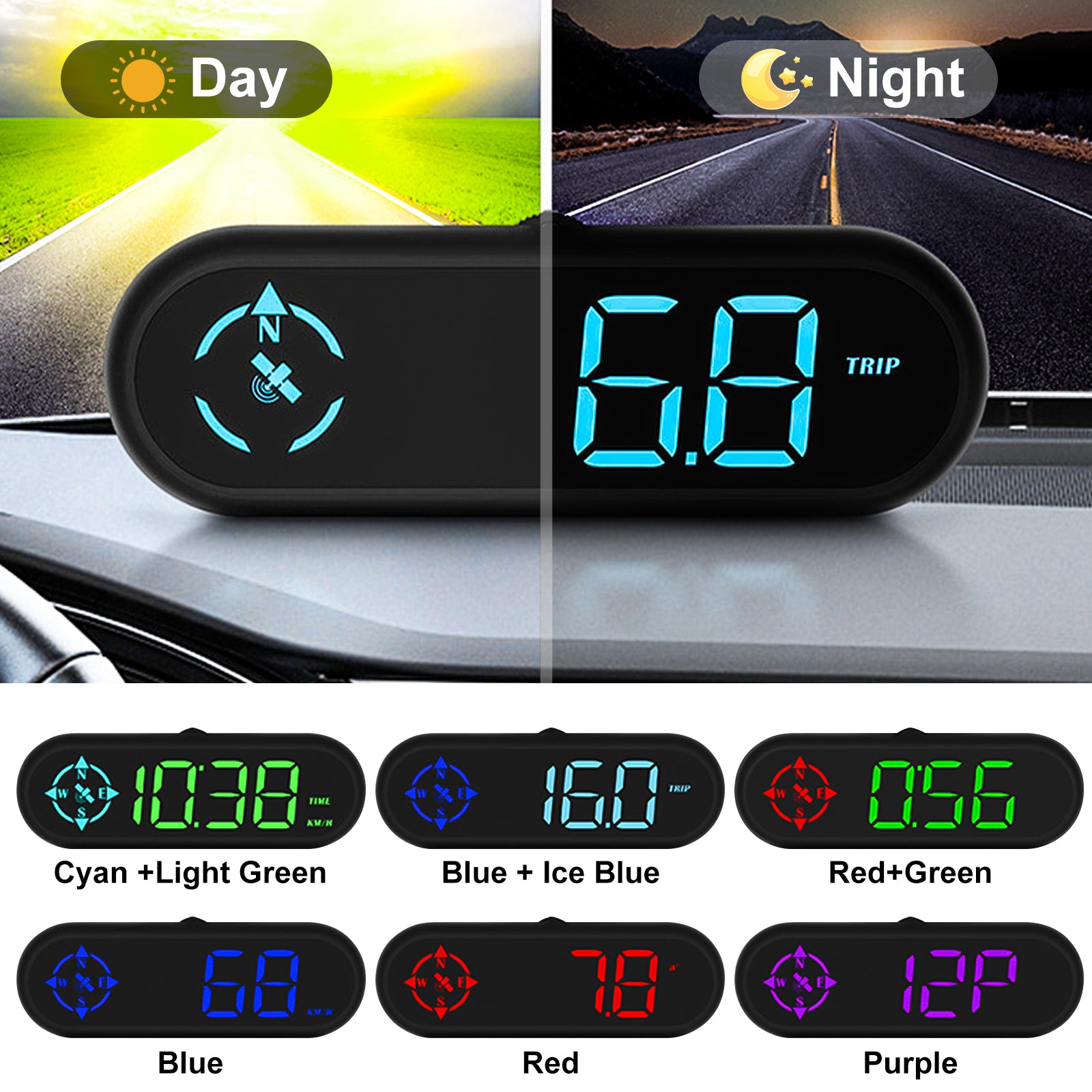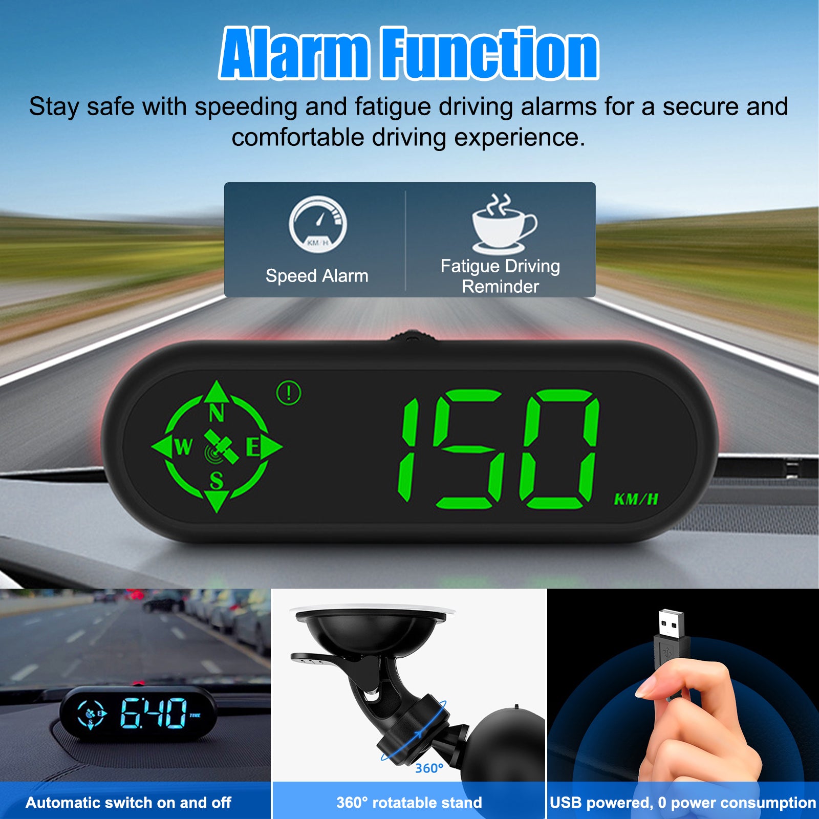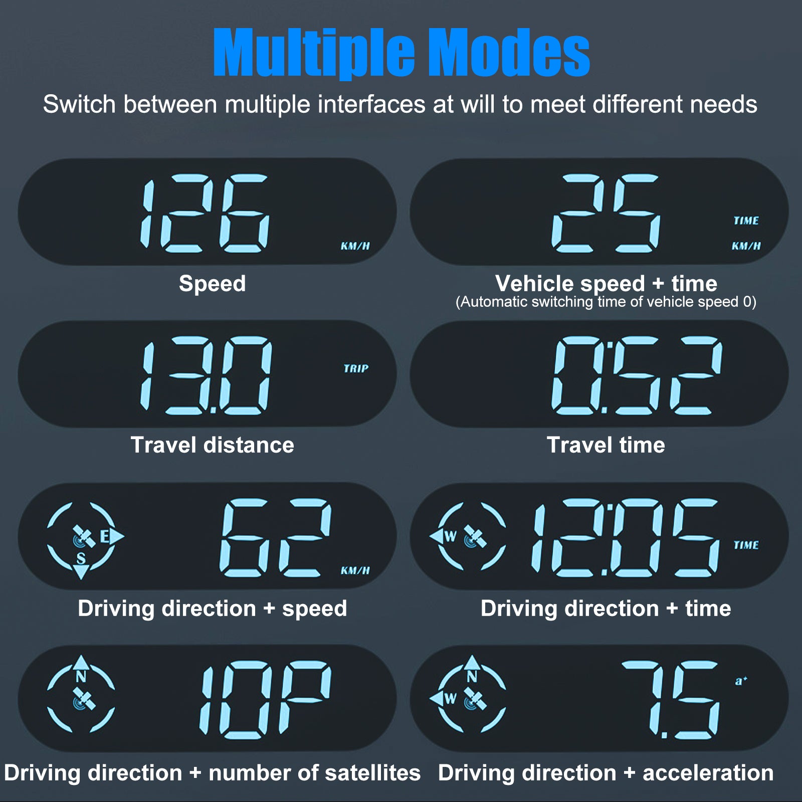 Our multifunctional GPS Speedometer HUD is a cutting-edge head-up display designed to provide critical driving information right before your eyes. With a large, clear LED screen, you can effortlessly read your speed, driving time, direction, satellite count, and more. This device offers an 8-mode display that can be effortlessly toggled with a single button for optimal convenience. Enhance your safety with built-in alarms that alert you to speeding and signs of fatigue. The multi-color font option allows you to customize the display for clarity and reduced visual fatigue, ensuring you stay focused on the road.