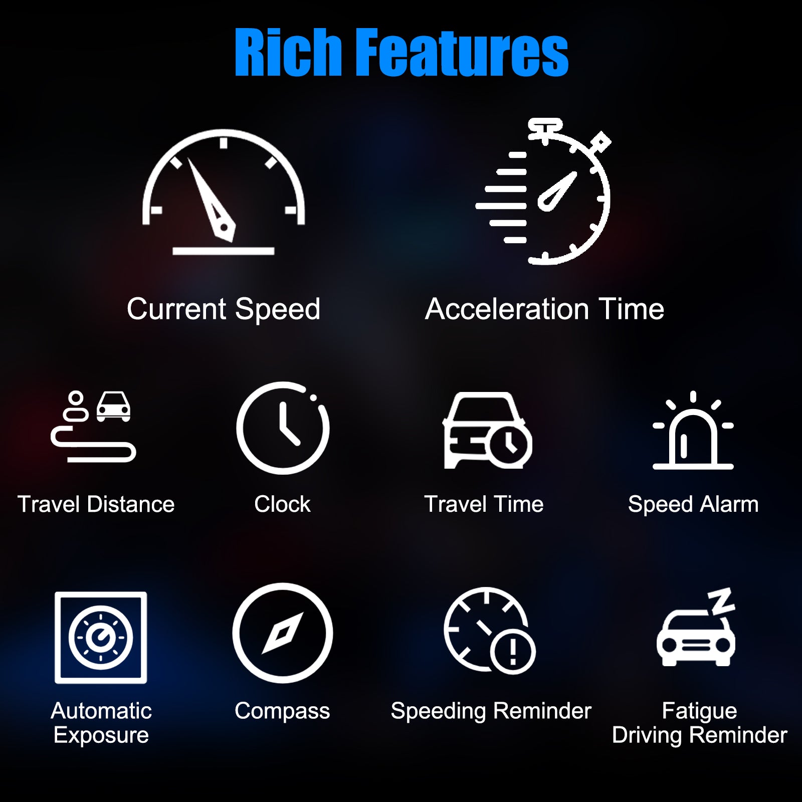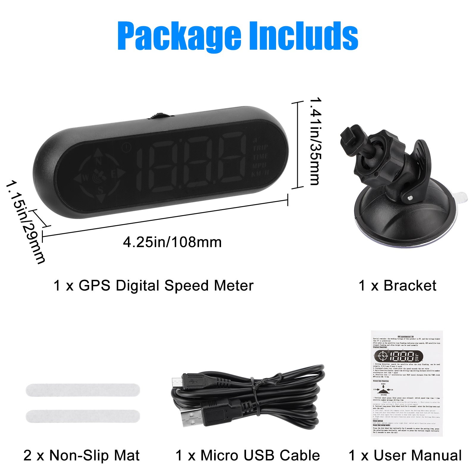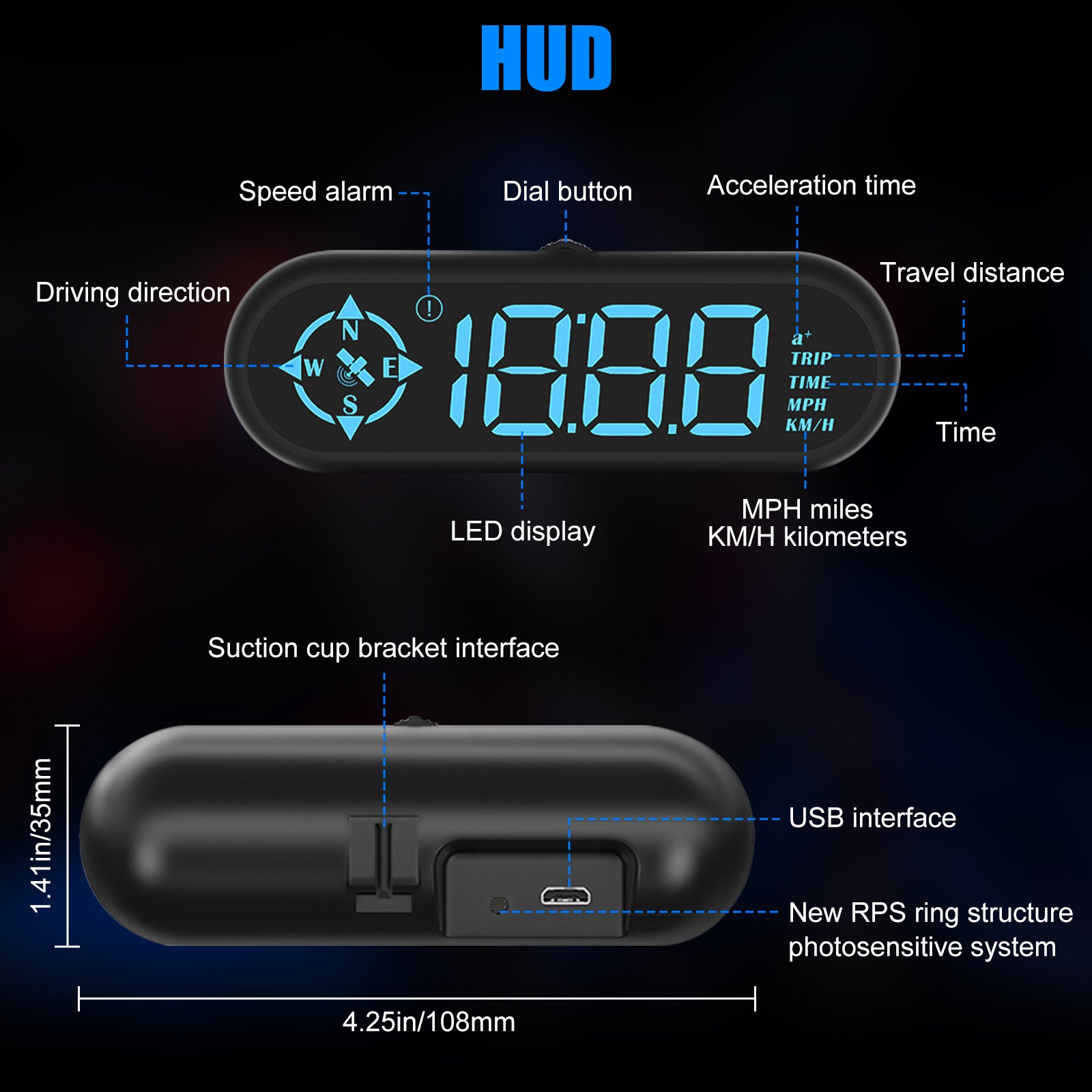Our multifunctional GPS Speedometer HUD is a cutting-edge head-up display designed to provide critical driving information right before your eyes. With a large, clear LED screen, you can effortlessly read your speed, driving time, direction, satellite count, and more. This device offers an 8-mode display that can be effortlessly toggled with a single button for optimal convenience. Enhance your safety with built-in alarms that alert you to speeding and signs of fatigue. The multi-color font option allows you to customize the display for clarity and reduced visual fatigue, ensuring you stay focused on the road.
