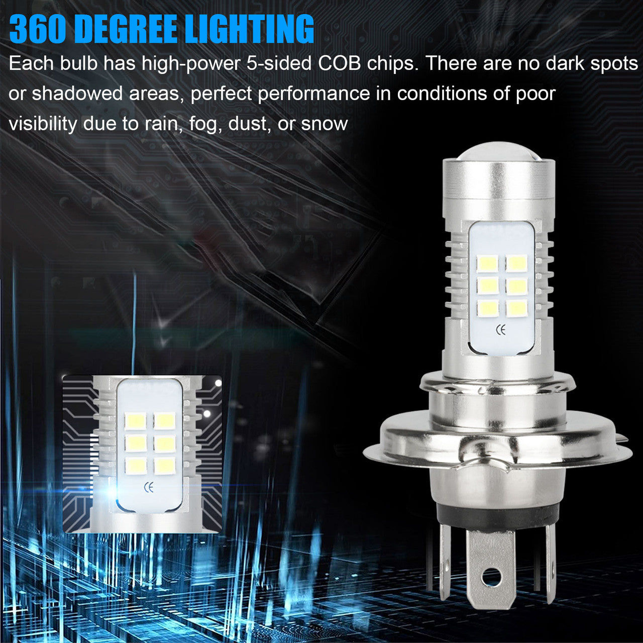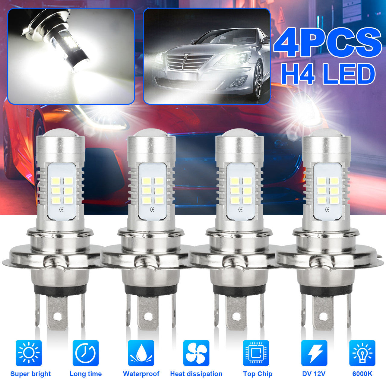 H4 9003 HB2 6000K Super White 110W LED Headlight Fog Bulbs Kit High Low Beam, 4Pcs