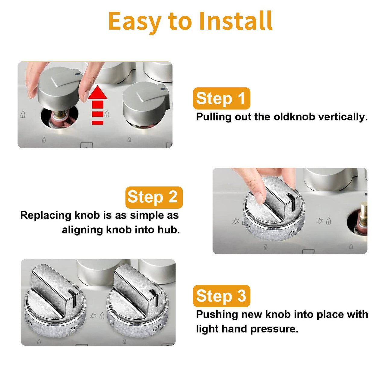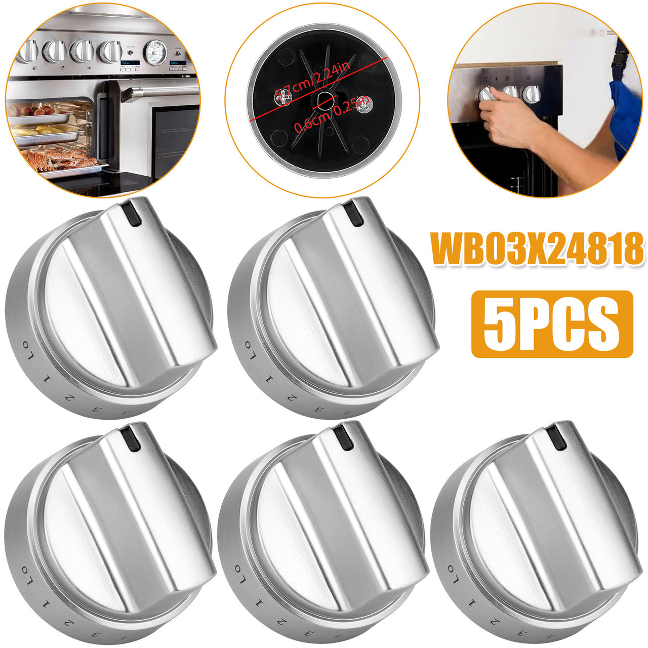 5PCS Gas Stove Knobs for GE Ranges - Durable Metal and ABS Plastic - Easy Installation