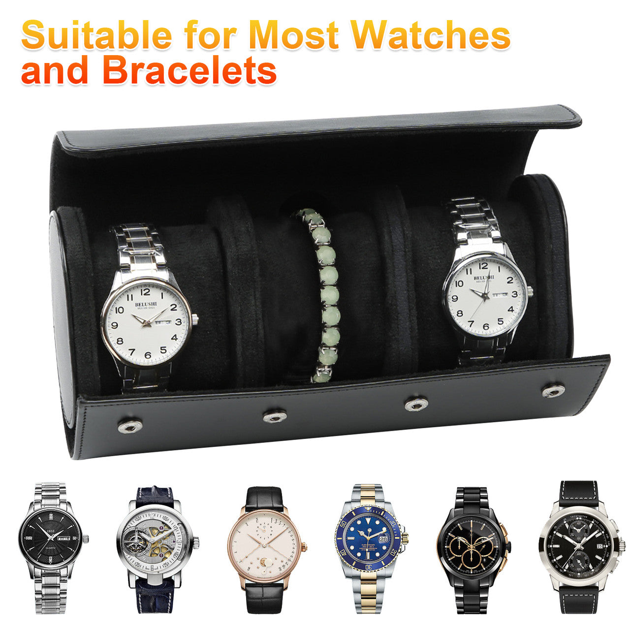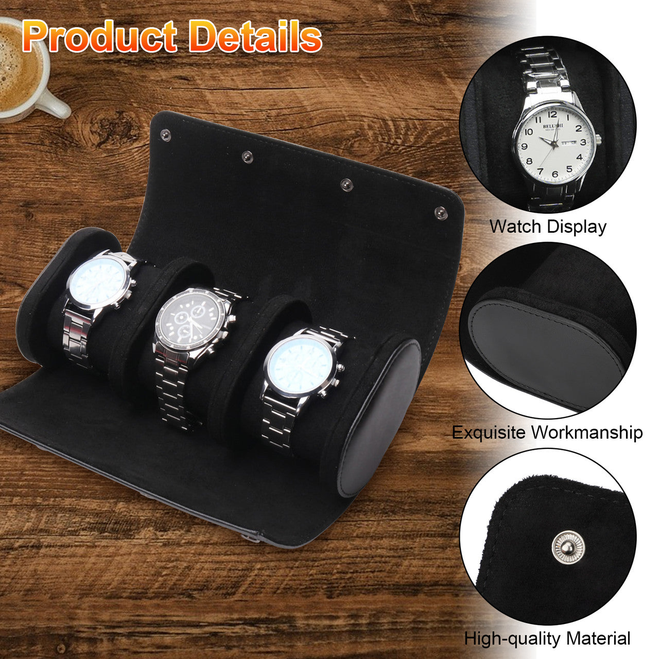 Keep your watches organized and protected with this retro leather watch box. It features 3 independent watch compartments, providing separation and damage protection for your watches. The black leather design gives it a vintage look, while the high-quality hand-made PU leather ensures durability and a delicate touch. This watch box is suitable for home display, travel, and everyday storage, making it a versatile option. It also serves as a great gift for your relatives and friends who appreciate fine watches.