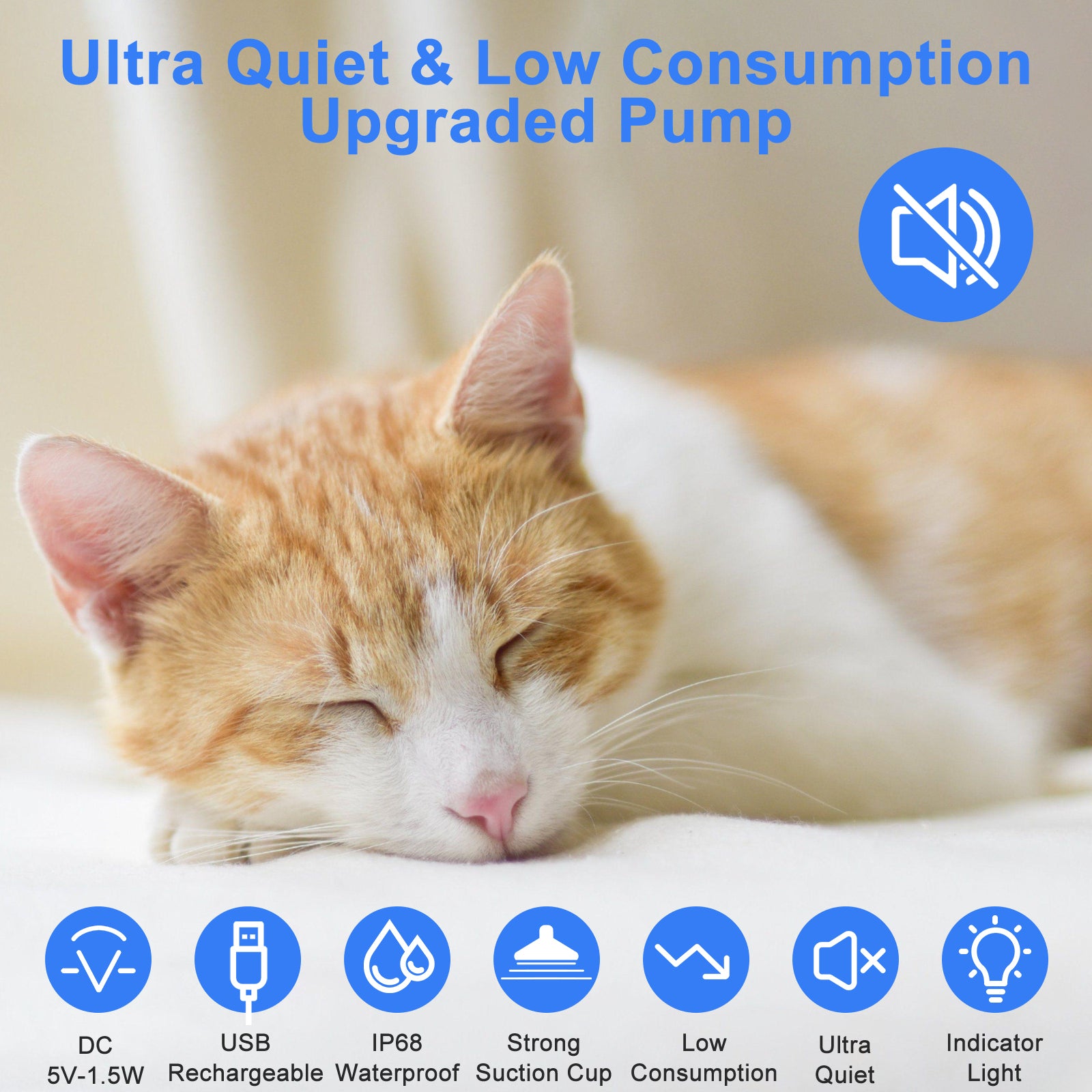 Keep your furry friend's thirst quenched with ease using our Intelligent Electric Pet Water Dispenser Pump. With its sleek blue design, this replacement pump integrates seamlessly into your existing cat water fountain. Equipped with LED lights that signal operation status and water levels, the pump offers both functionality and peace of mind. The ultra-quiet operation ensures a tranquil environment, while the USB rechargeable feature adds convenience. Installation is a breeze with strong suction cups, and the pump's low power consumption coupled with automatic shut-off during water shortage, underlines its safety and efficiency.