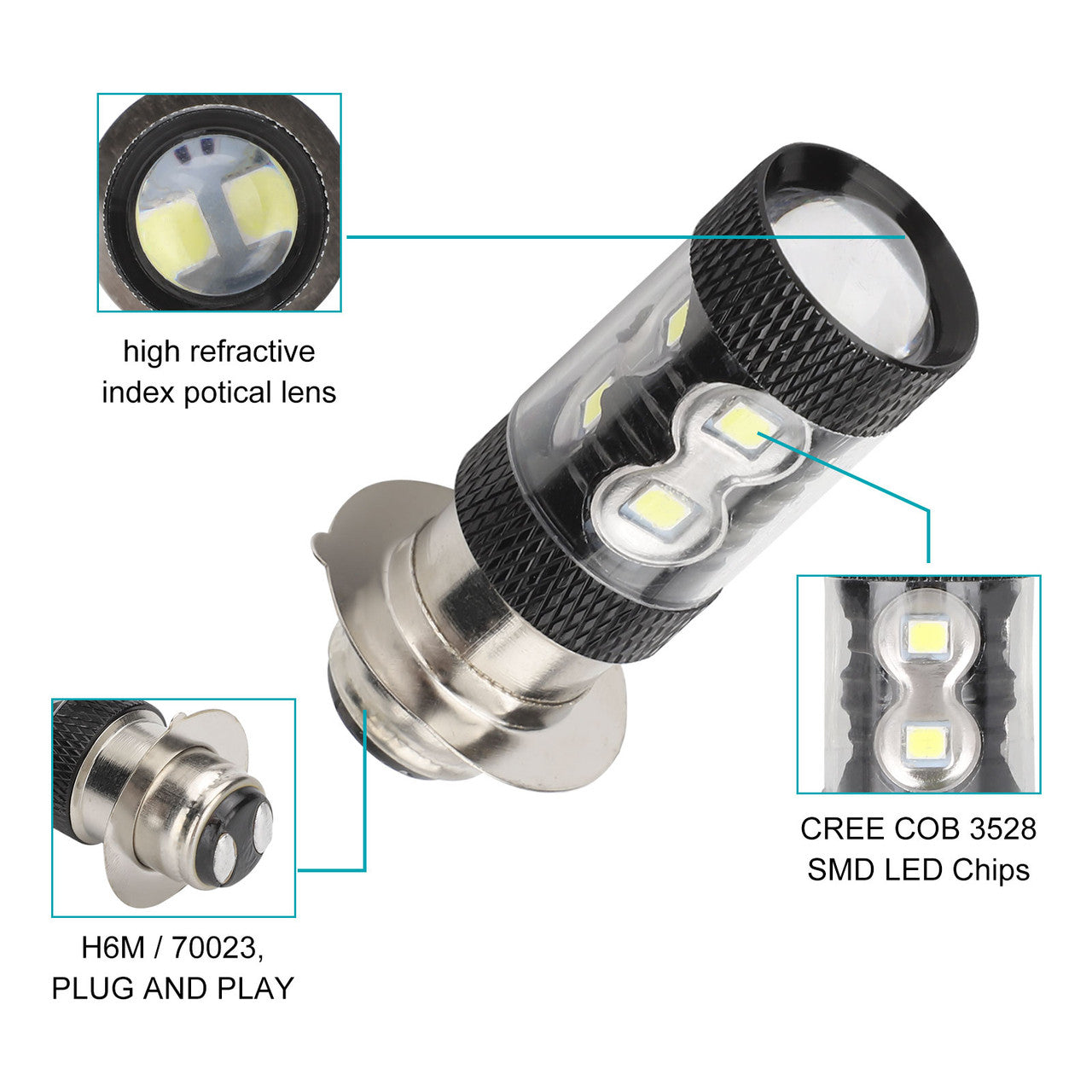 LED Headlight Bulb for Yamaha, 2 Pcs 6000K Super White H6M 70023 LED Bulbs Replacement for Headlight Daytime Running Light - Compatible with Yamaha Banshee Blaster Bruin Raptor Rhino