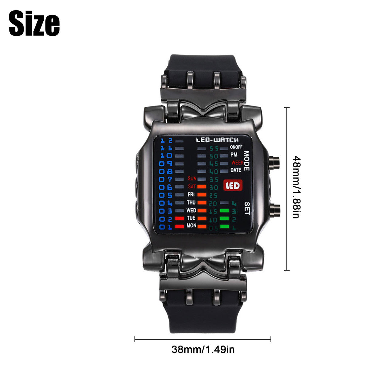 LED Light Color: Red, yellow, blue and green Low power consumption Time, Date, Week display