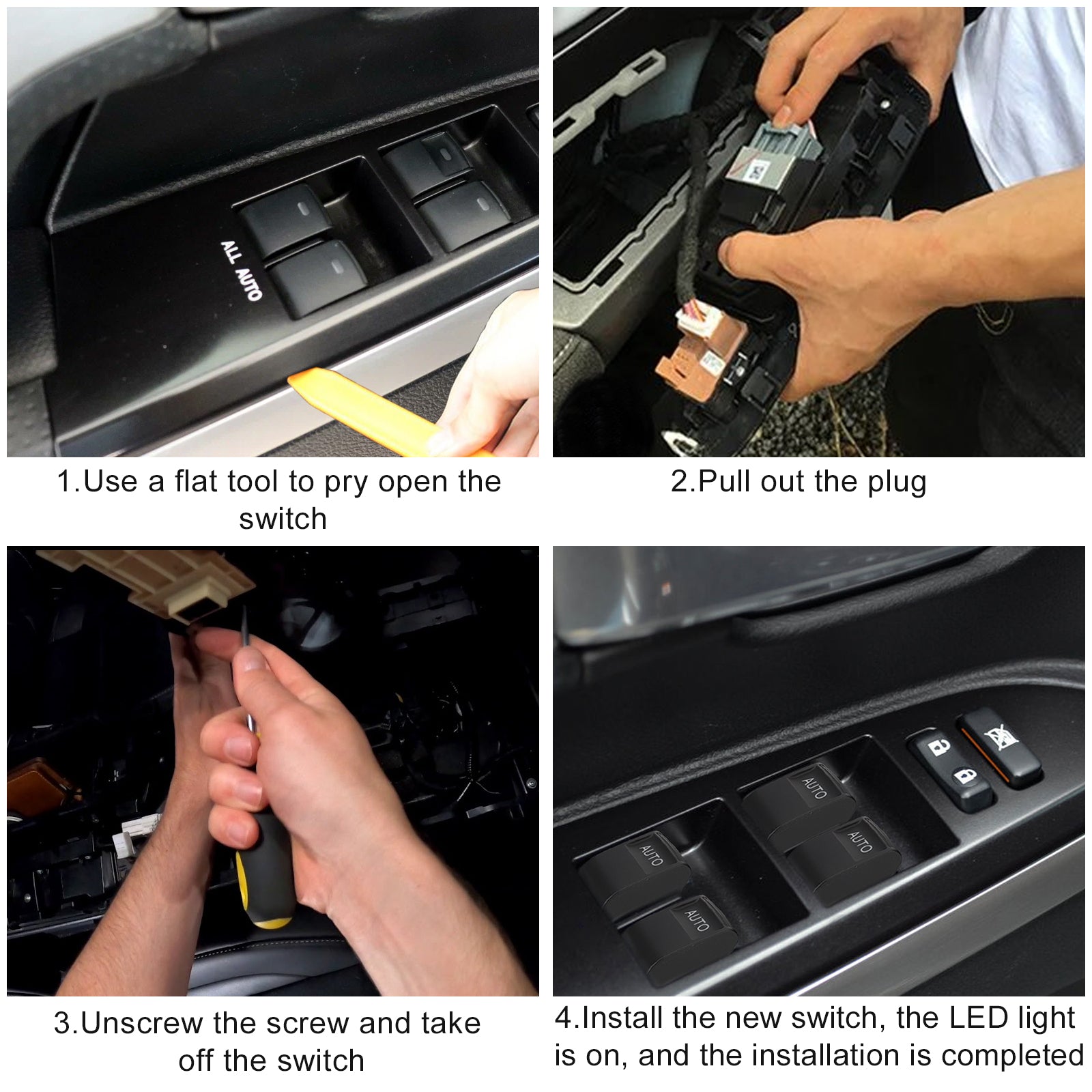Upgrade your car's window control with our high-quality LED Power Window Switches. Crafted from durable ABS materials, they ensure stability and longevity. Featuring built-in illumination, these switches offer easy access even in the dark, providing auto up and down window control for a convenient driving experience.