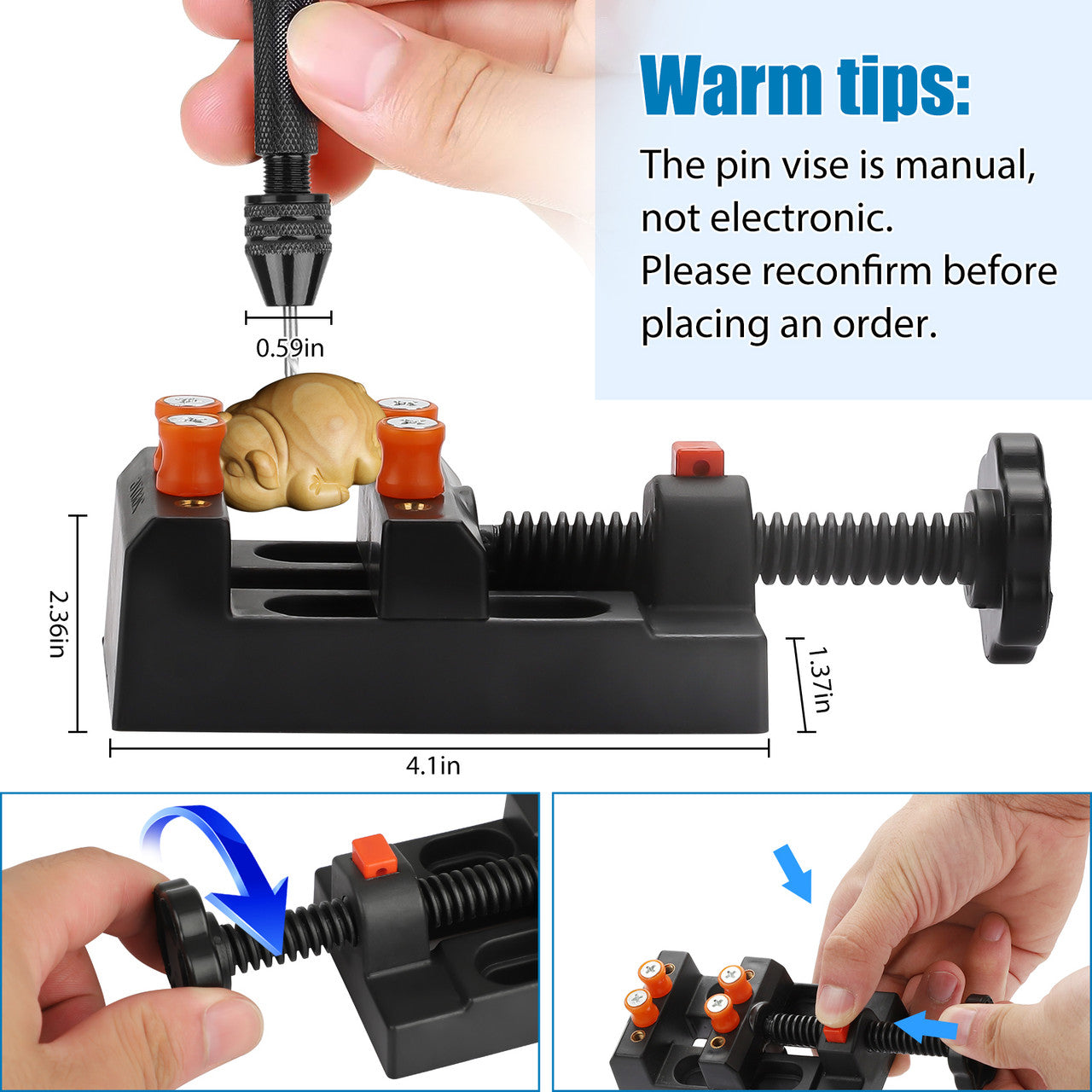 Pin Vise: Approx. 3.54 x 0.6 inches/ 9 x 1.4 cm