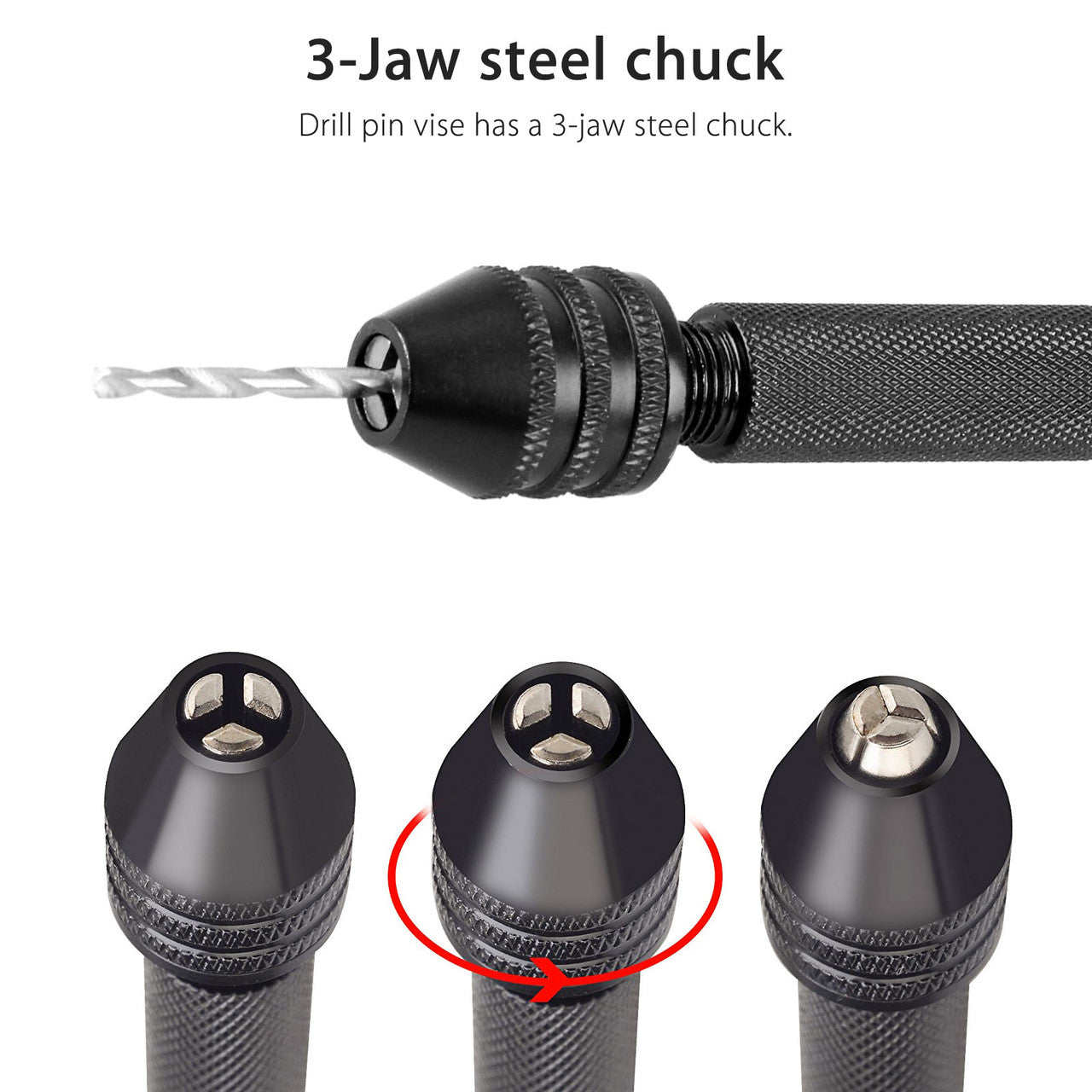 ✅Drill pin vise has a 3-jaw steel chuck, chuck capacity 0.2 - 3.4 mm (1/ 64 - 9/ 64 inches).