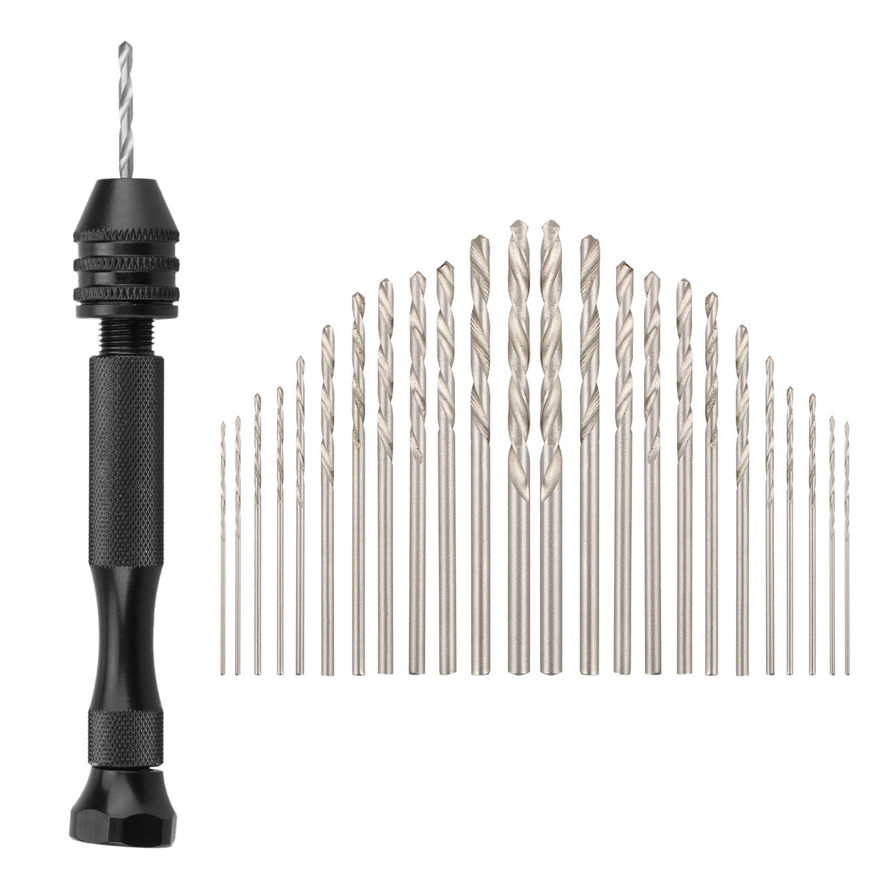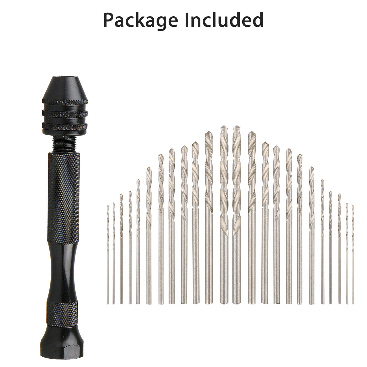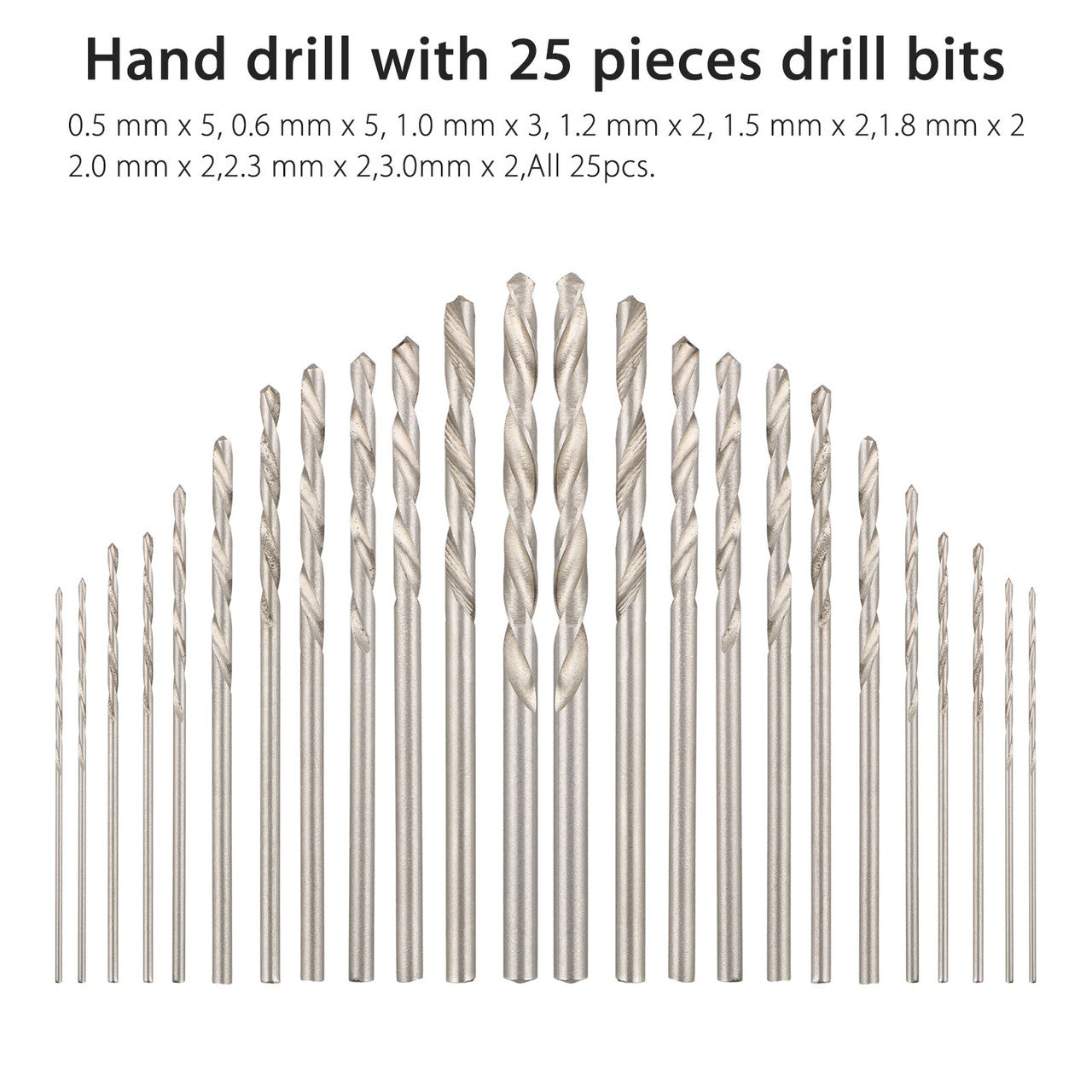 ✅Hand drill with 25 pieces drill bits: 0.5 mm x 5, 0.6 mm x 5, 1.0 mm x 3, 1.2 mm x 2, 1.5 mm x 2,1.8 mm x 2 2.0 mm x 2,2.3 mm x 2,3.0mm x 2,All 25pcs.