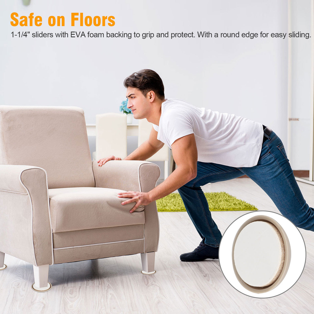 Let your furniture slide without the damage with our round self stick furniture sliders. Move your furniture around with ease without having to worry about any damage to the floor.