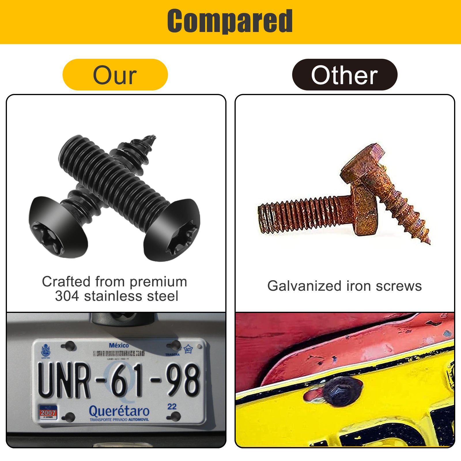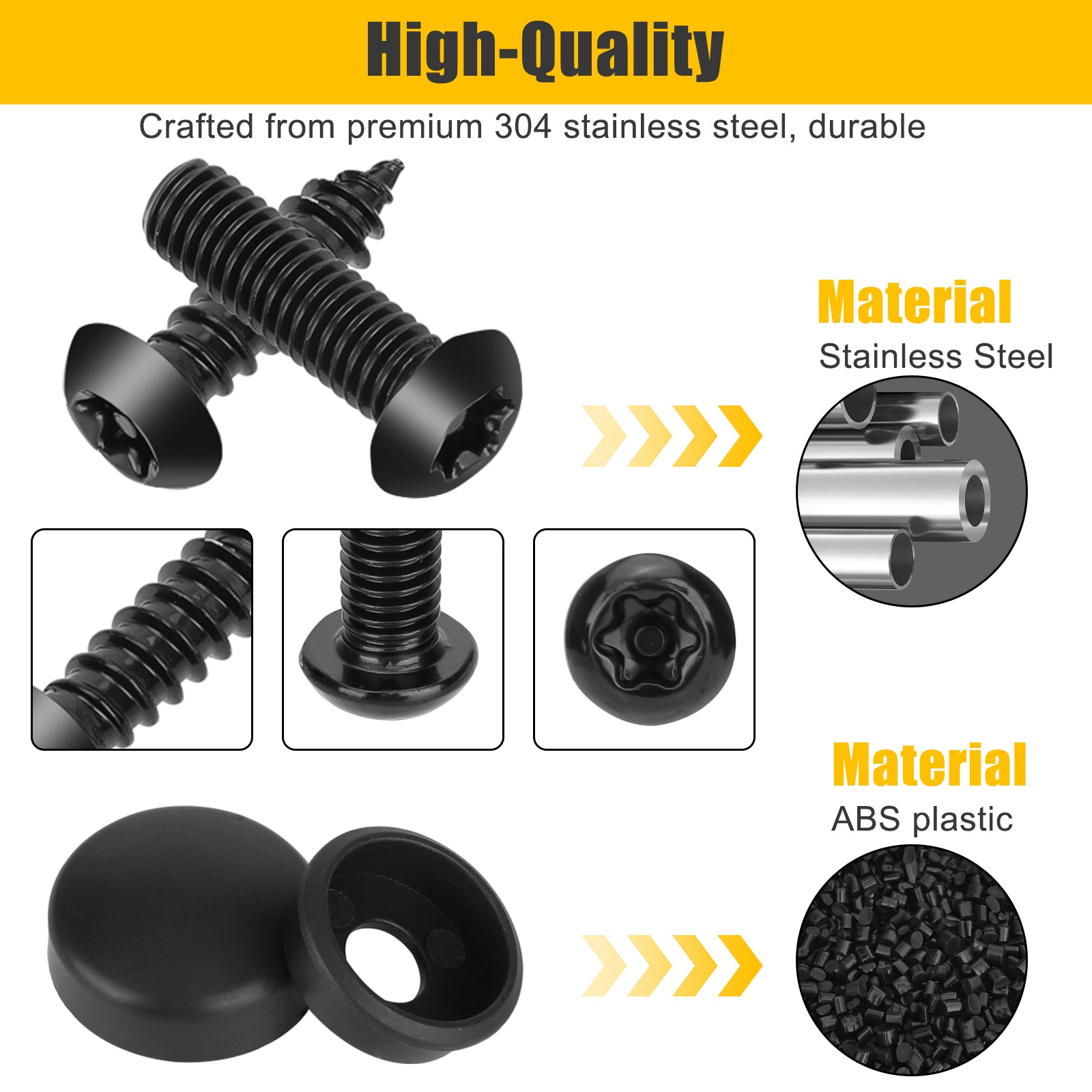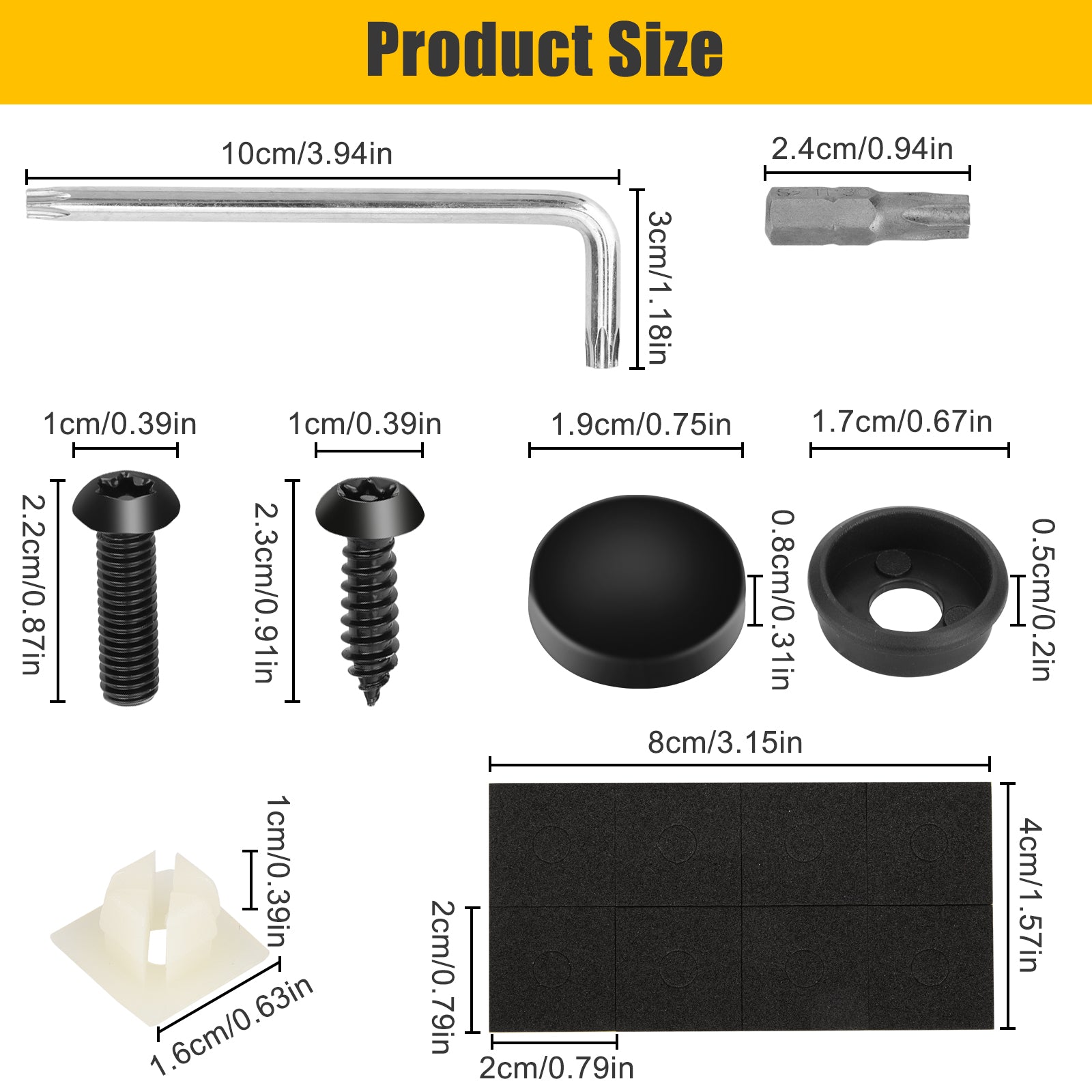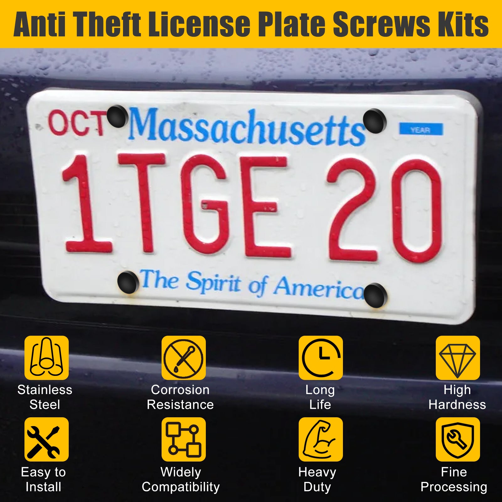 Elevate your vehicle's protection and appearance with our premium 304 stainless steel License Plate Screws Kits. Designed for long-term durability, these screws boast exceptional resistance to corrosion, rust, and harsh weather conditions. Featuring a unique anti-tamper design and noise-reducing black pads, this comprehensive set ensures secure installation and a quieter, smoother driving experience. Compatible with a wide range of vehicle models, this kit is essential for both protection and aesthetic enhancement.