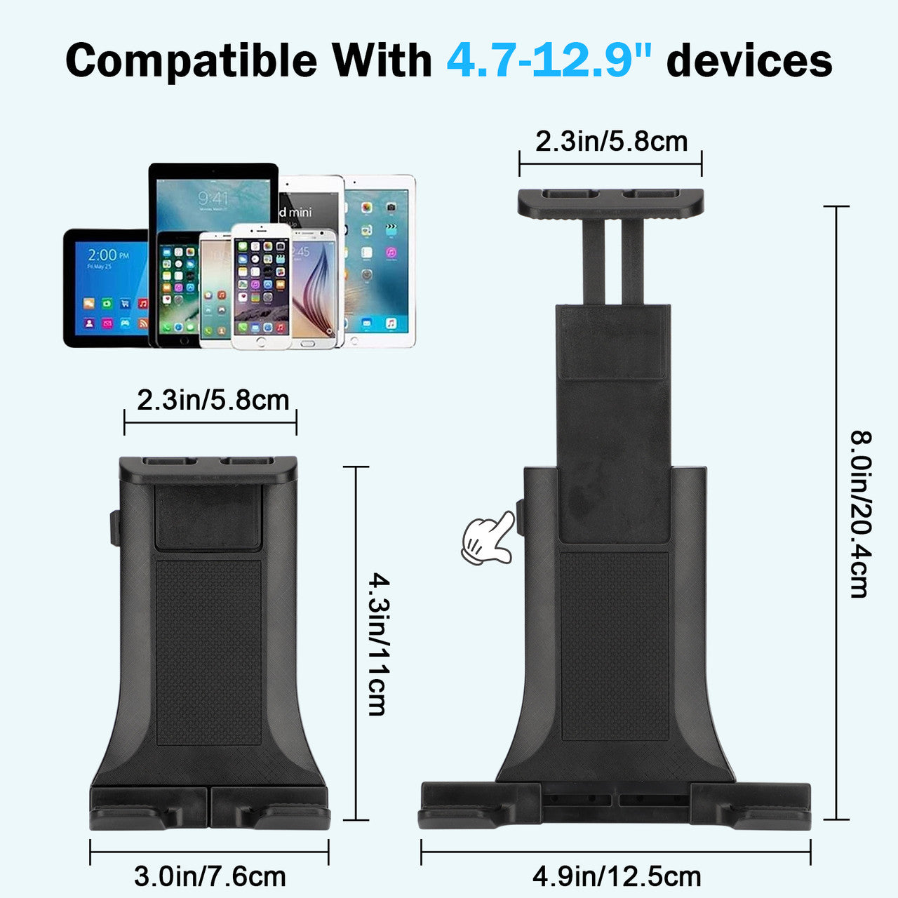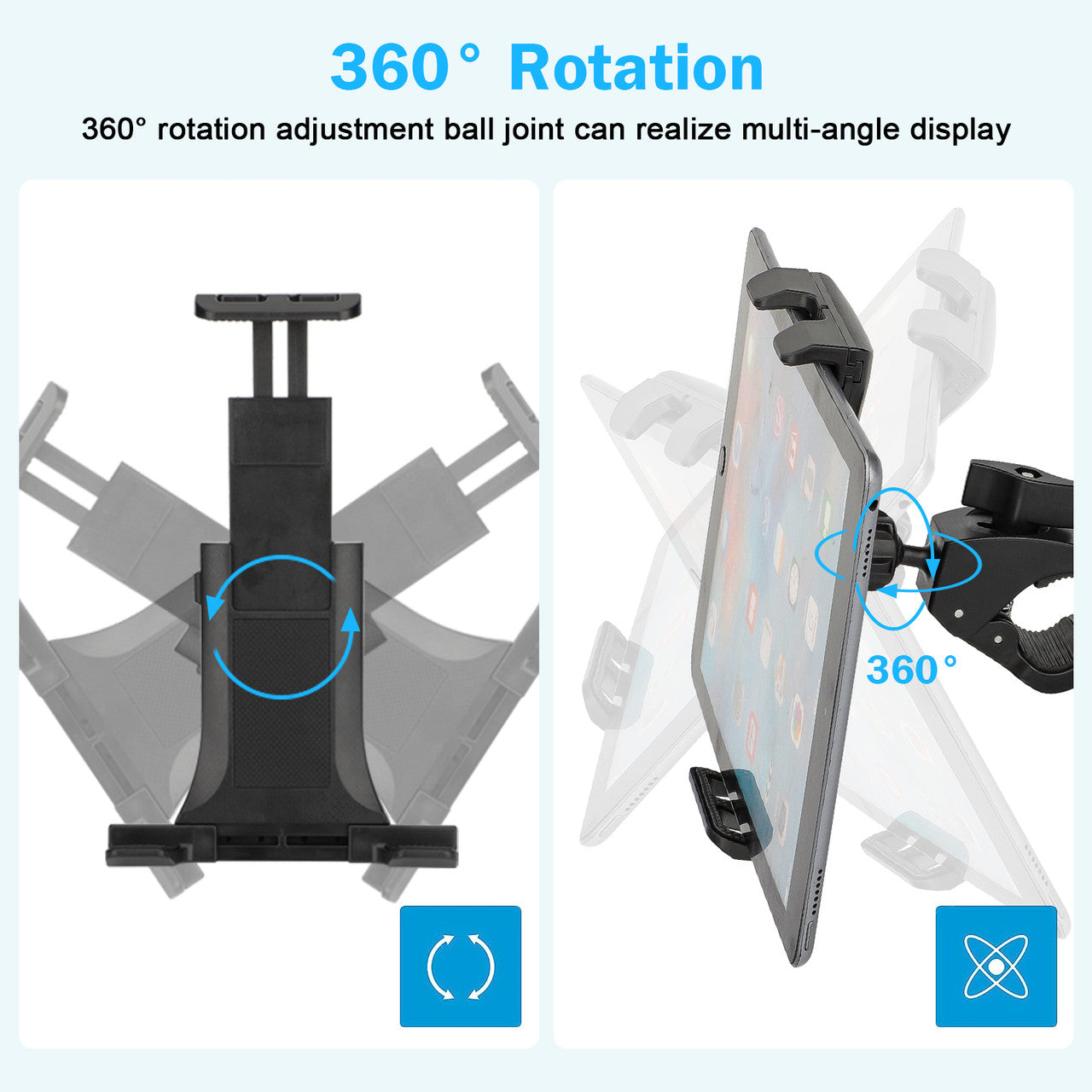 Securely mount your tablet or smartphone with this high-quality ABS plastic holder. 360° rotation and adjustable sizing make it perfect for exercise bikes, microphone stands, and more. Effortlessly switch between portrait and landscape modes.