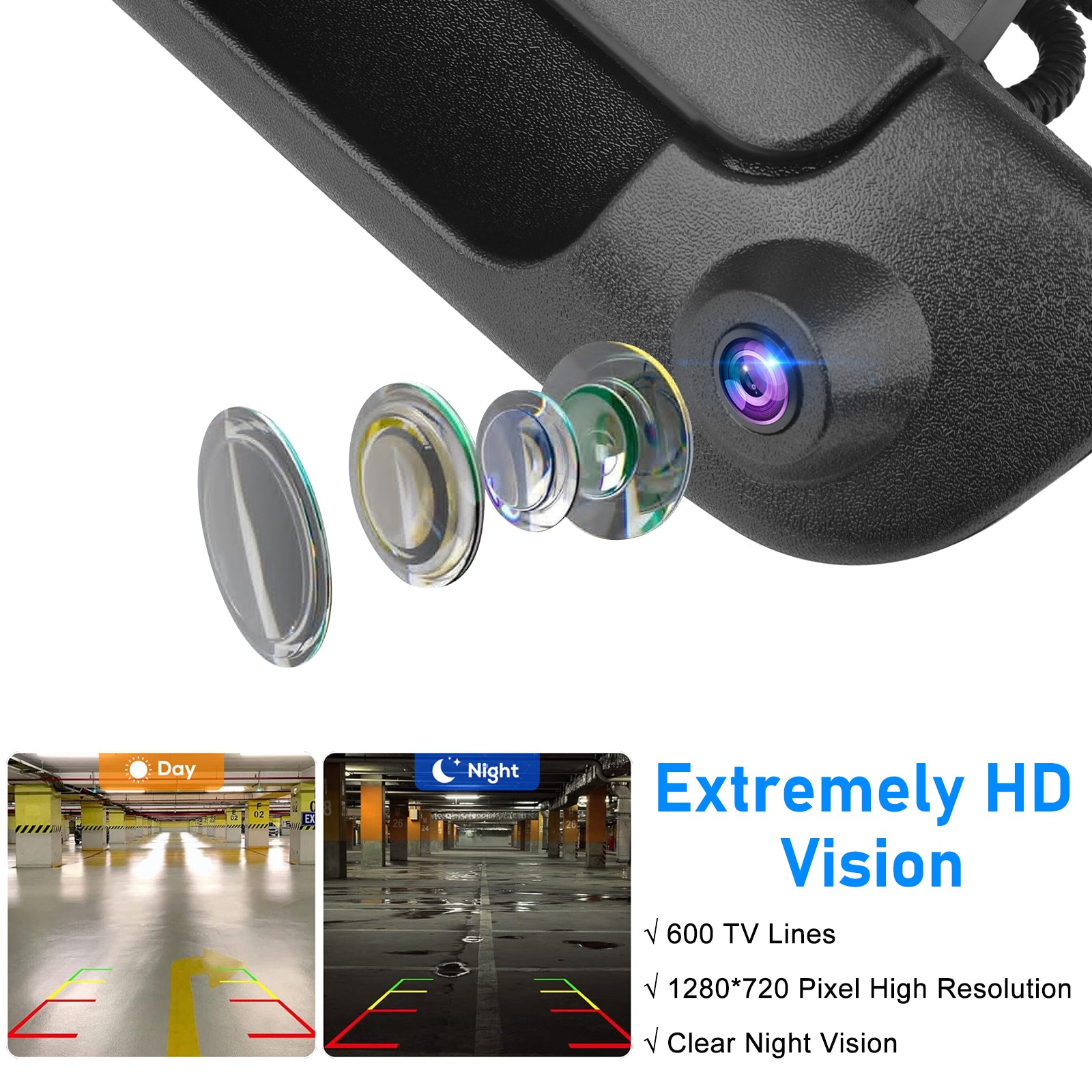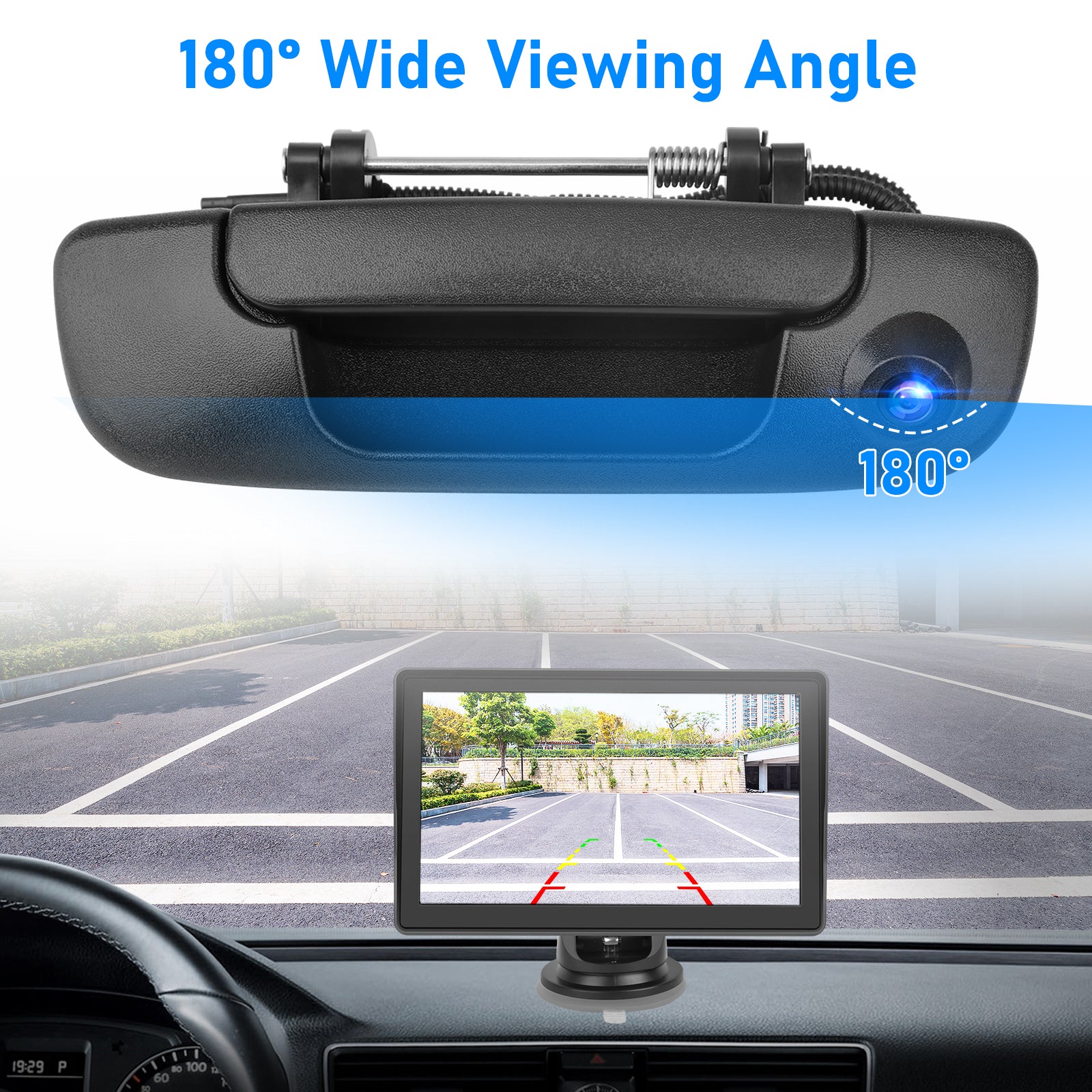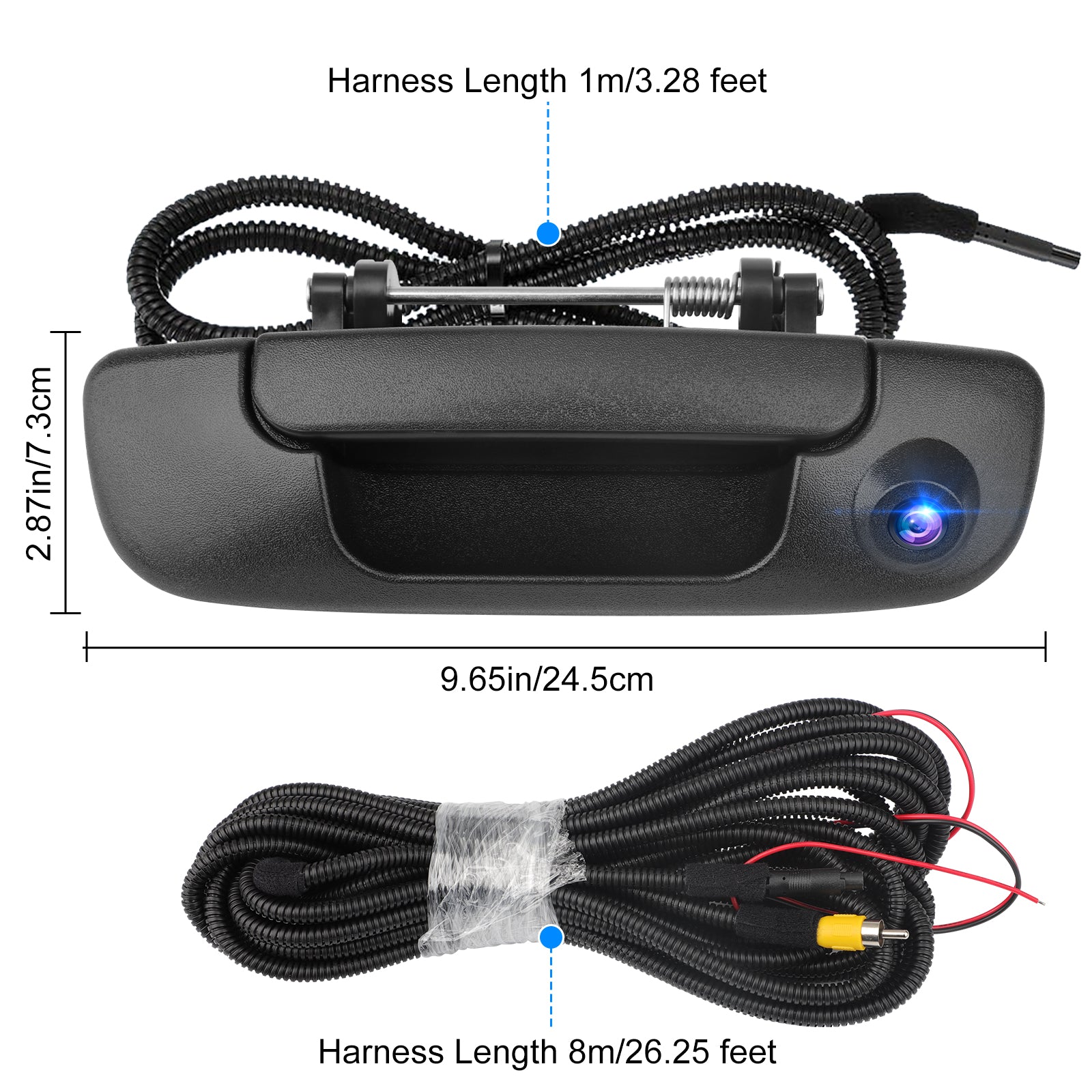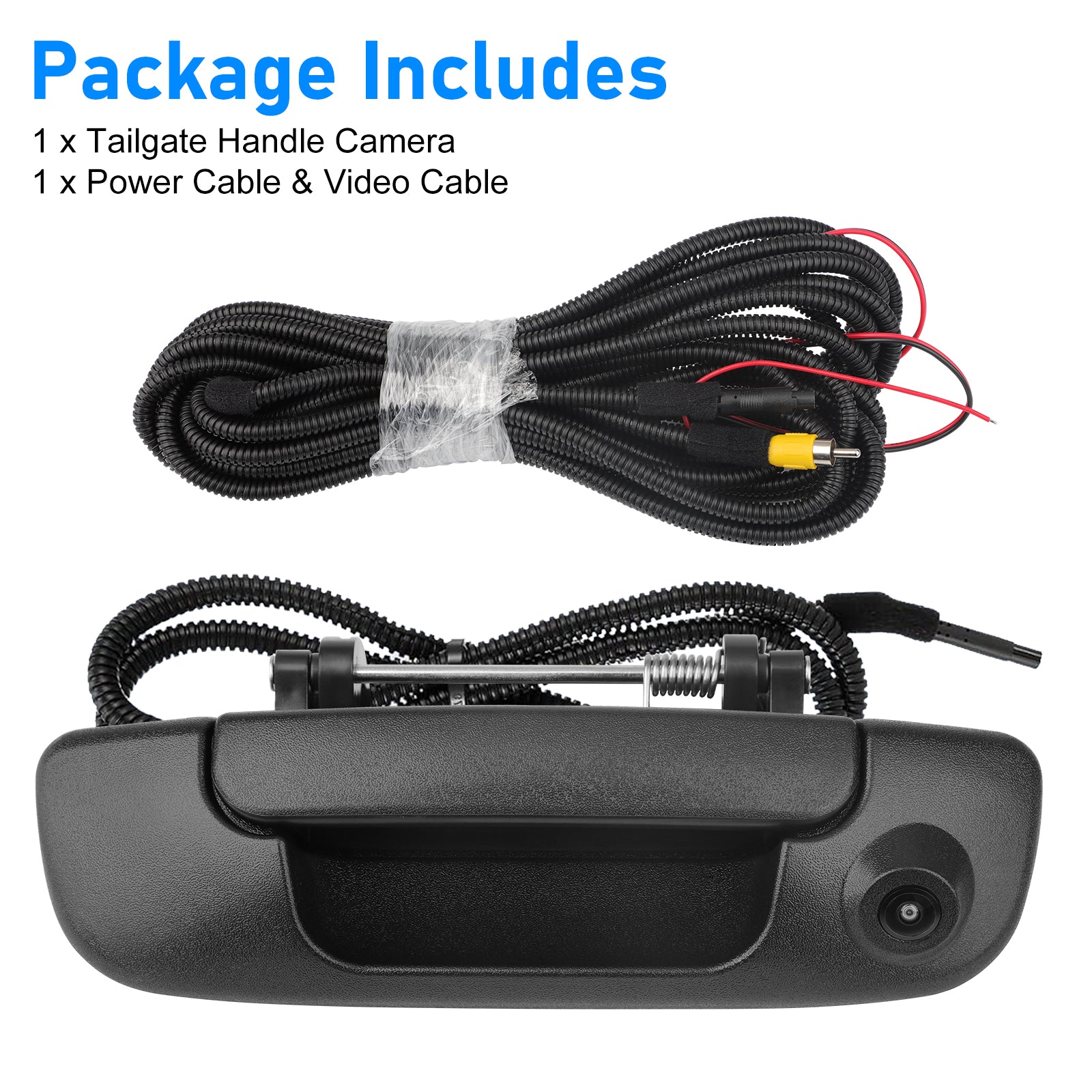 Tailgate Handle Backup Camera for 2002-2008 Dodge RAM 1500 2500 3500 - Tailgate Latch Door Handle, Aftermarket Reverse Rear View Camera, RCA Connector w/ 26 FT Extension Harness