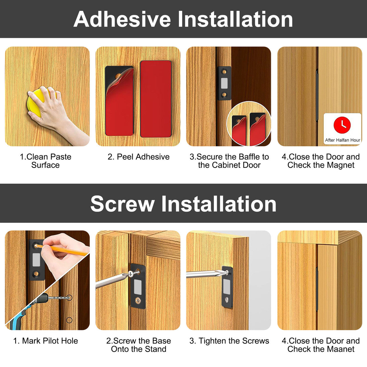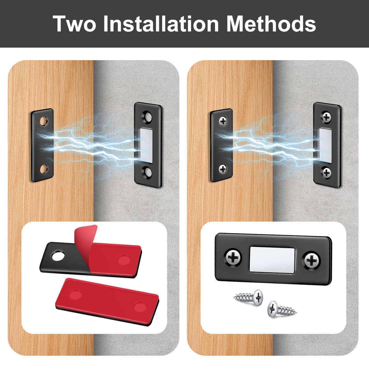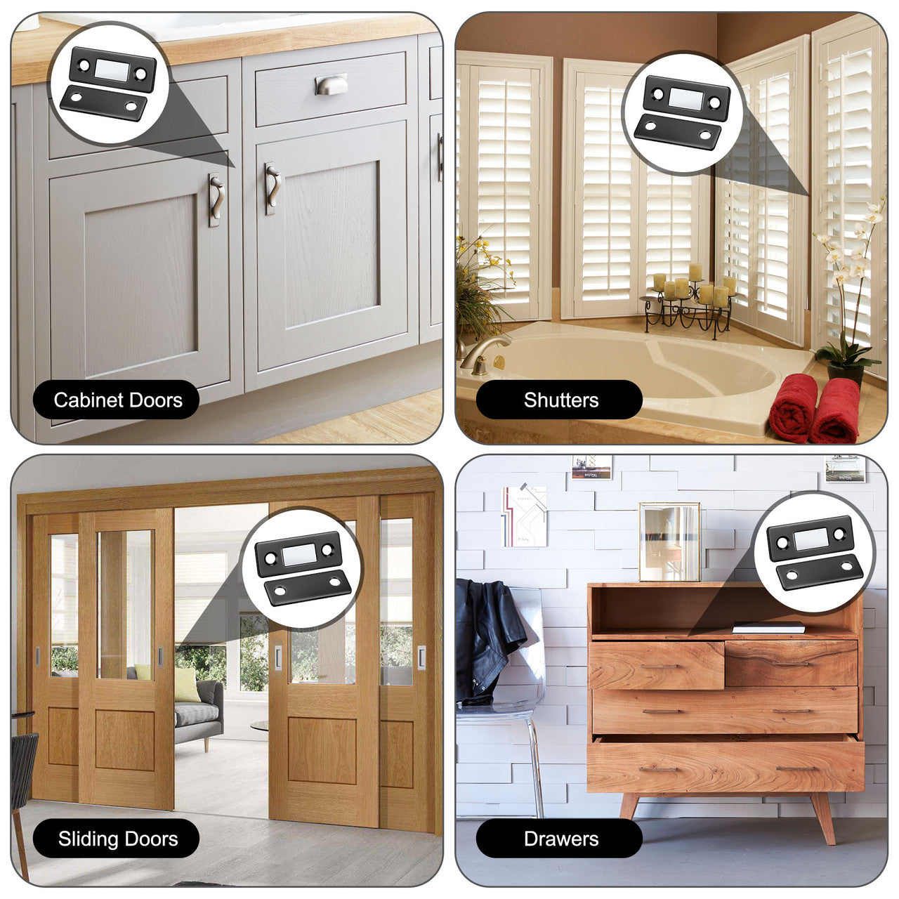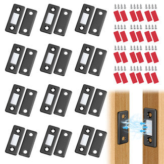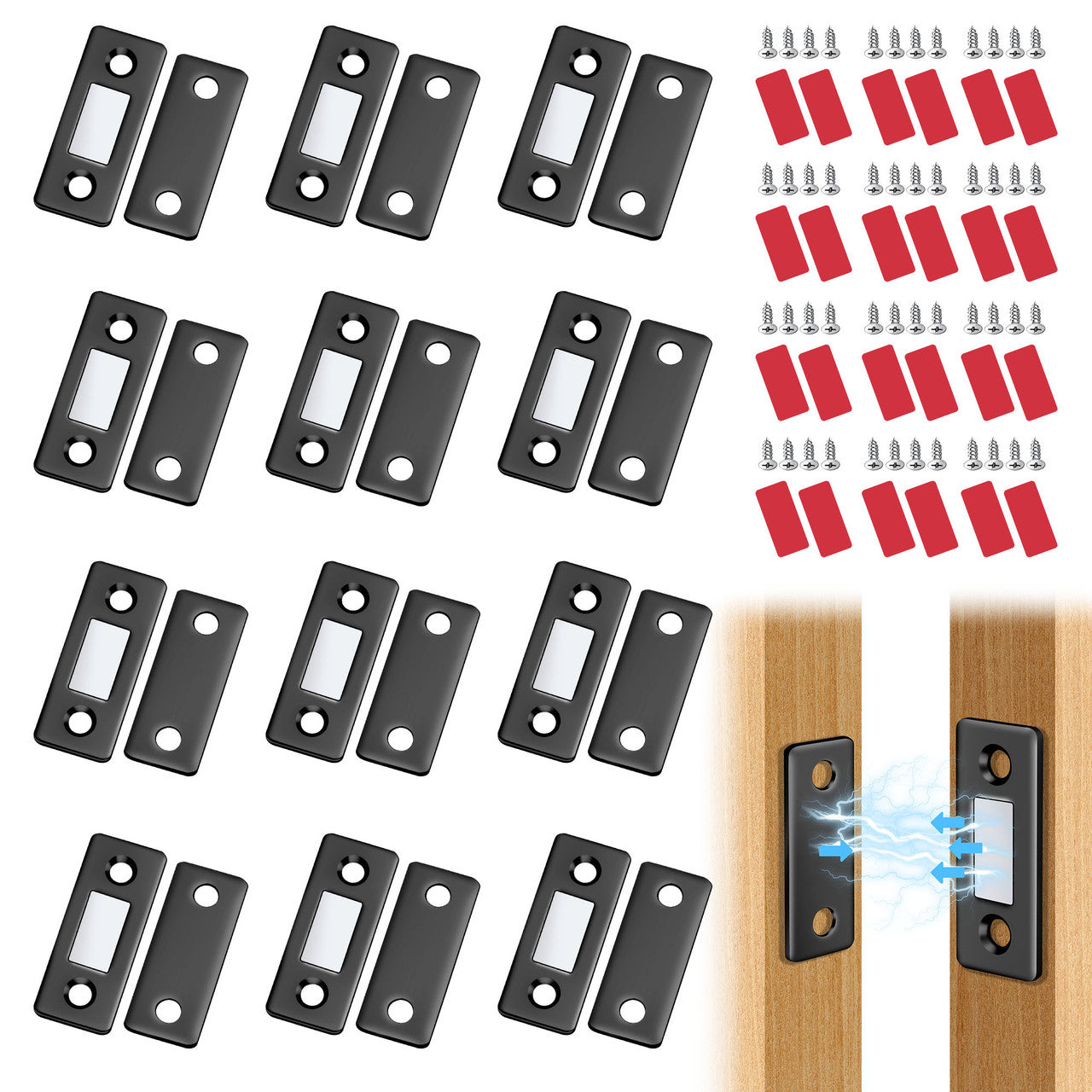 12pcs Ultra-Thin Magnetic Door Catch Set - Kitchen Cupboard Closet Closure - Strong Magnet, Adhesive Tape( Black)