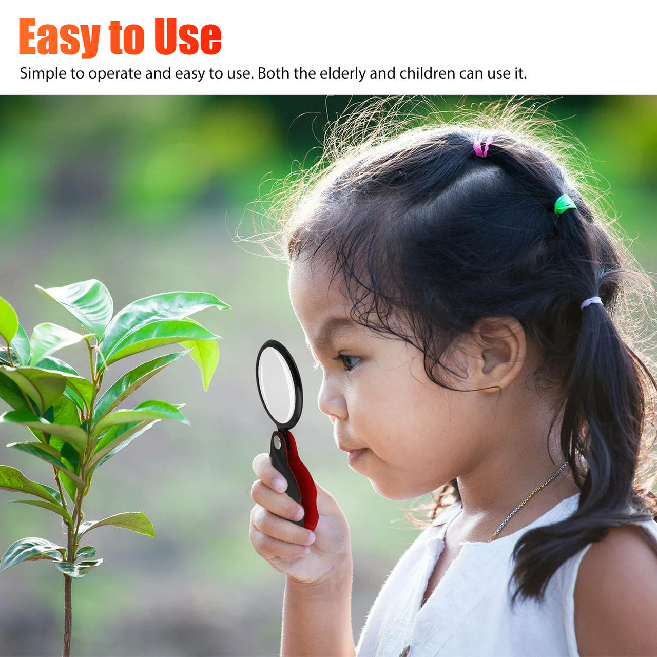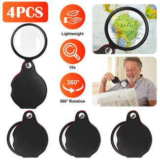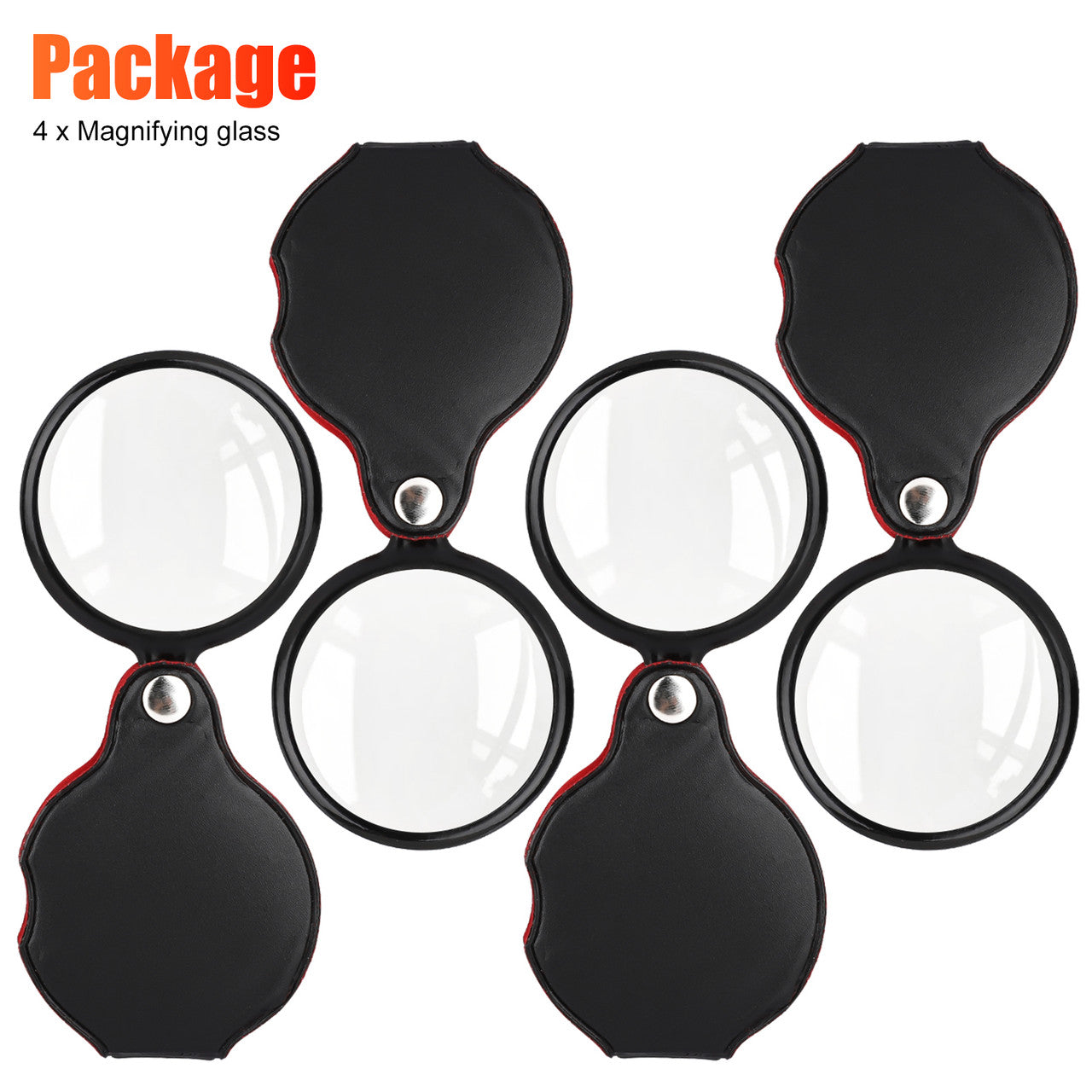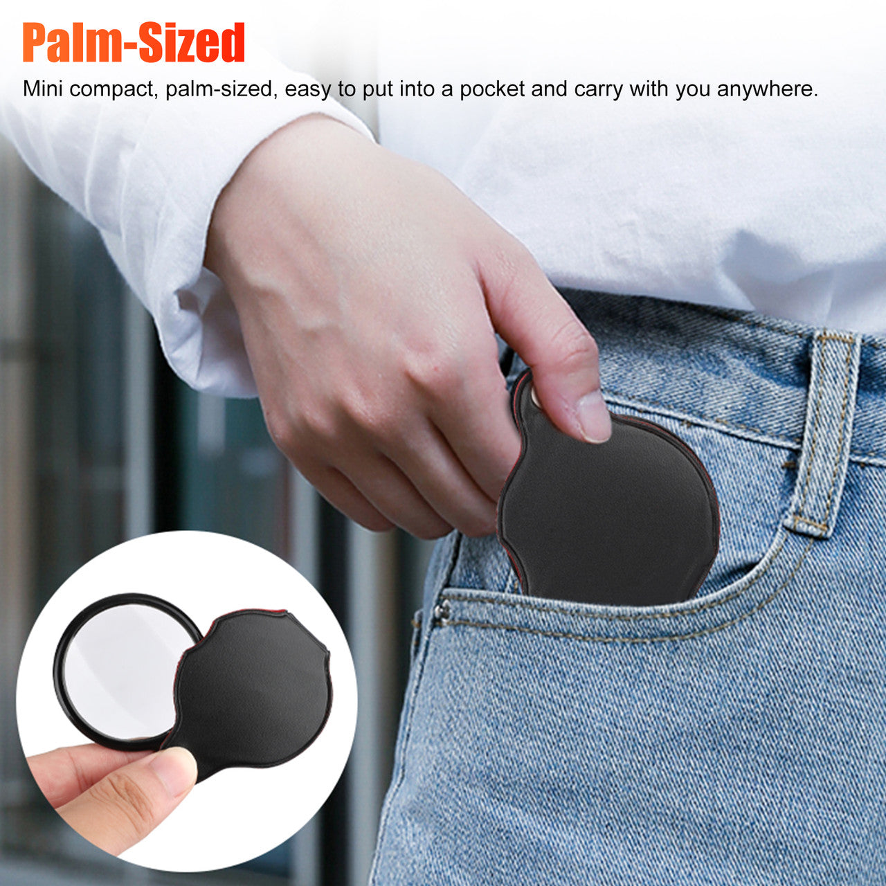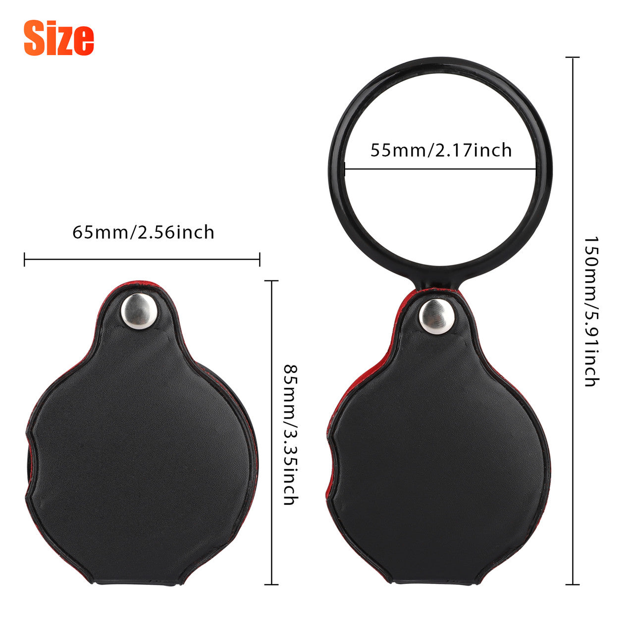 Product Features:● Durable: Handheld magnifying glass made of premium optical grade lens, durable faux leather. The leather cover always protects the glass lens well. Assured to put Magnifier into pockets or bags, with no scratching or damage. ● Rotating Design: 10X reading magnifying glass can be foldable into the protective sheath, 360° rotating, very convenient. ● Palm-Sized: Mini compact, palm-sized, easy to put into a pocket and carry with you anywhere. ● Widely Used: The portable mini magnifying glass is perfect for reading newspapers/photos/books/maps/documents, studying insects/plants, collecting coins, repairing, hobbies, and more.