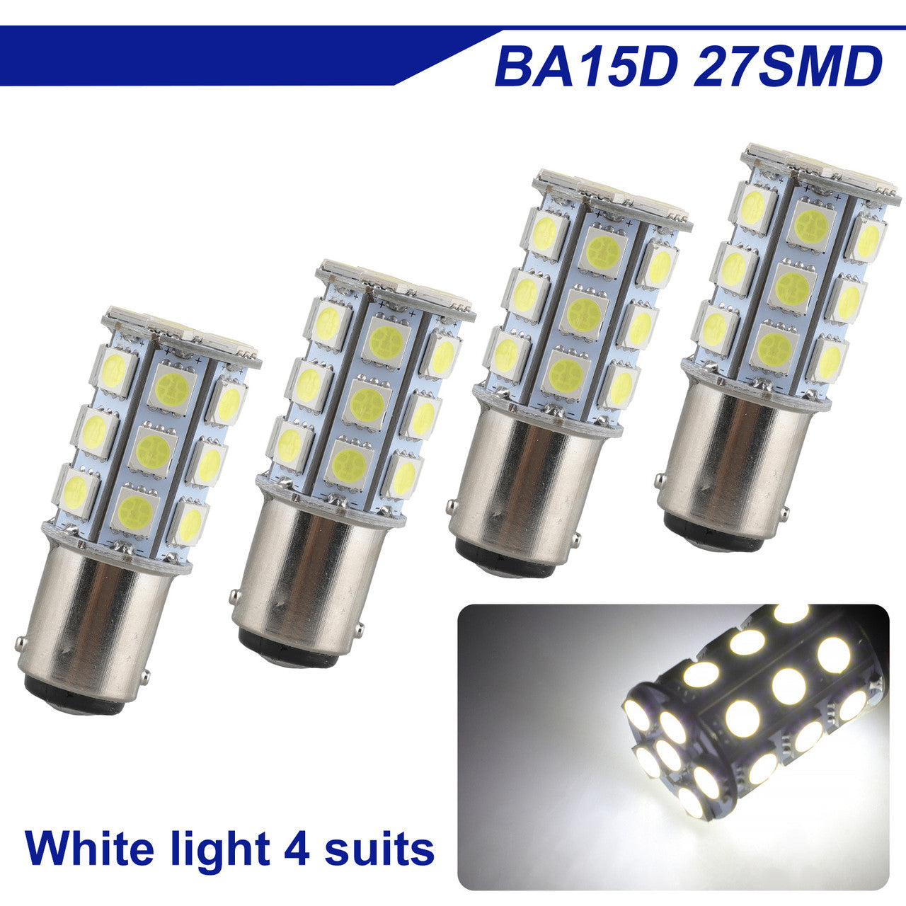 ✅LED Type: This LED bulb features 4 pieces of Brand New, super bright 6000K Pure White BA15D 5050 27-SMD (non-polarity) bulbs. Voltage: DC12V, Color Tempurature: 6000K White , Size: 20mm*48.5mm.