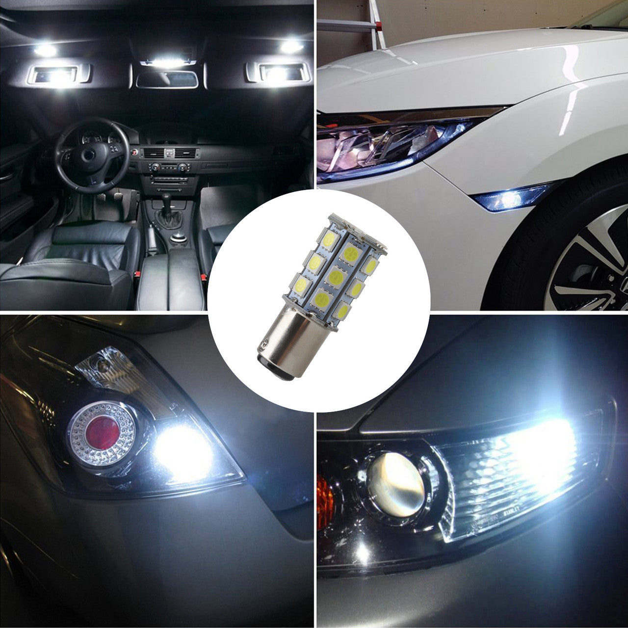 ✅Design: Each BA15D LED bulb contains 27 Beautiful High Quality 5050 tri-cell SMD LED, which are much brighter than the stock yellowish traditional lamps. 360 degree lighting angle ensures no blind spot, super bright blubs bring your car a refreshed viewing.